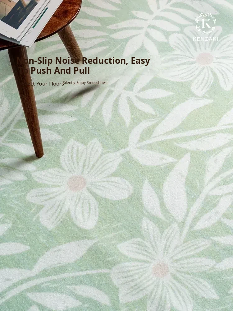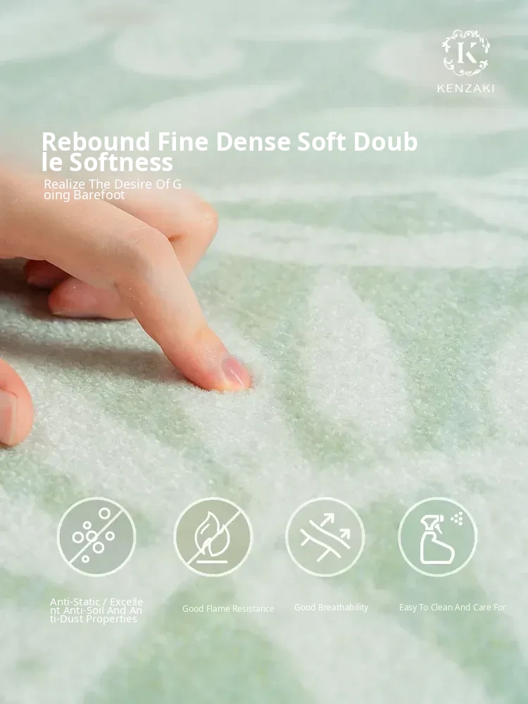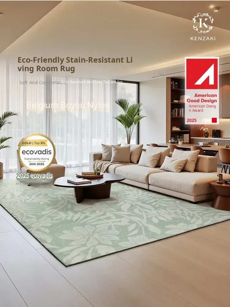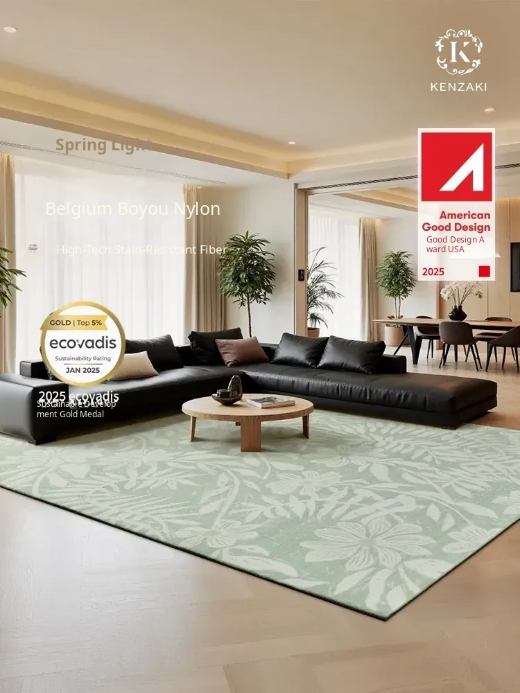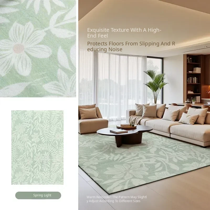 2025 New Luxury French Style Carpet for Living Room - Chic Ins-Style Bedside Mat in Green, No Wash Needed, Perfect for Modern Bedrooms
