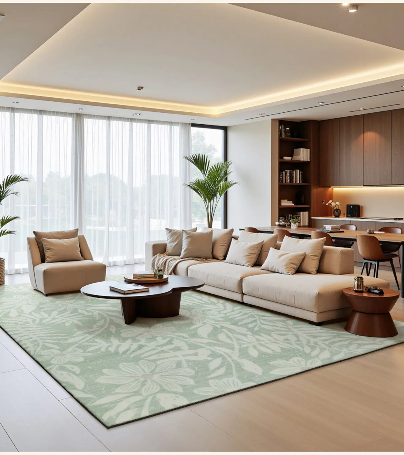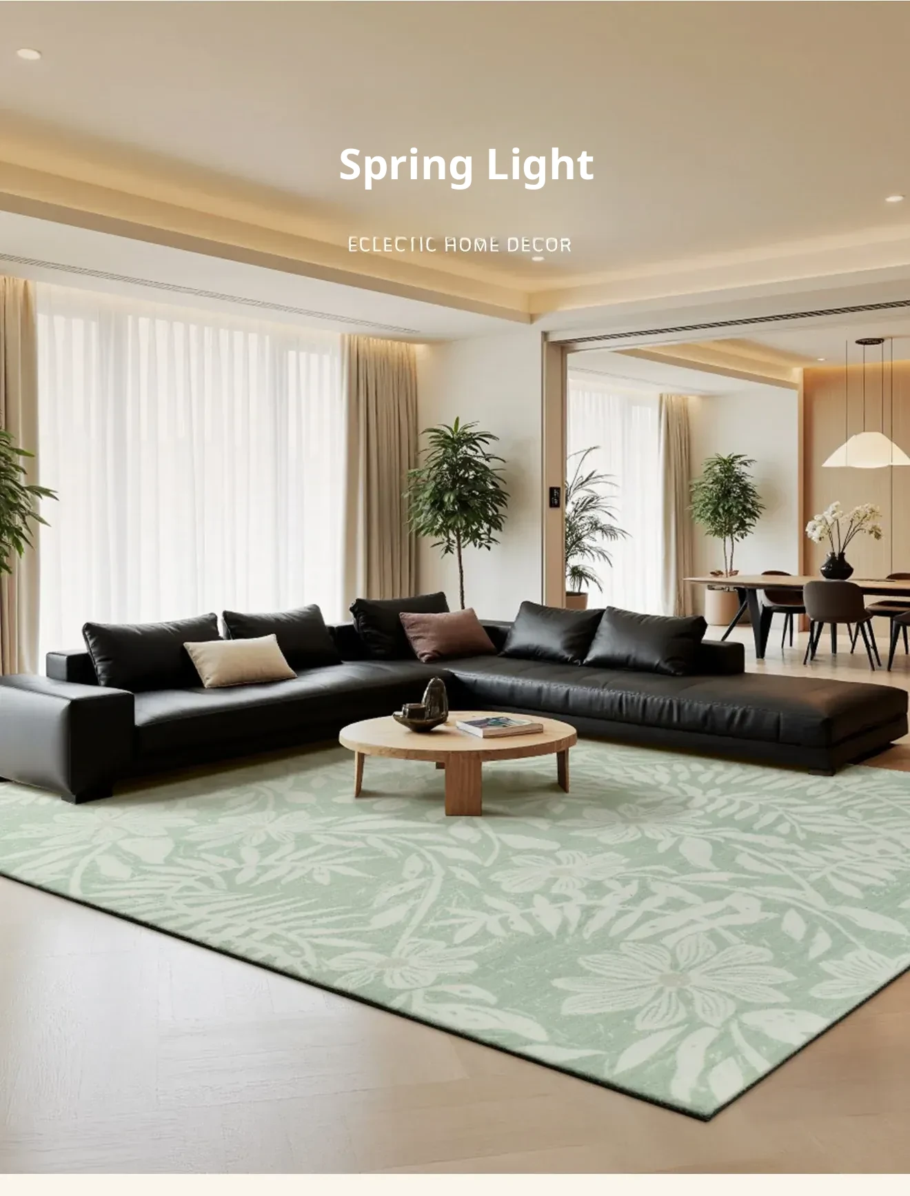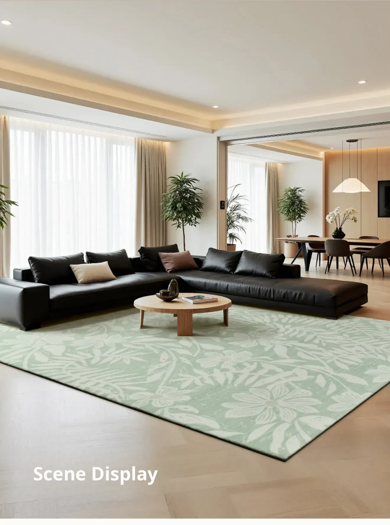 2025 New Luxury French Style Carpet for Living Room - Chic Ins-Style Bedside Mat in Green, No Wash Needed, Perfect for Modern Bedrooms
