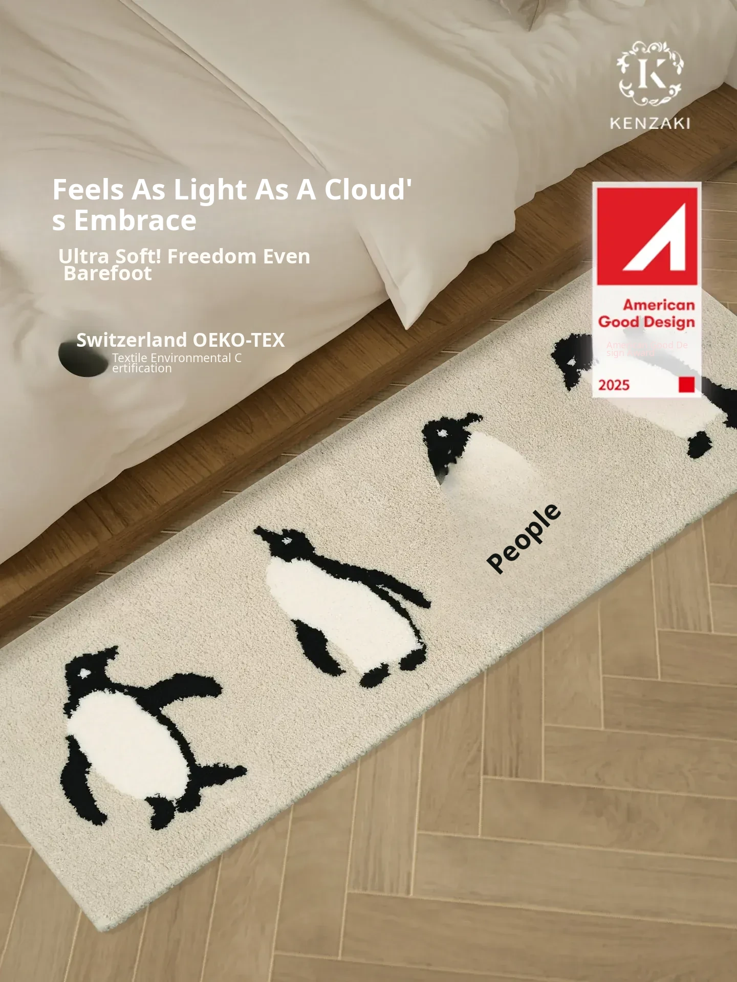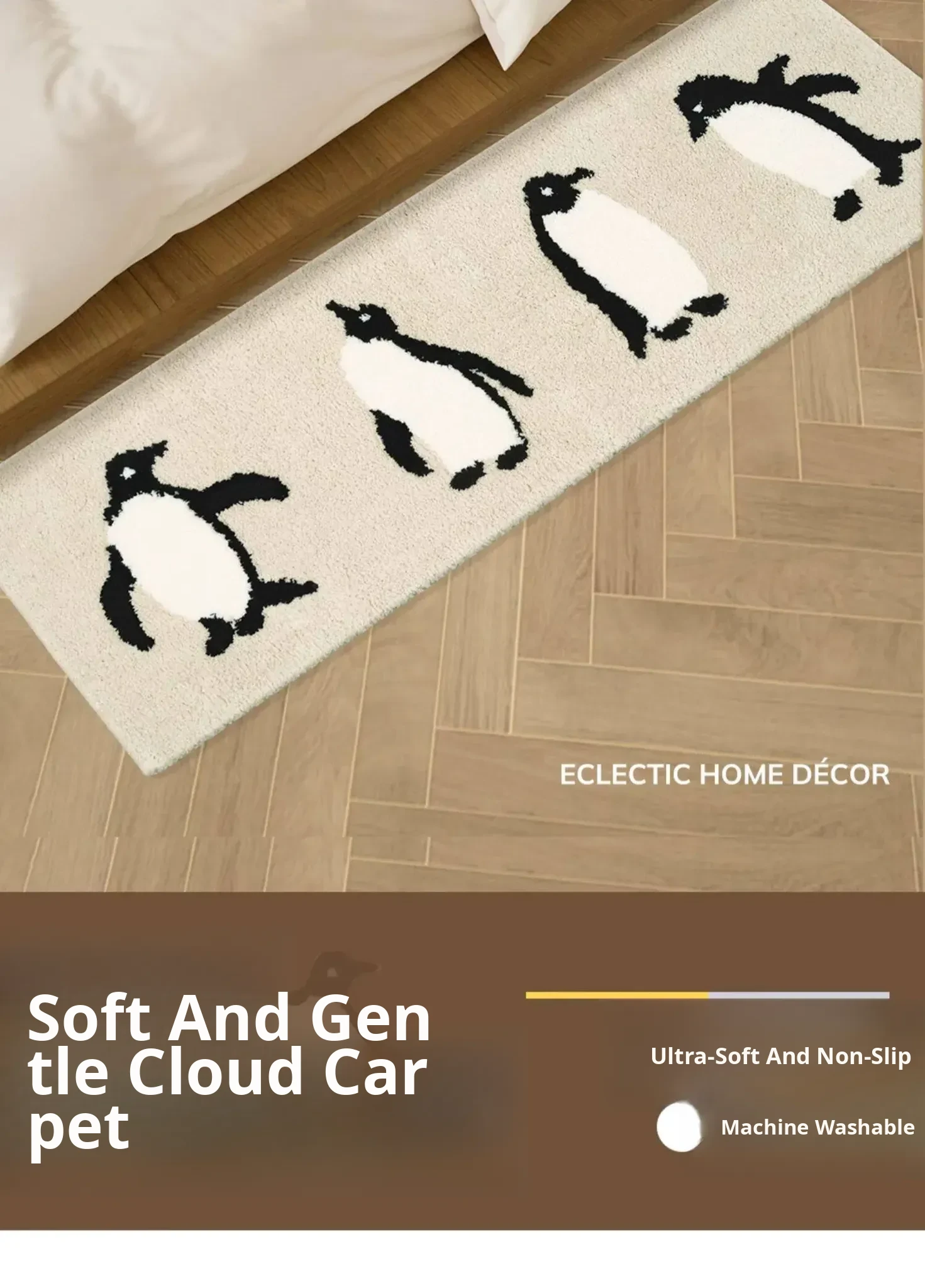 Adorable Penguin Area Rug for Kids' Rooms - Beige Non-Slip Carpet, Perfect for Boys and Girls' Bedrooms, Machine Washable, Ideal for Adding a Cozy Touch!