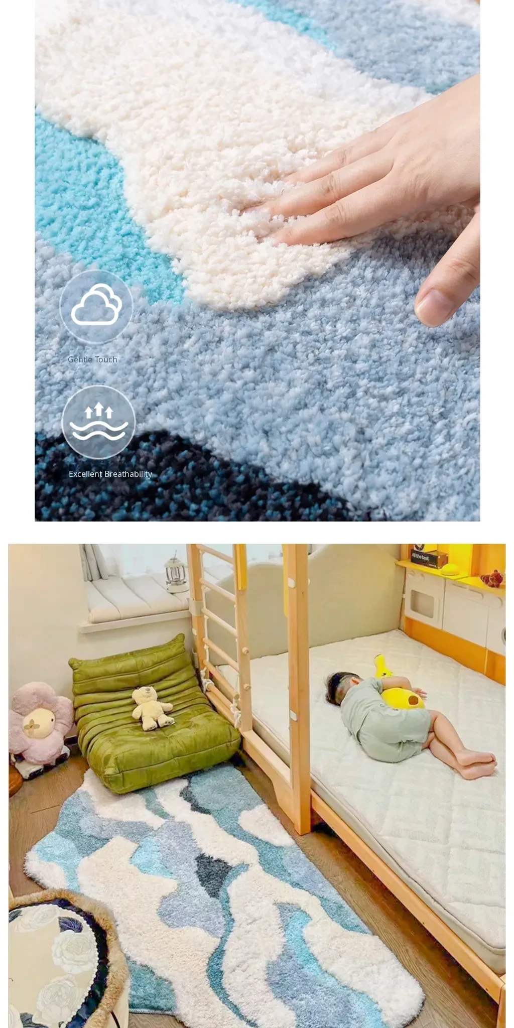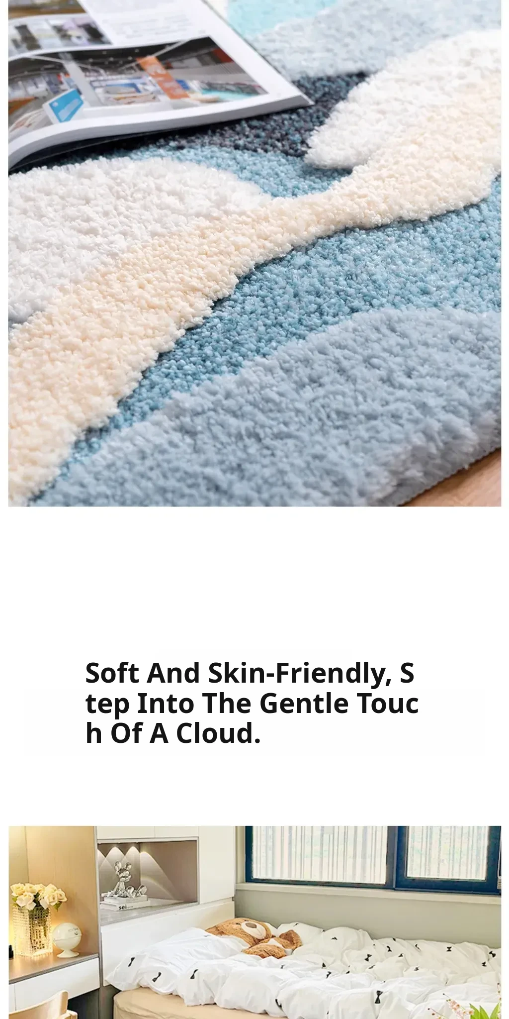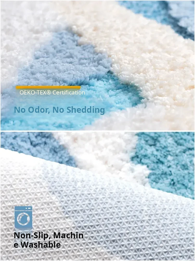 Blue Thickened Long Strip Area Rug for Kids' Rooms - Soft, Creamy Ins Style Carpet for Girls' Bedrooms, Machine Washable, Perfect for Bedside Comfort