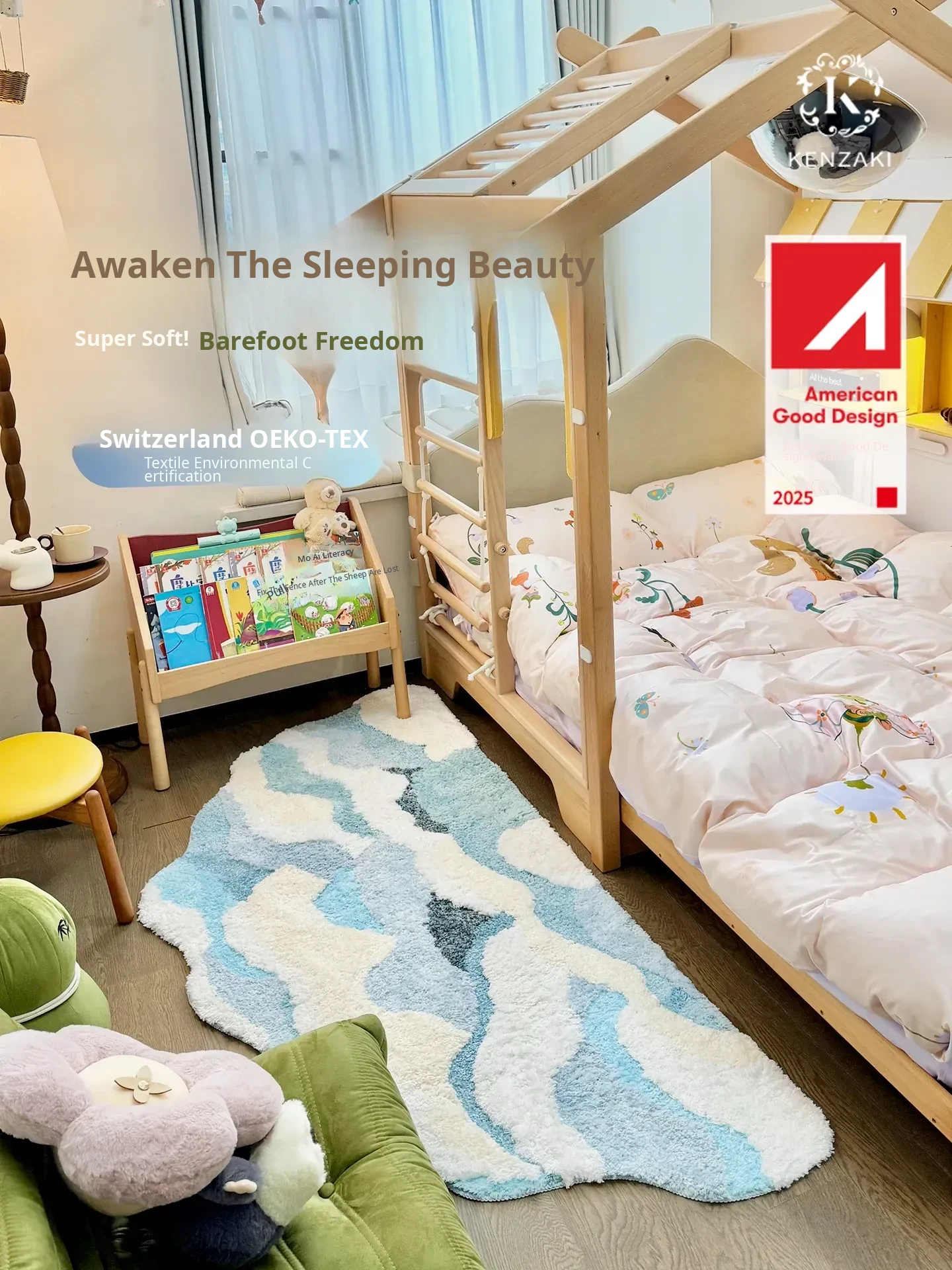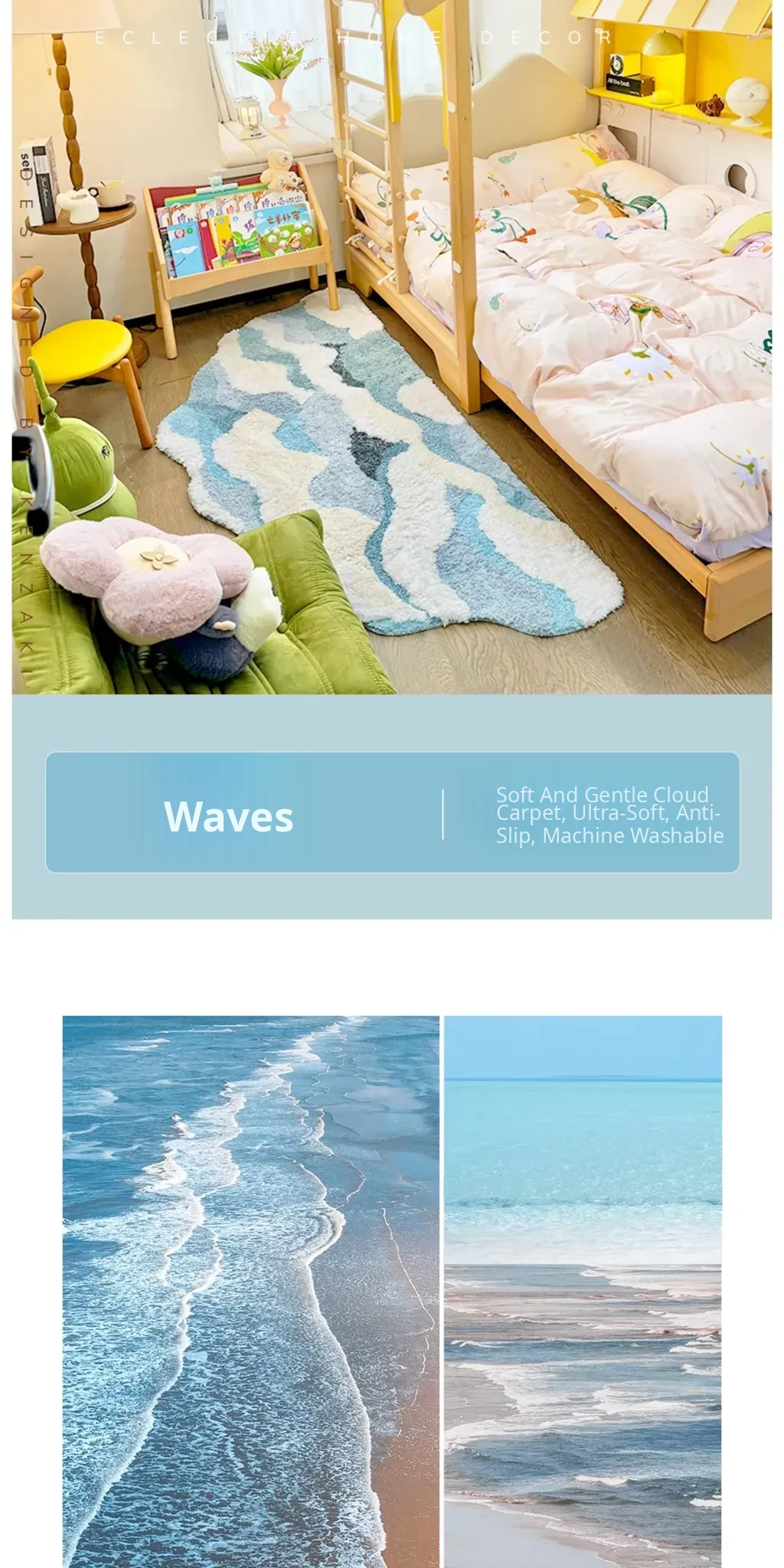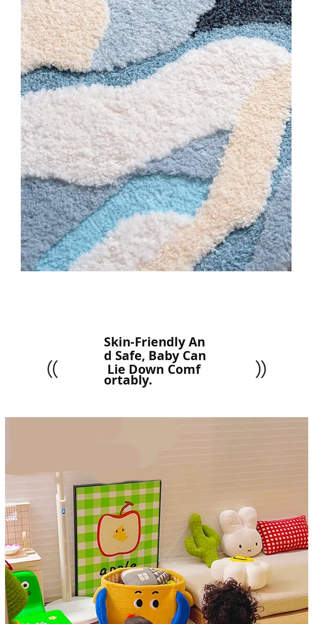 Blue Thickened Long Strip Area Rug for Kids' Rooms - Soft, Creamy Ins Style Carpet for Girls' Bedrooms, Machine Washable, Perfect for Bedside Comfort