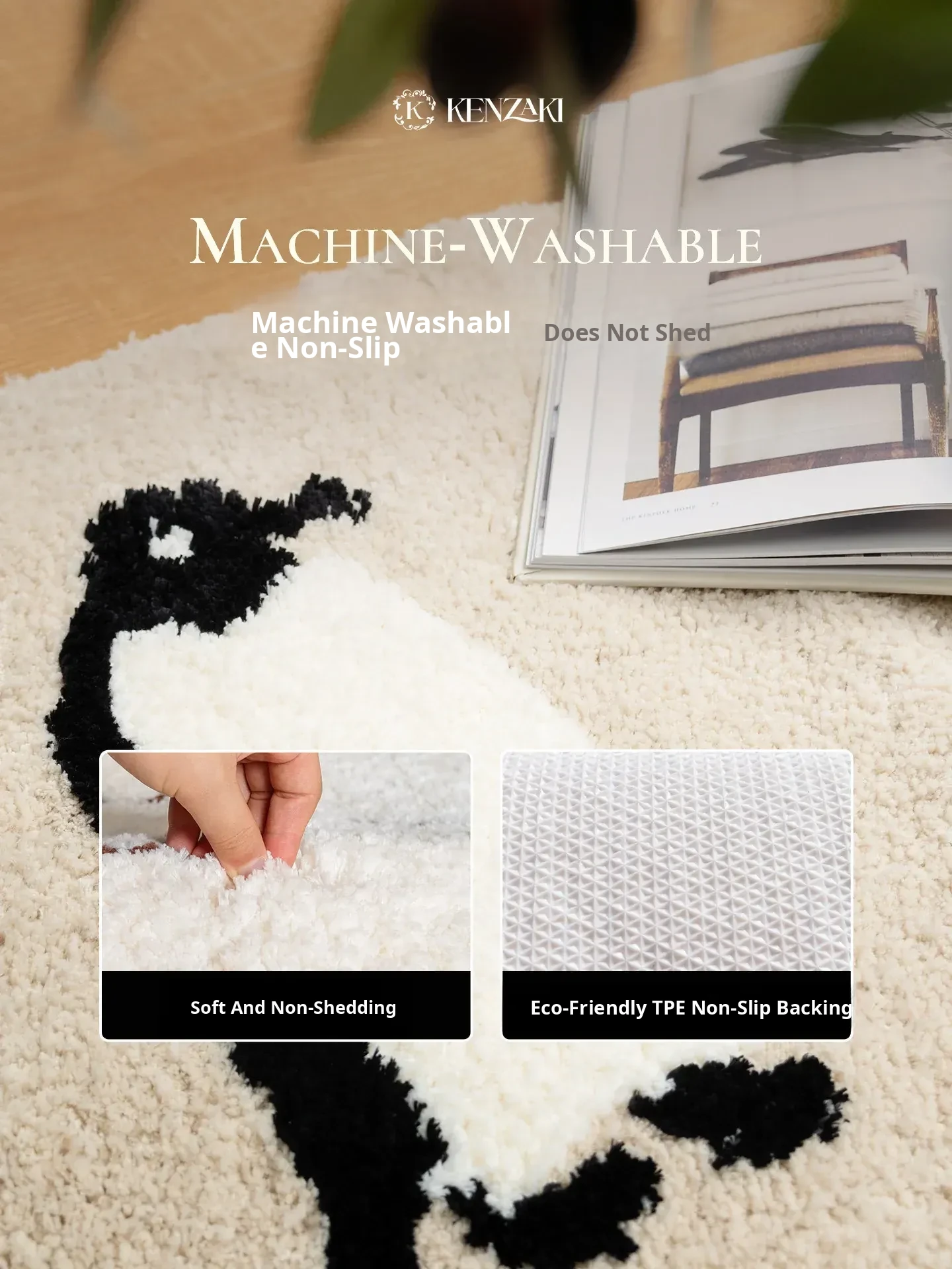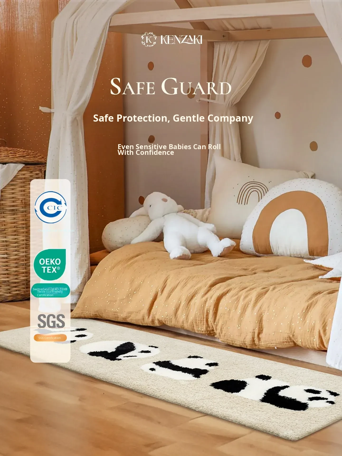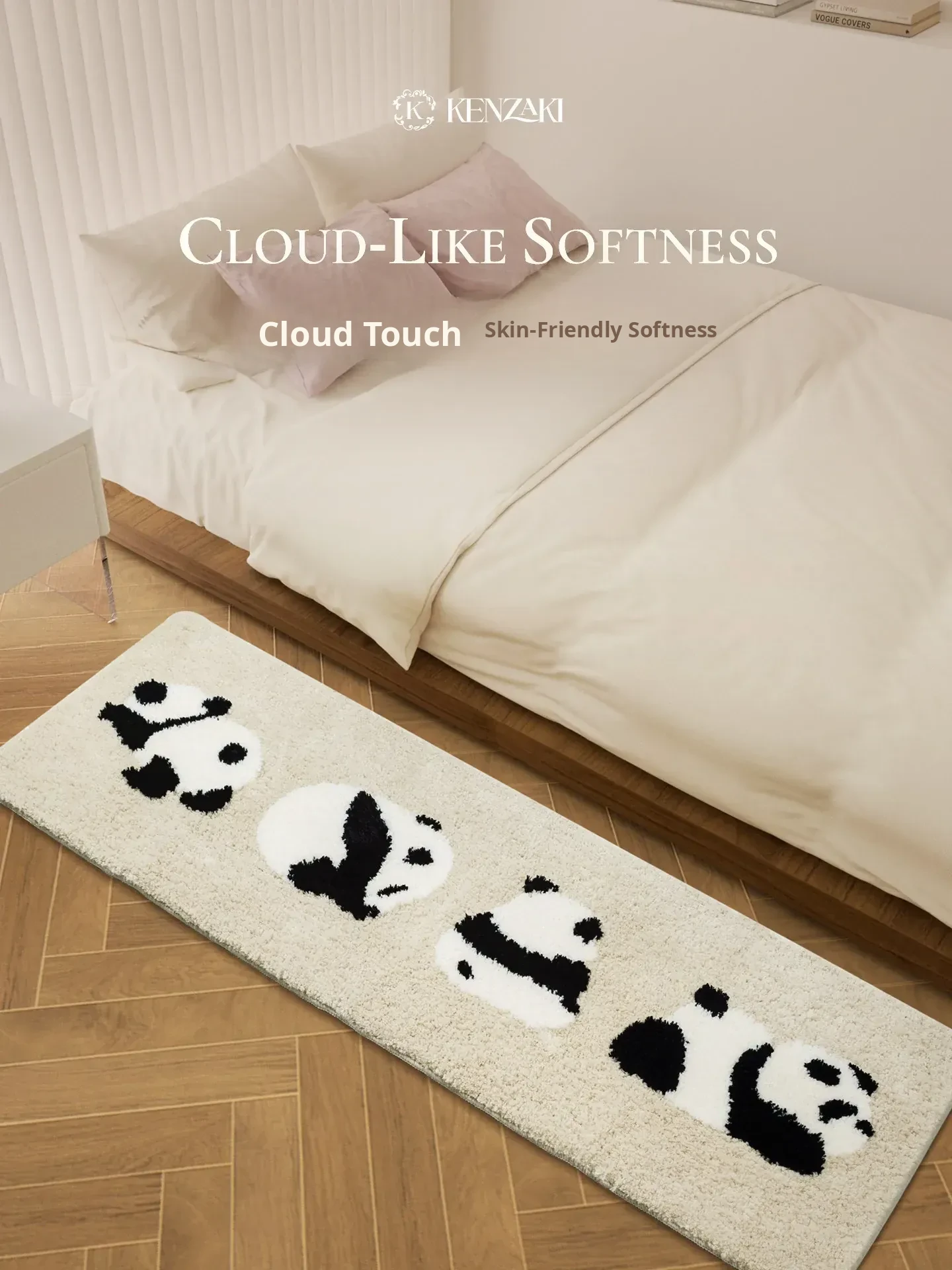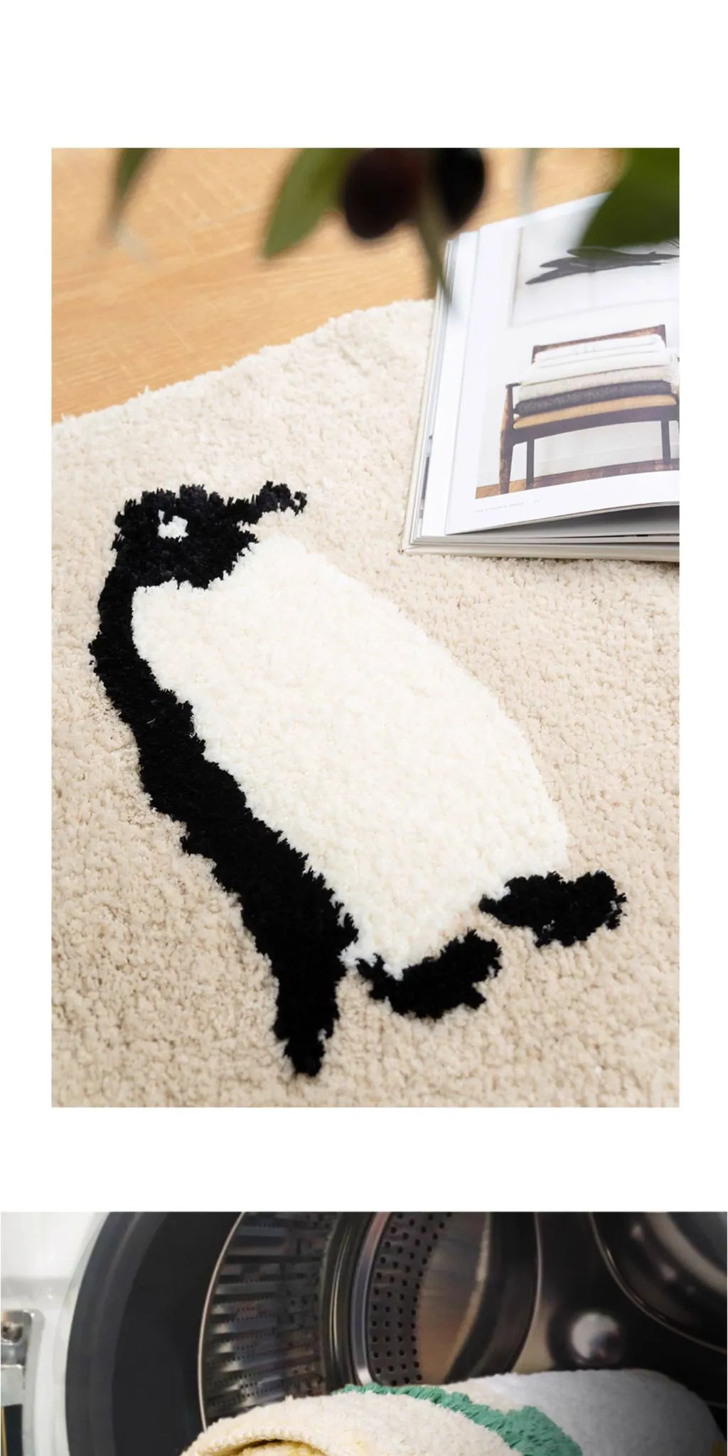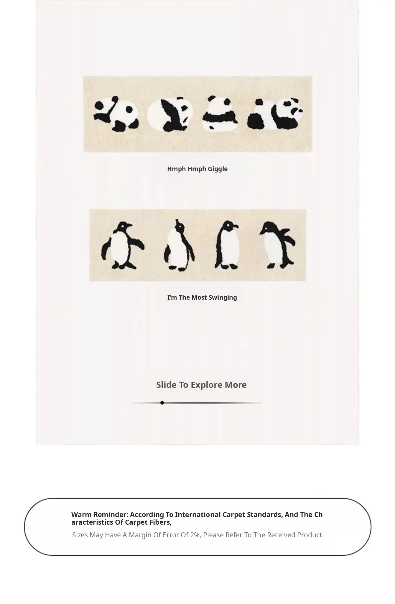 Cozy Panda & Penguin Area Rug - Non-Slip, Machine Washable, Perfect for Bedroom & Living Room - Long Rectangle Mat for Kids’ Playroom and Bedside Decor