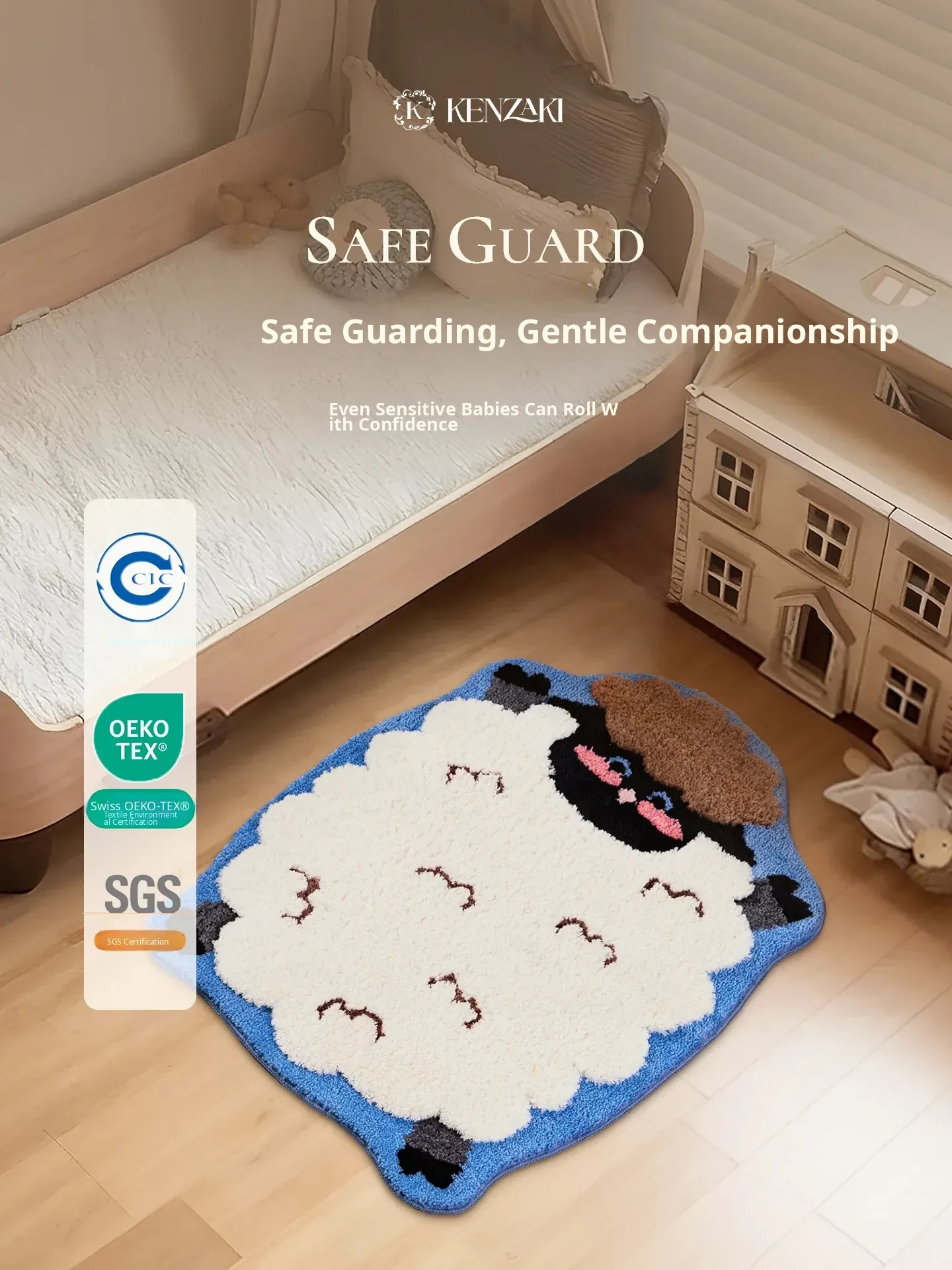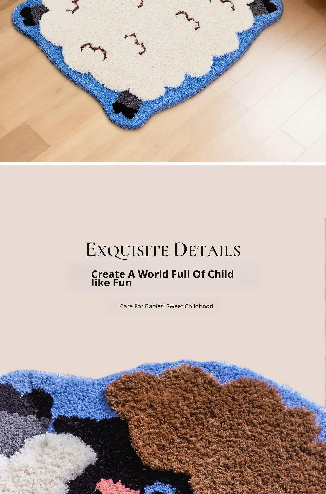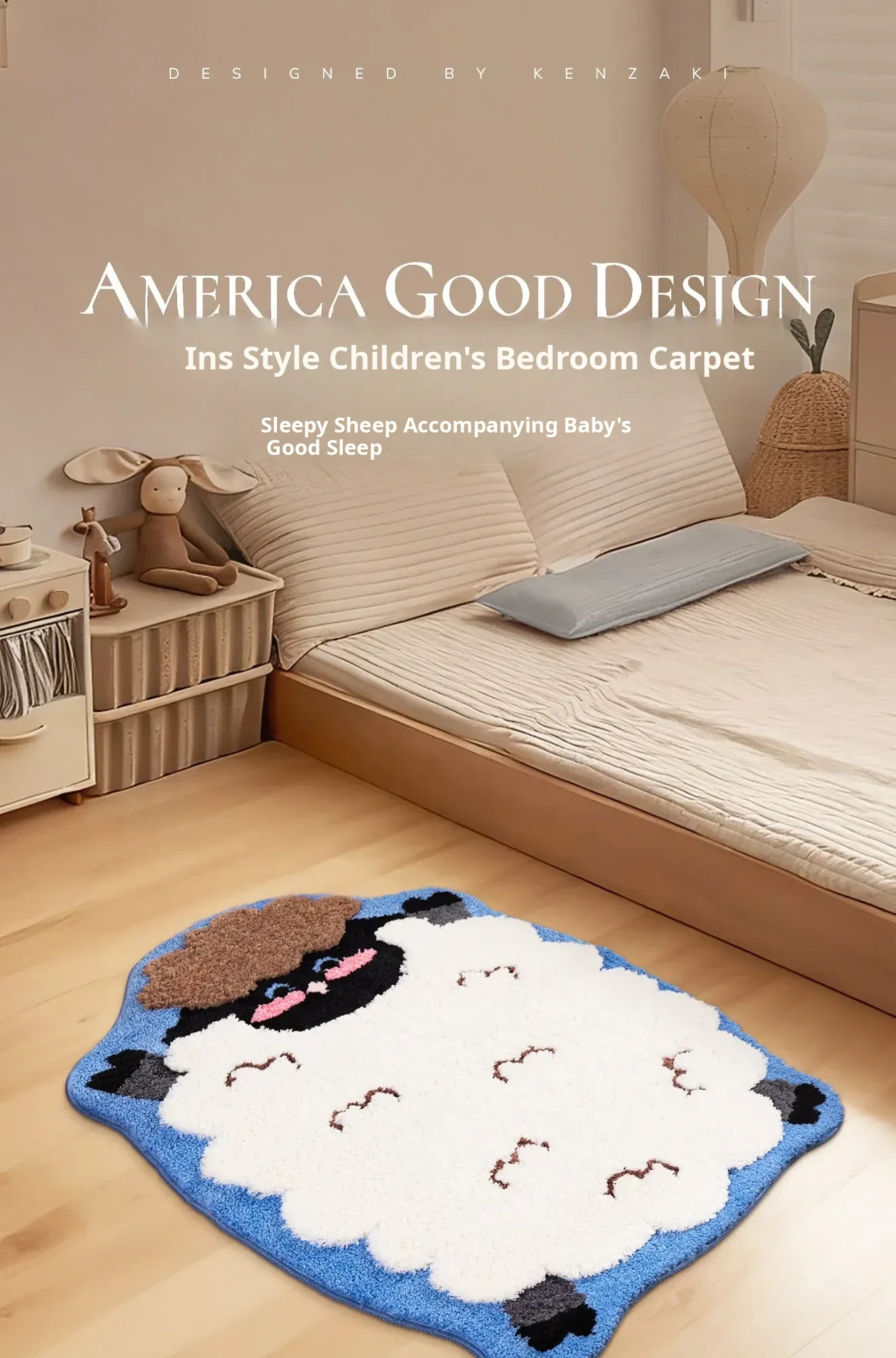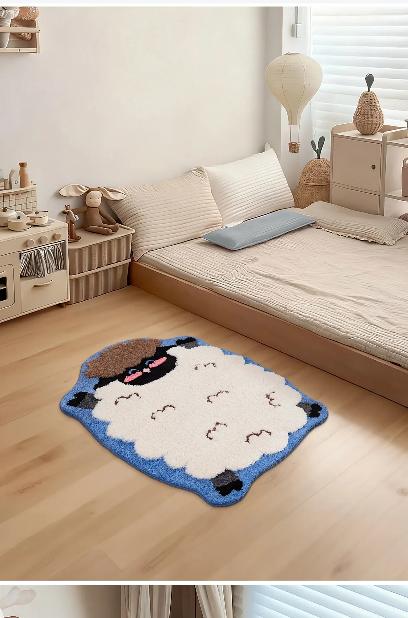 Cute and Cozy Ins-Style Bedroom Carpet - Irregular Washable Bedside Mat for Boys and Girls, Adorable Little Lamb Design, Perfect for Kids' Rooms!