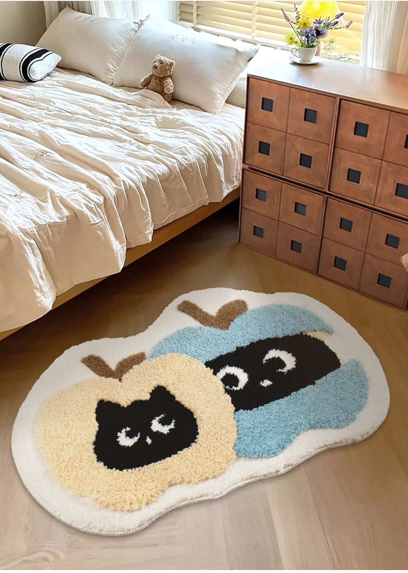 Cute Cat-Shaped Area Rug for Kids' Bedroom - Stylish Ins Design, Soft and Thick, Perfect for Boys and Girls, Irregular Shape, Machine Washable, Ideal for Bedside Decor