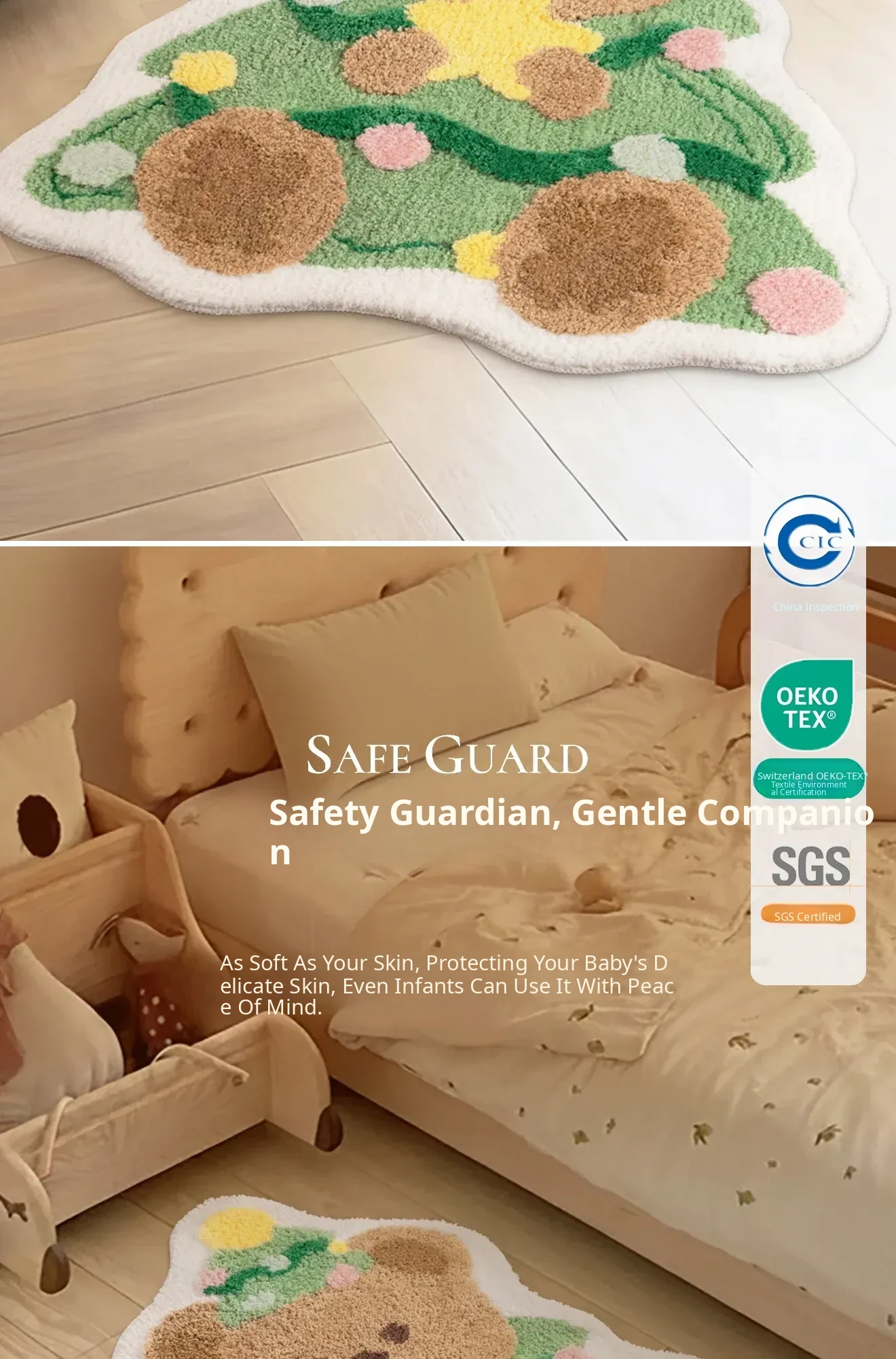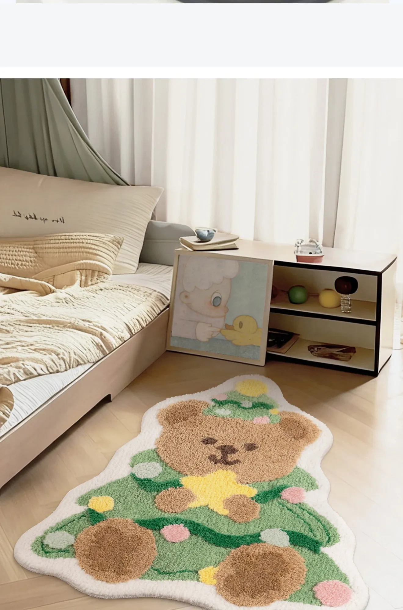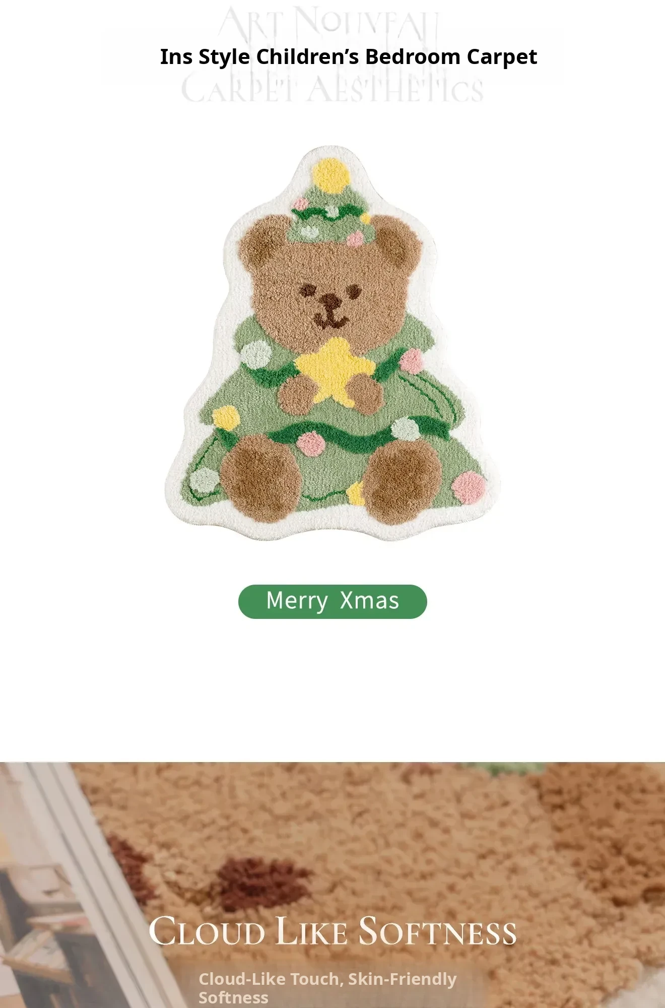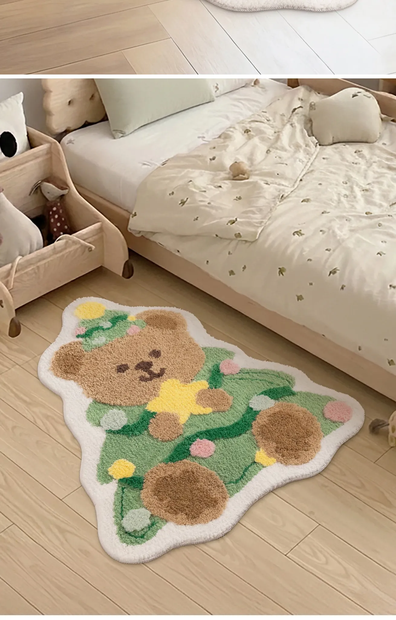 Cute Christmas Bear and Tree Shaped Area Rug for Kids – Perfect Bedroom and Bedside Mat, Washable and Adorable for Boys and Girls, Ideal Holiday Décor!