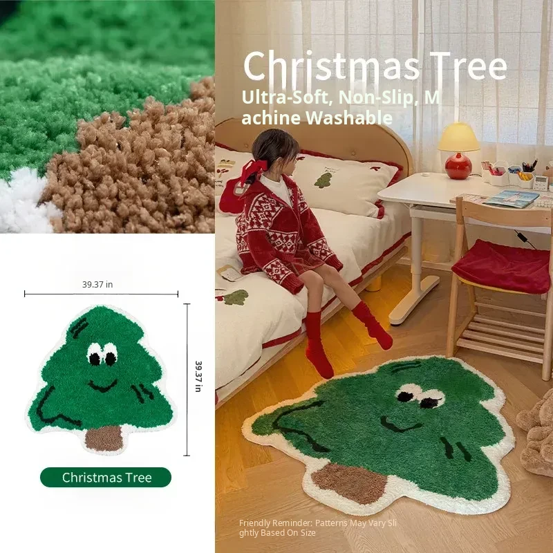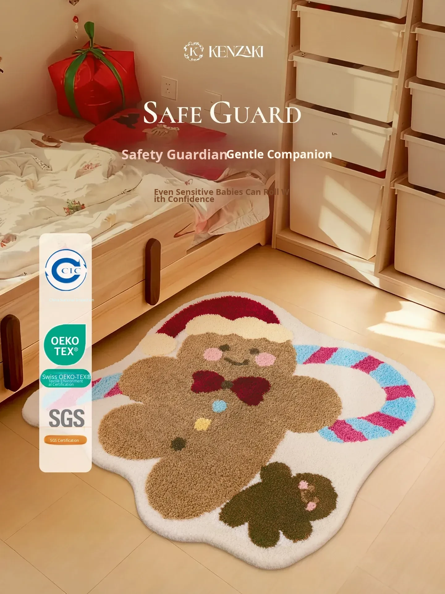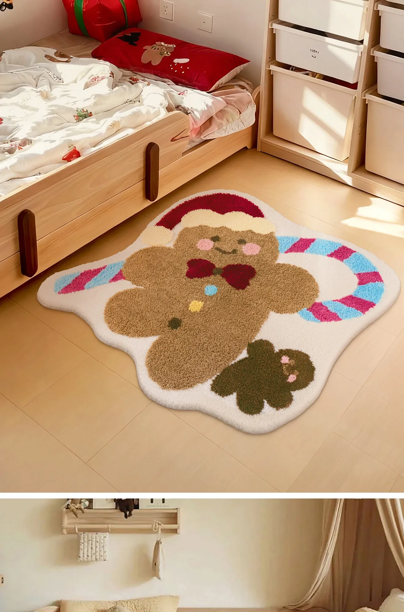Cute Gingerbread Man Shaped Christmas Rug for Kids - Cozy Bedroom Mat for Boys and Girls, Perfect for Bedside or Play Area, Machine Washable and Easy to Clean!