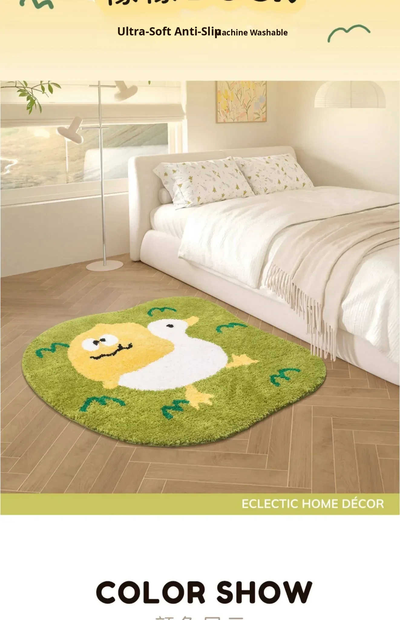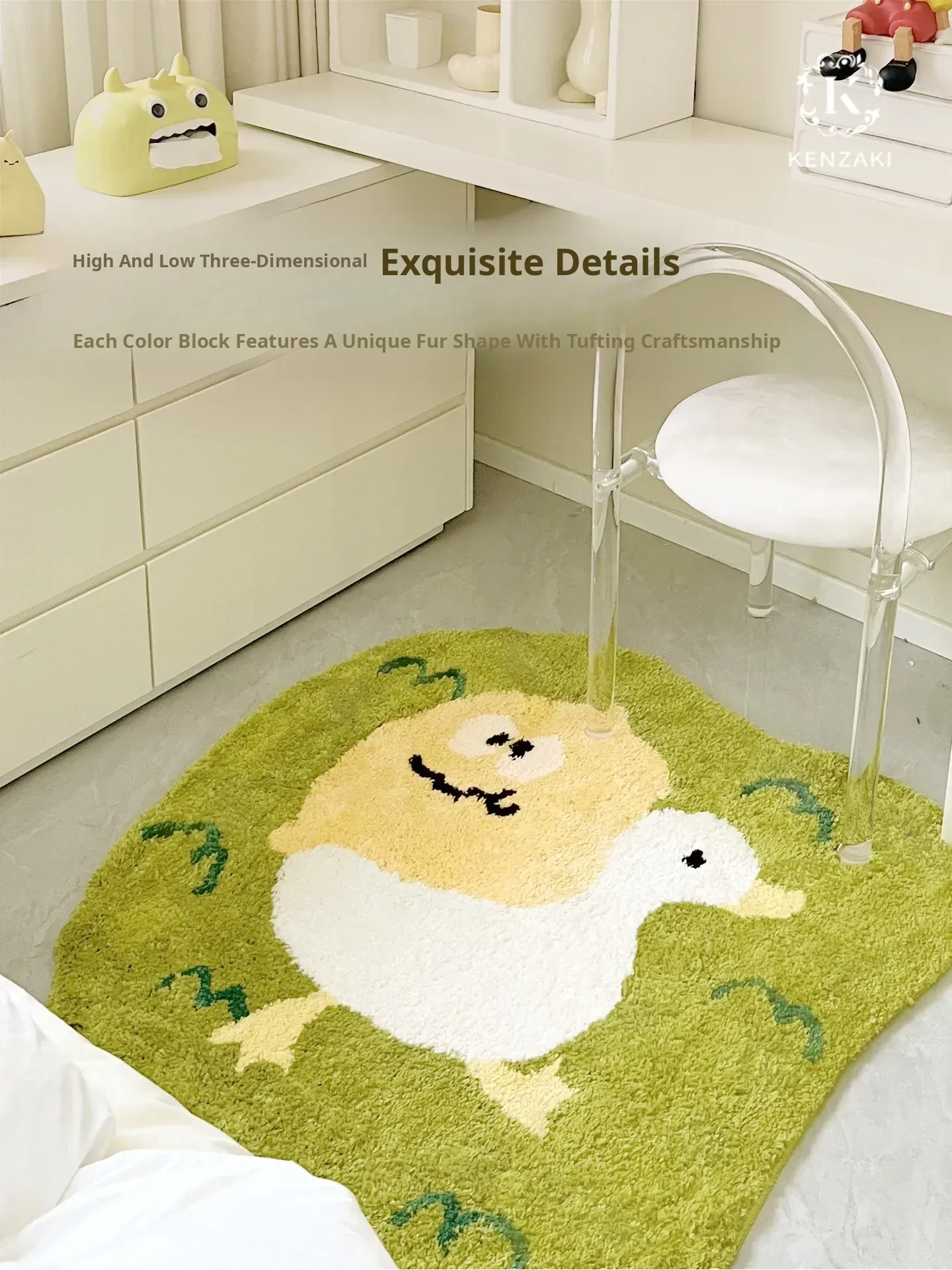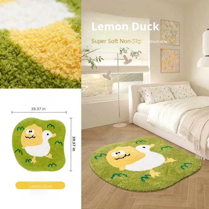 Cute Green Duck-Shaped Area Rug for Kids' Bedrooms - Adorable Non-Slip Carpet for Boys and Girls, Perfect for Bedside, Machine Washable, Adds a Splash of Joy to Your Child's Space!