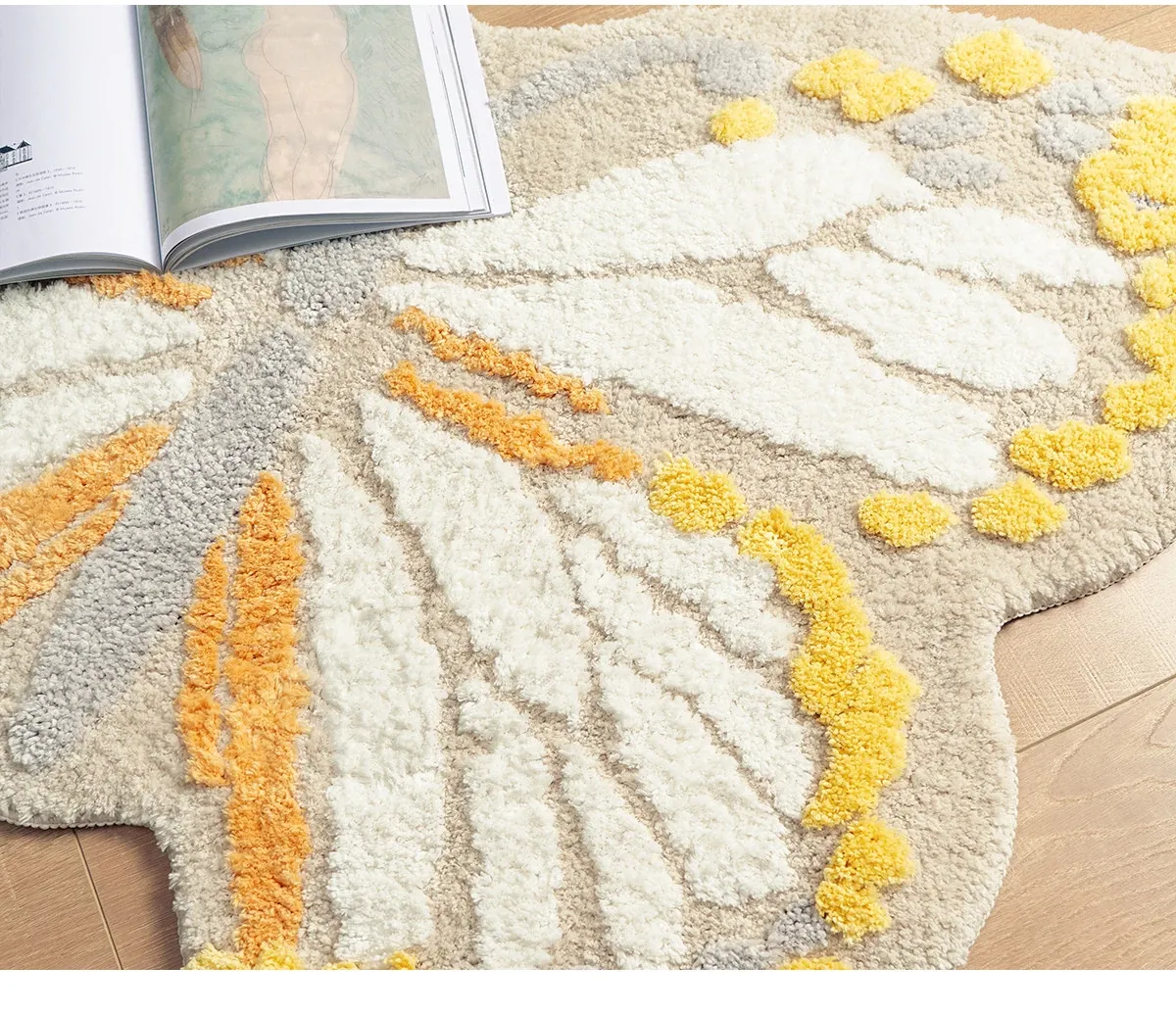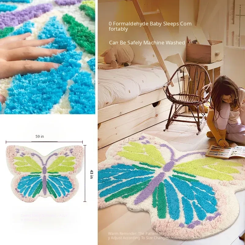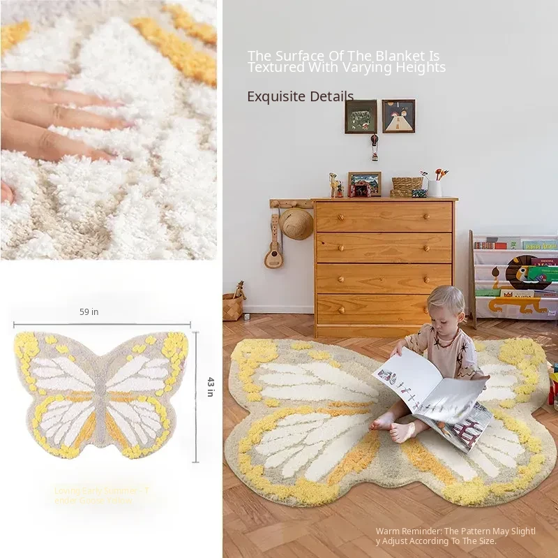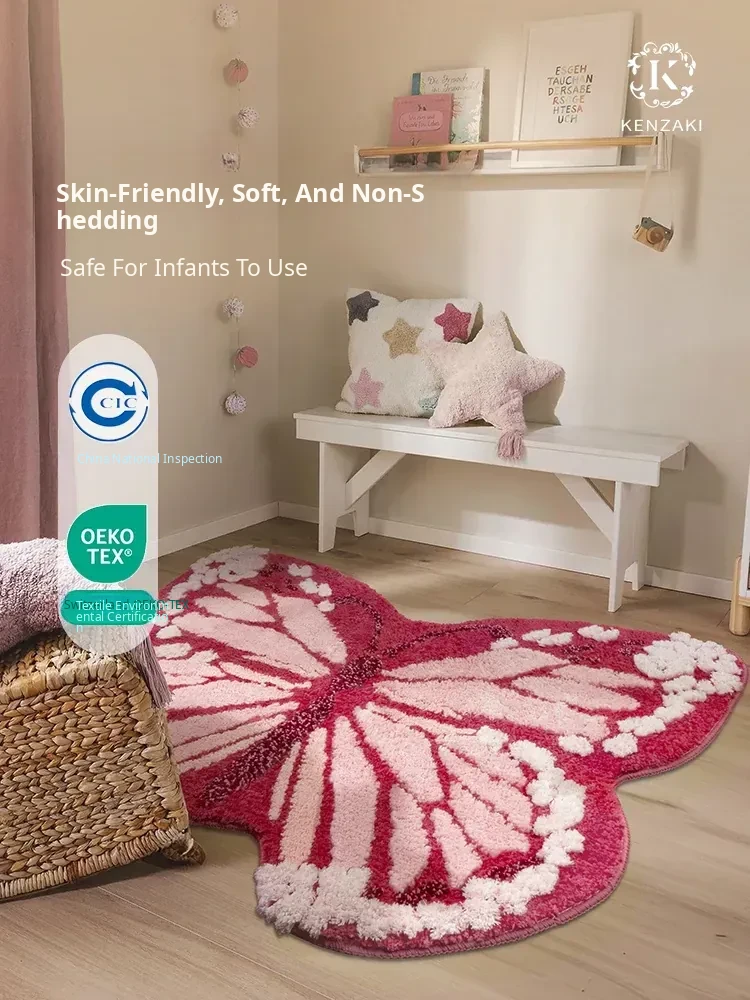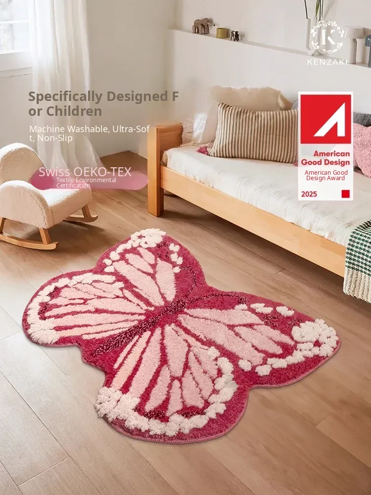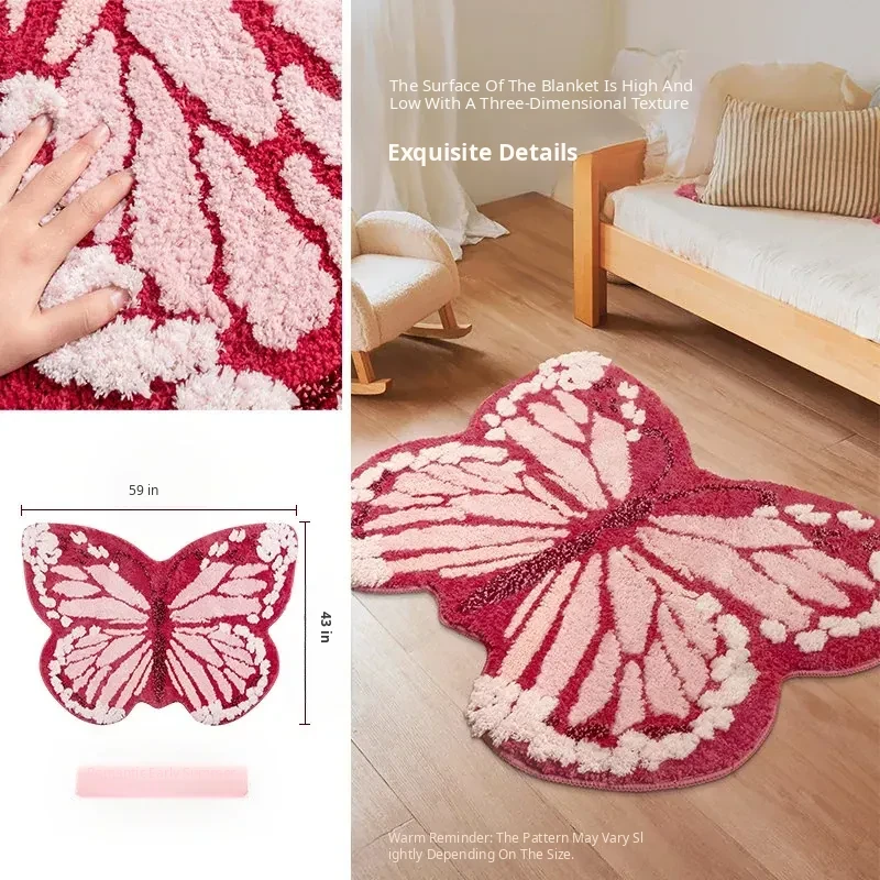 Cute Luxury Red Butterfly Area Rug for Girls' Bedroom - Non-Slip, Thick, Soft Carpet for Kids' Room, Perfect for Bedside and Playtime