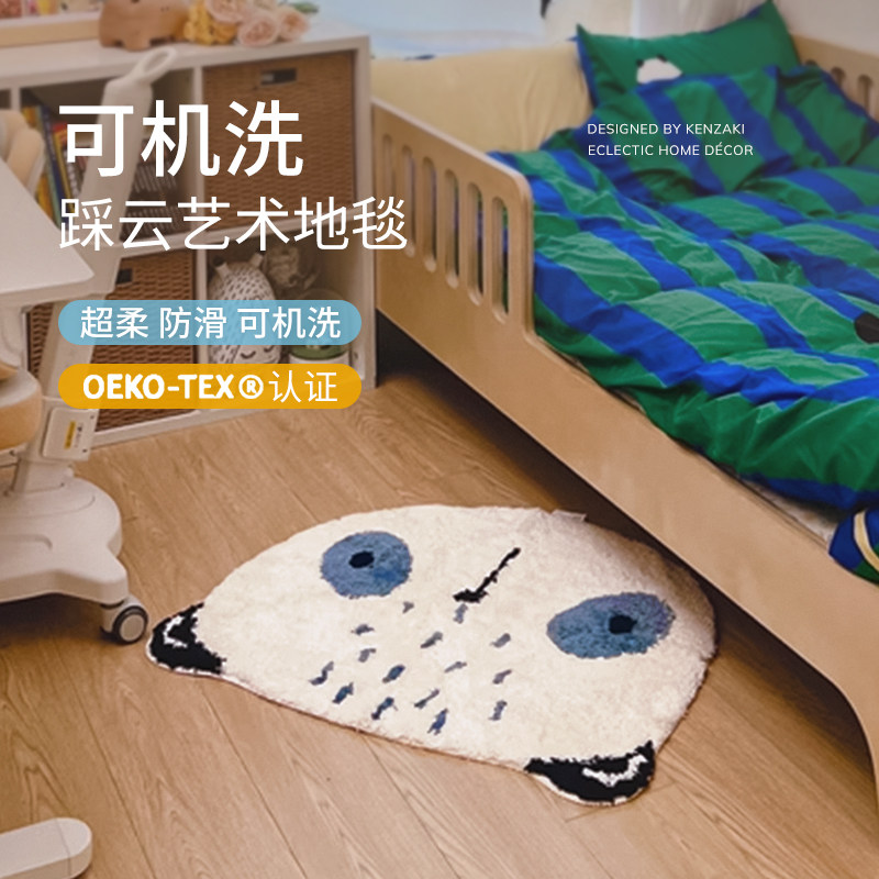 Cute Panda Shaped Area Rug for Kids' Bedroom - Irregular Non-Slip Carpet for Boys and Girls, Perfect for Playtime, Easy to Clean and Machine Washable!
