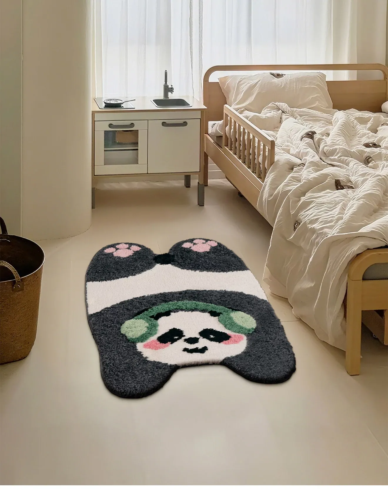 Cute Panda-Shaped Area Rug for Kids' Rooms - Thick, Washable Carpet for Bedroom or Bedside, Perfect for Boys and Girls, Adds a Cozy Touch to Your Space!