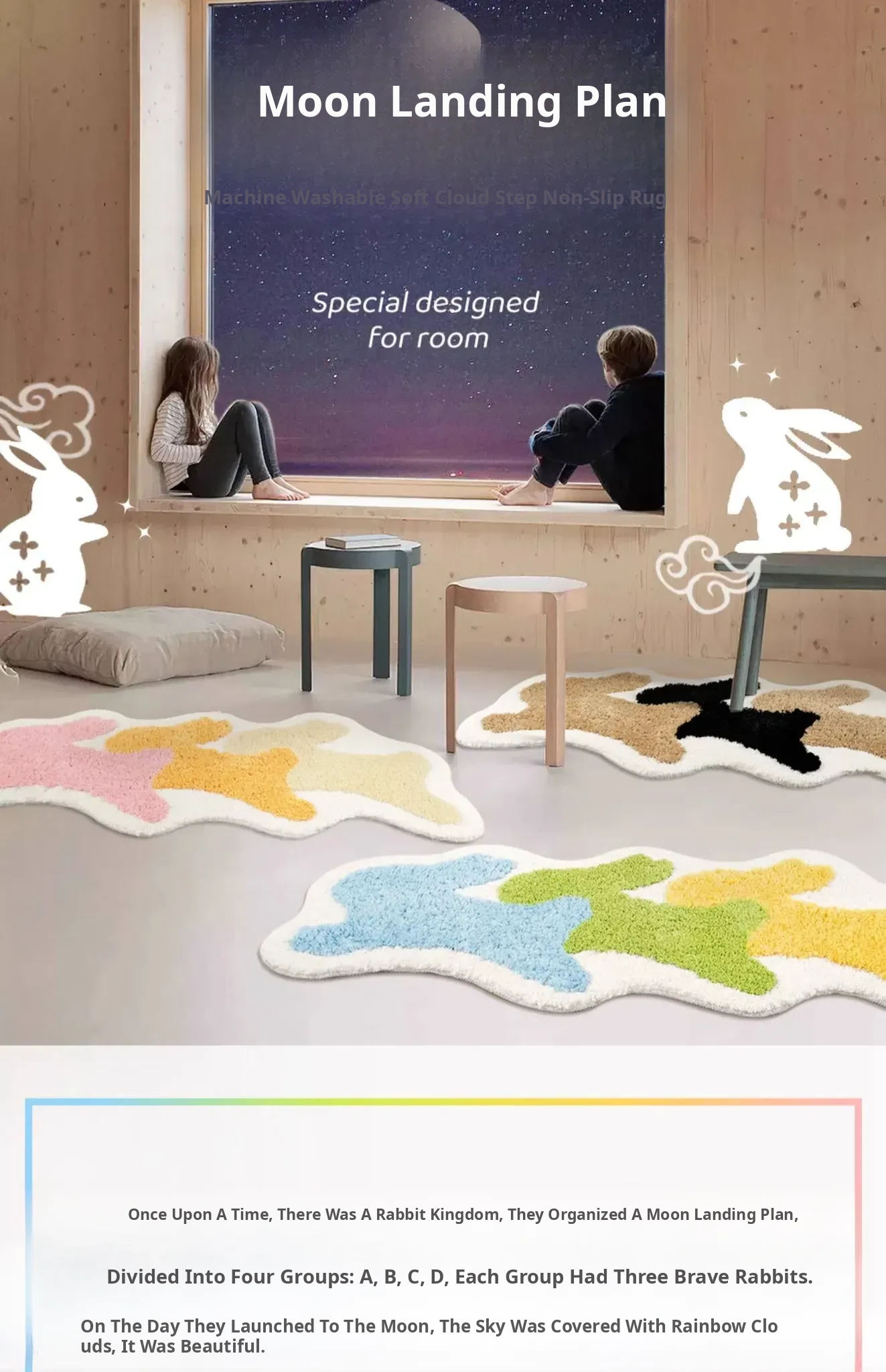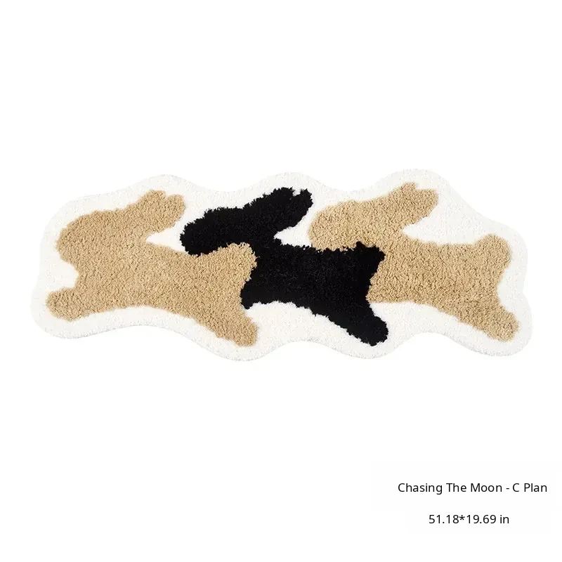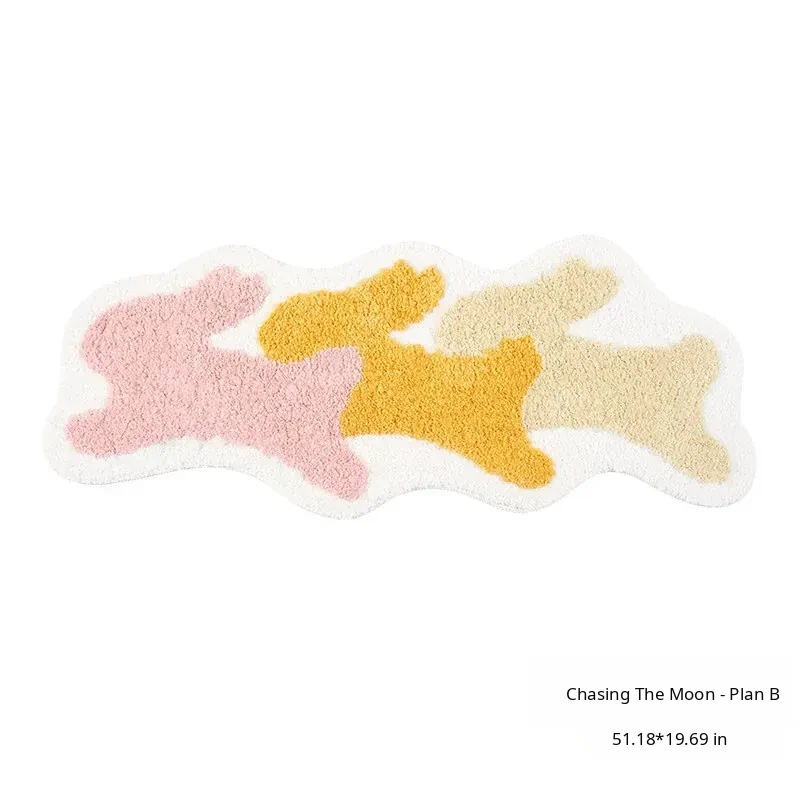 Cute Rabbit Shaped Area Rug for Kids' Room - Irregular Long Stripe Carpet for Bedroom, Perfect for Boys and Girls, Machine Washable, Ideal for Cozy and Stylish Decor