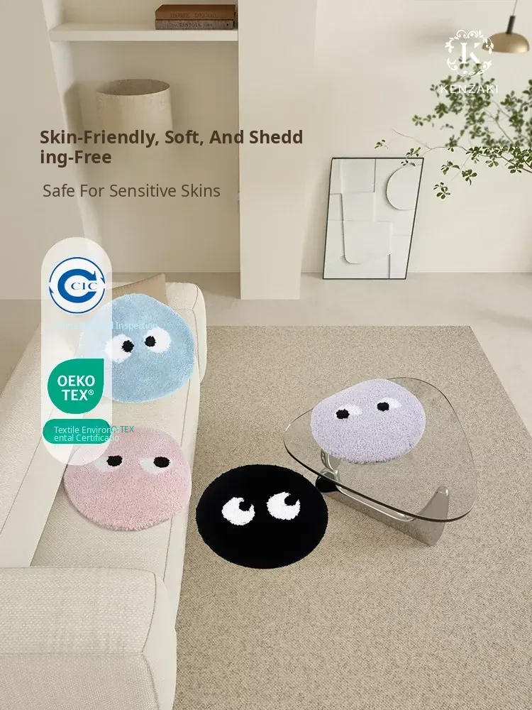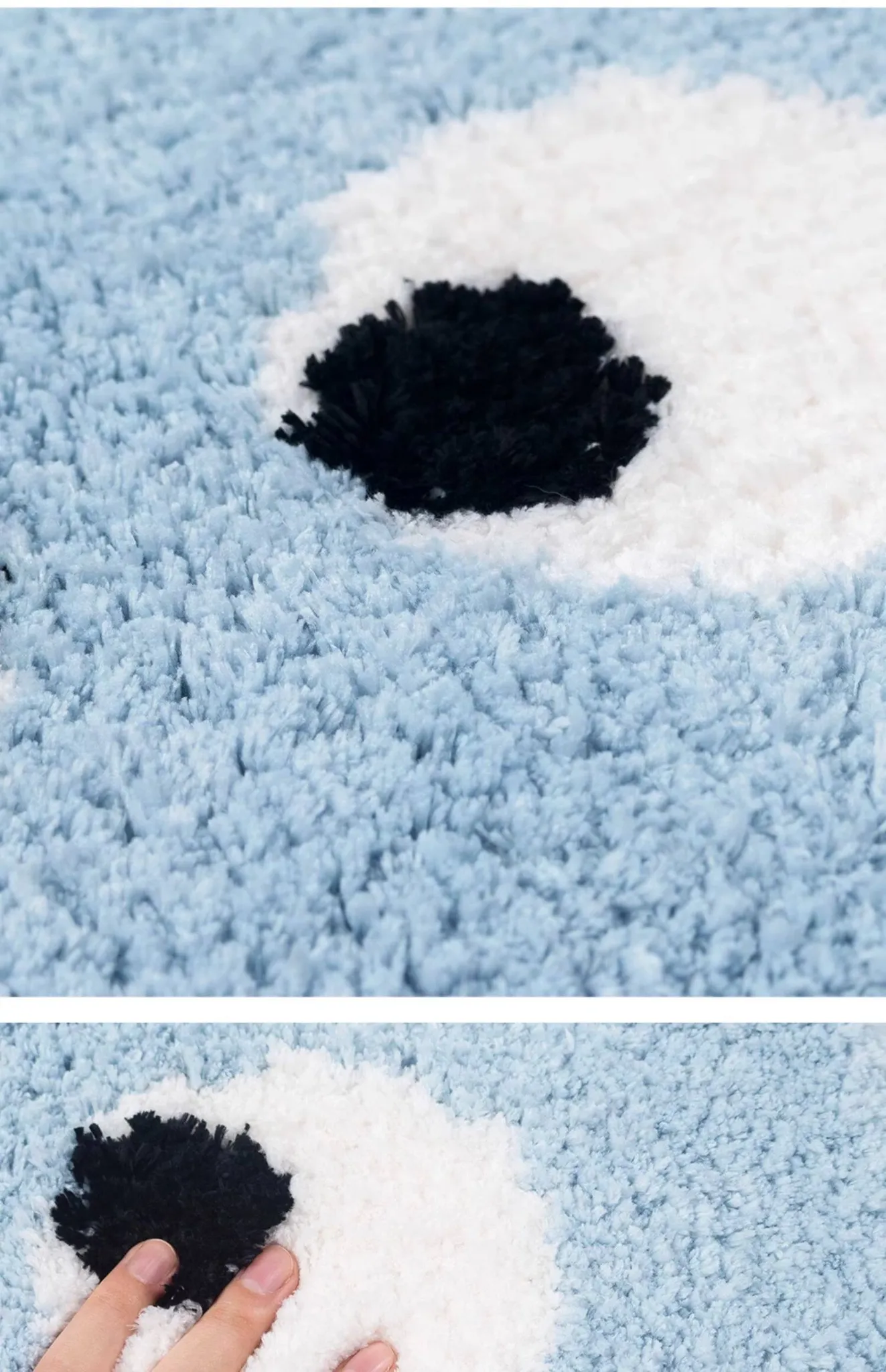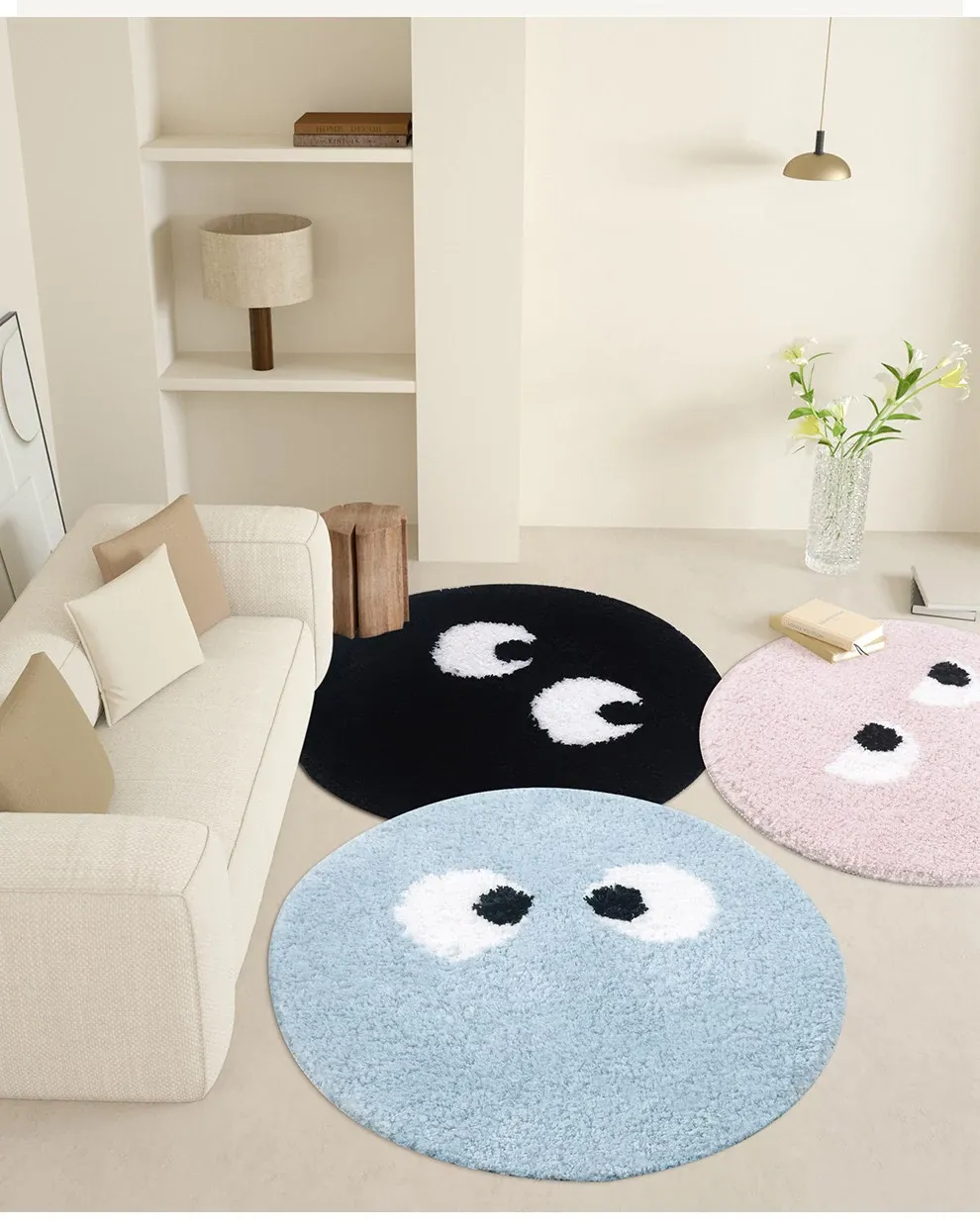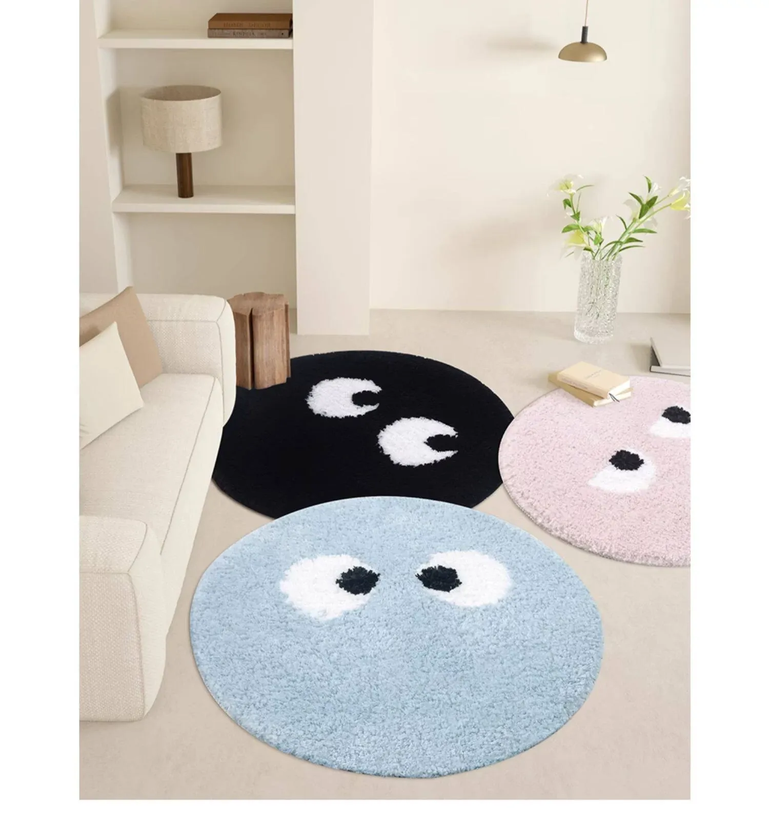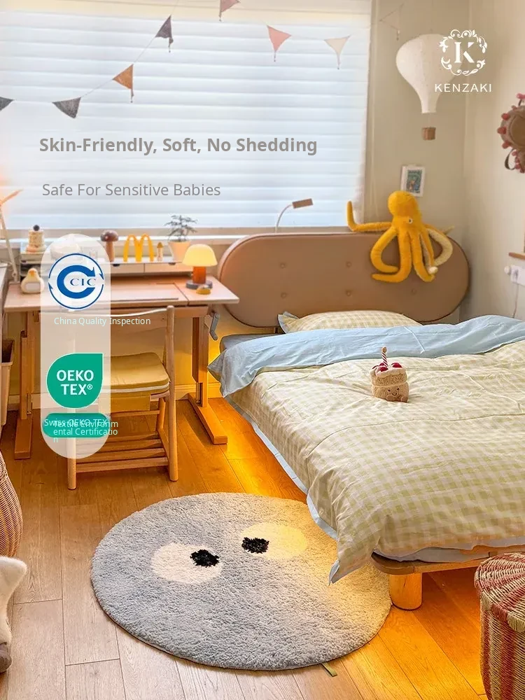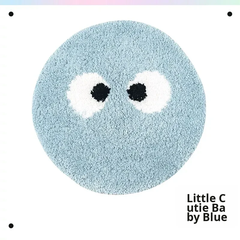 Cute Round Kids' Carpet - Non-Slip Blue Area Rug for Bedroom & Living Room, Perfect for Chair Mat, Machine Washable, INS Style