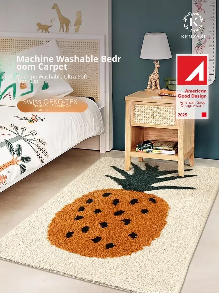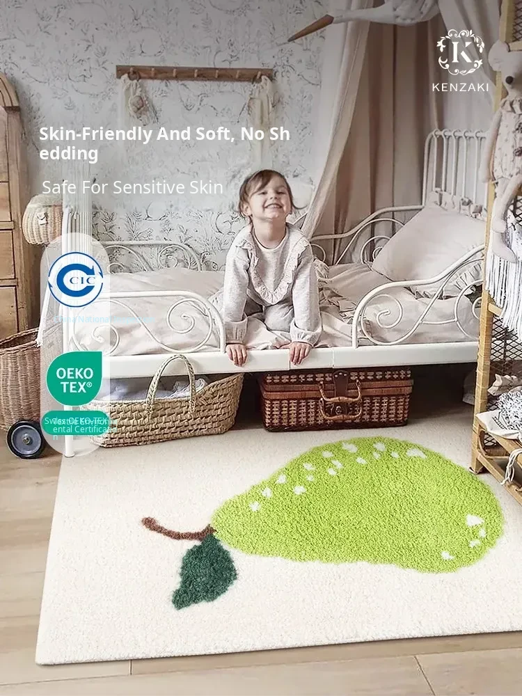 Cute Strawberry Shaped Non-Slip Area Rug for Kids' Bedroom, Living Room, and Bay Window - Washable Floor Mat Perfect for Girls' Rooms