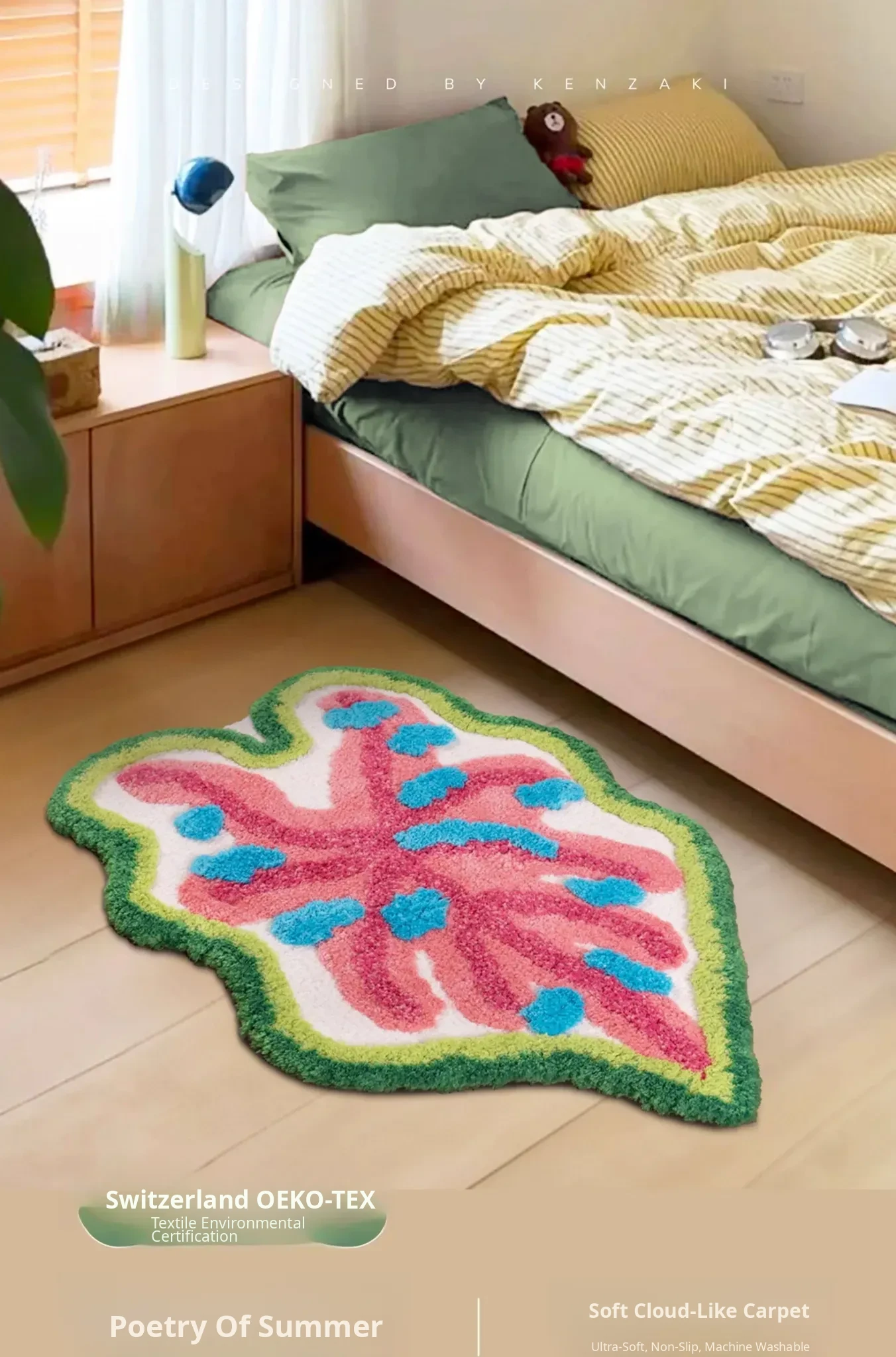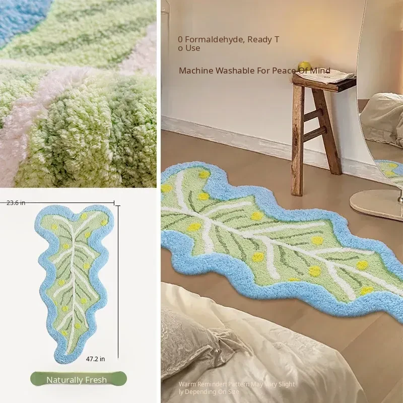 Dopamine Leaf Shaped Kids' Bedroom Carpet - Ins Style Bedside Mat for Boys and Girls, Machine Washable Area Rug, Perfect for Playrooms and Nursery Decor