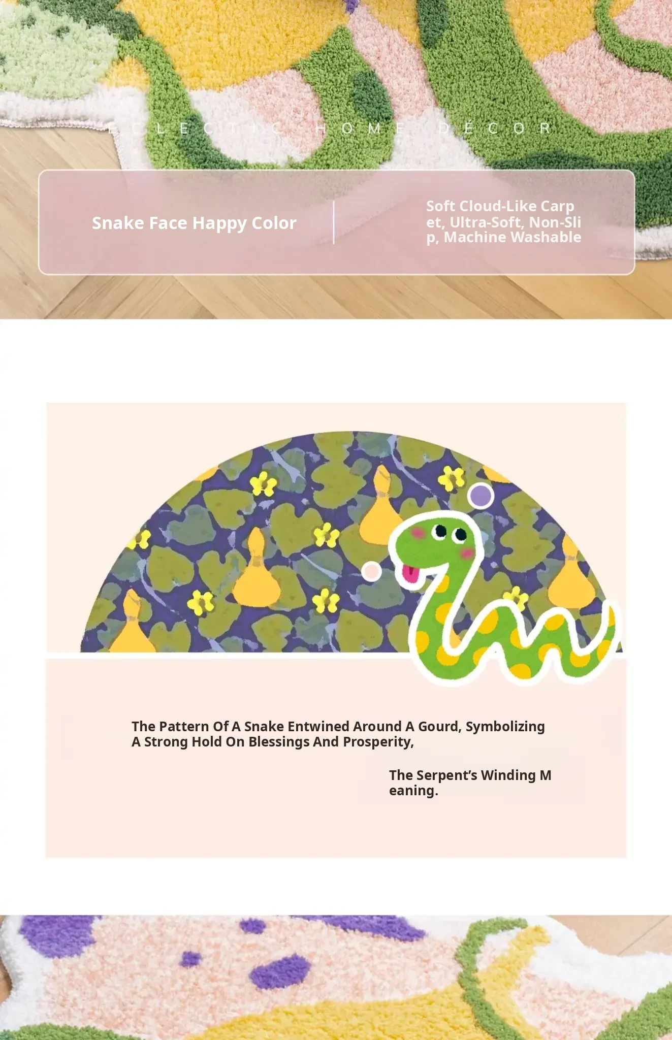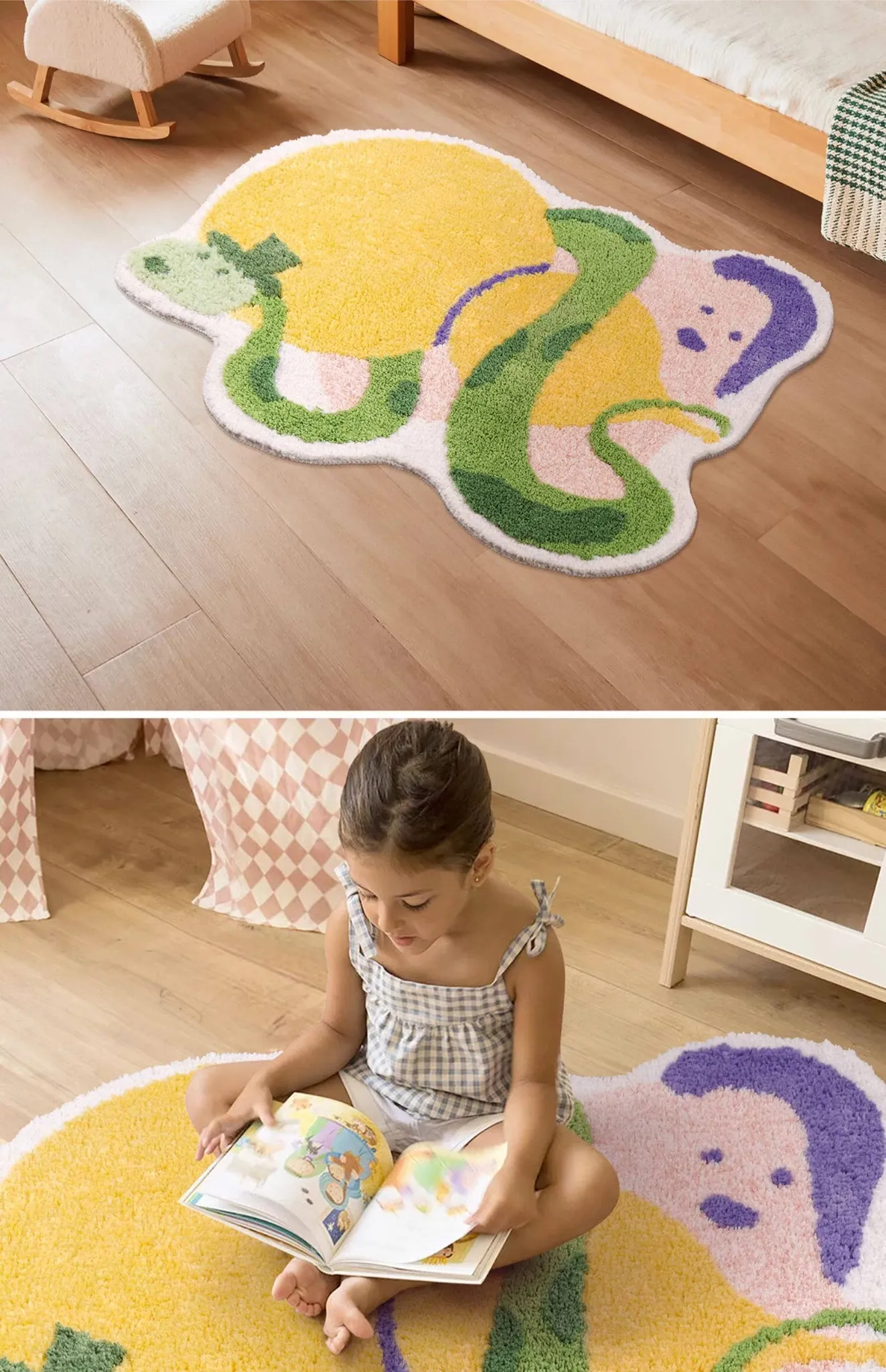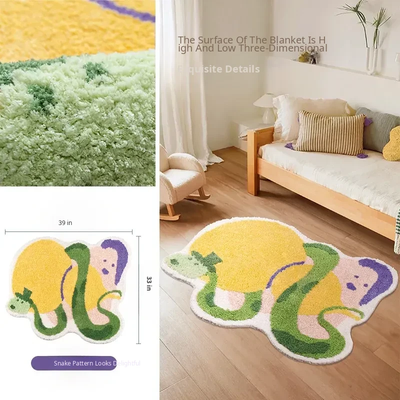 Dopamine Plush Area Rug for Kids' Room - Thick, Washable Carpet for Bedroom and Living Room, Non-Slip Mat for Snake Year, Perfect for Bathroom and Bedside Use