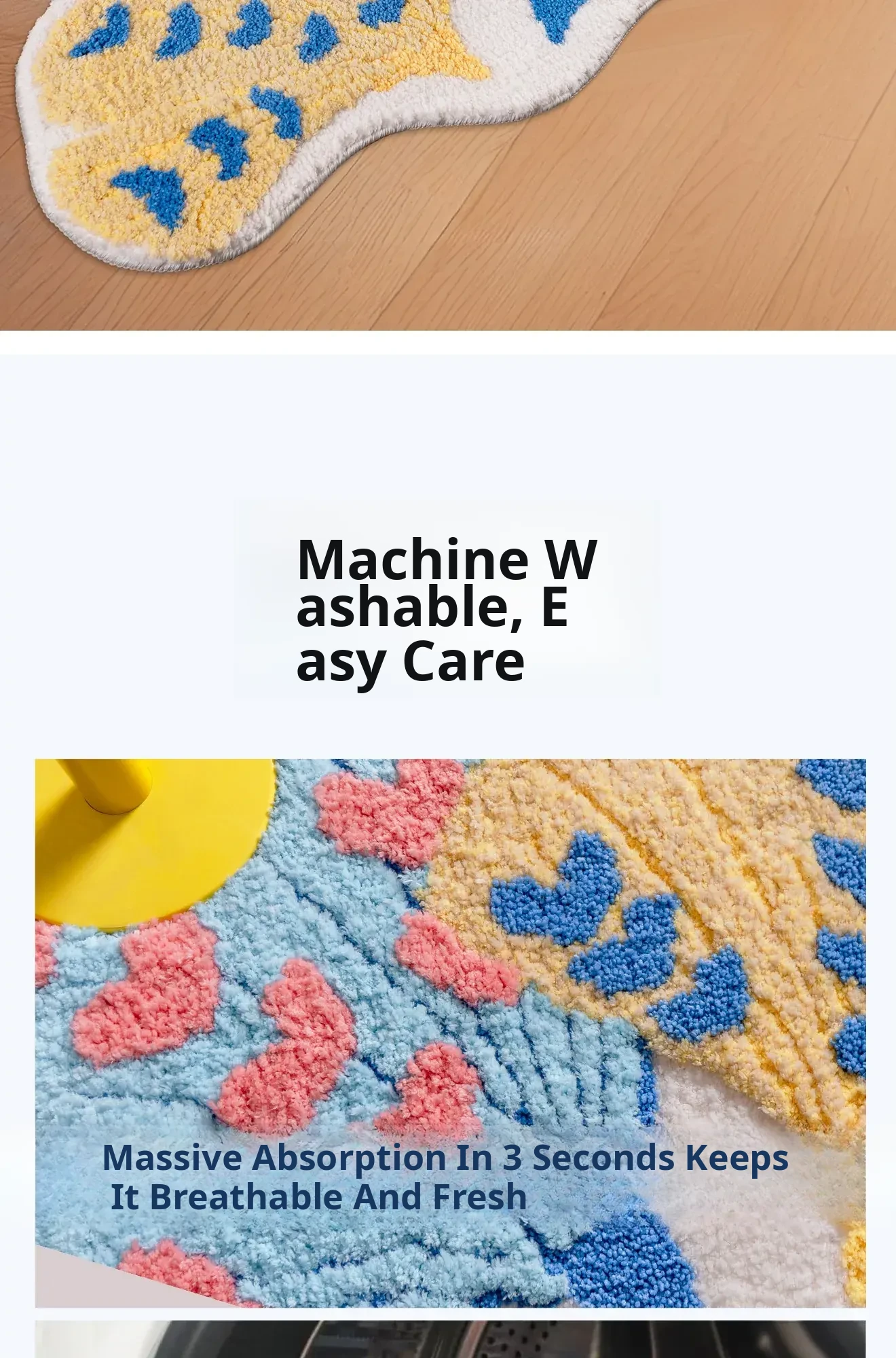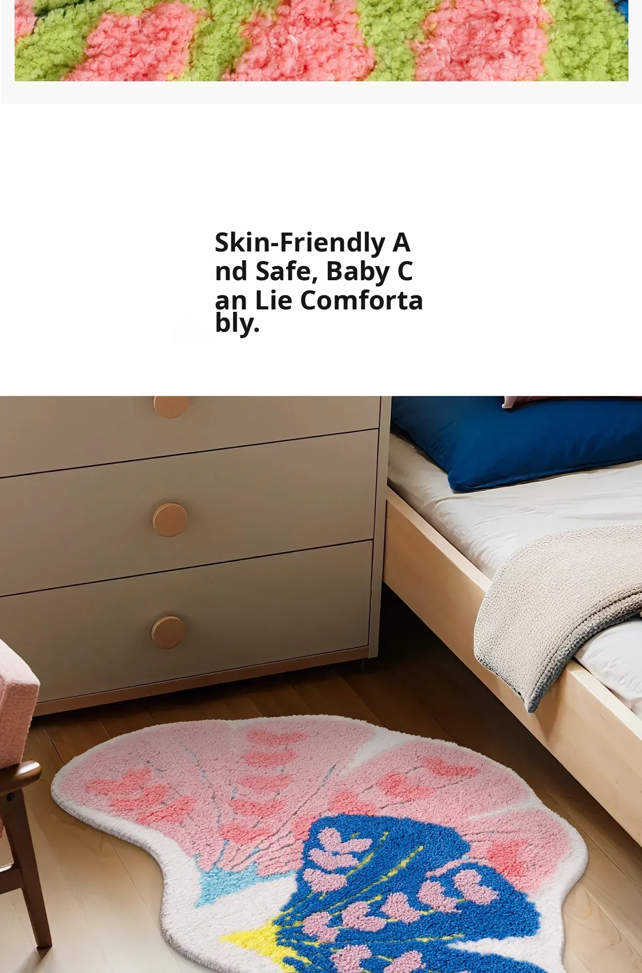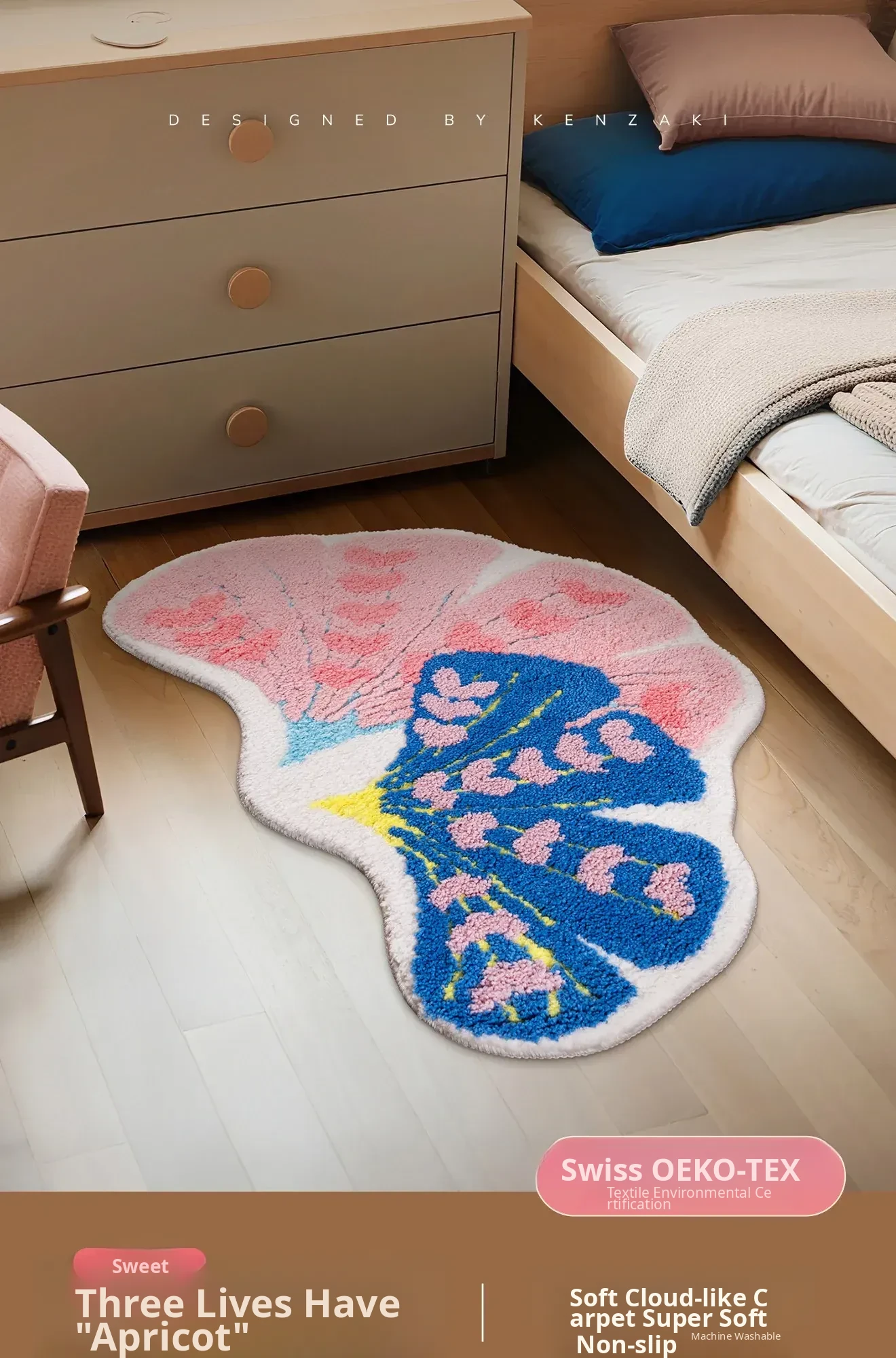 Dopamine-Boosting Pink Ginkgo Leaf Area Rug for Girls' Bedrooms - Irregular Shape, Machine Washable, Perfect for Kids’ Play Areas and Stylish Ins Vibe!