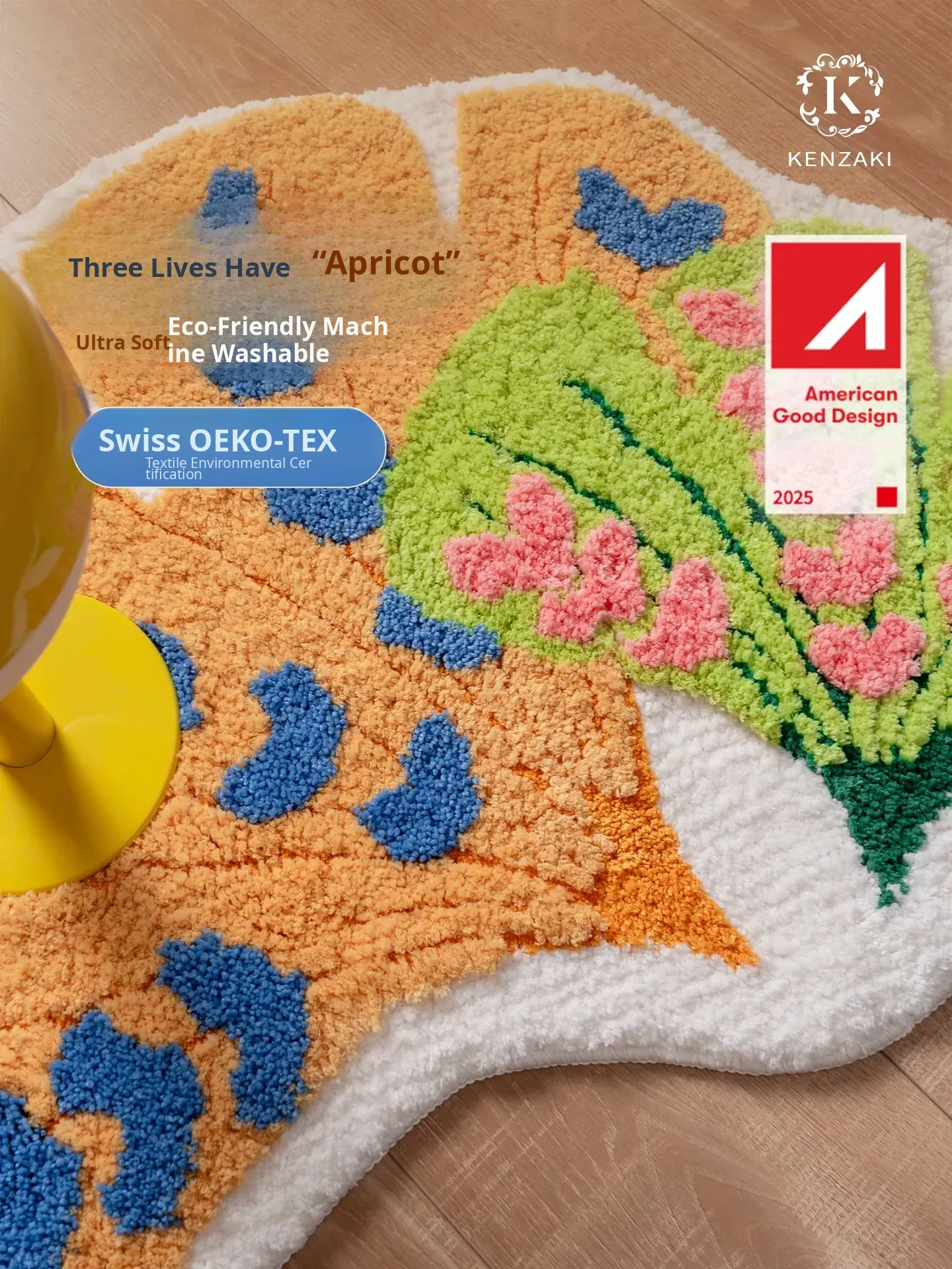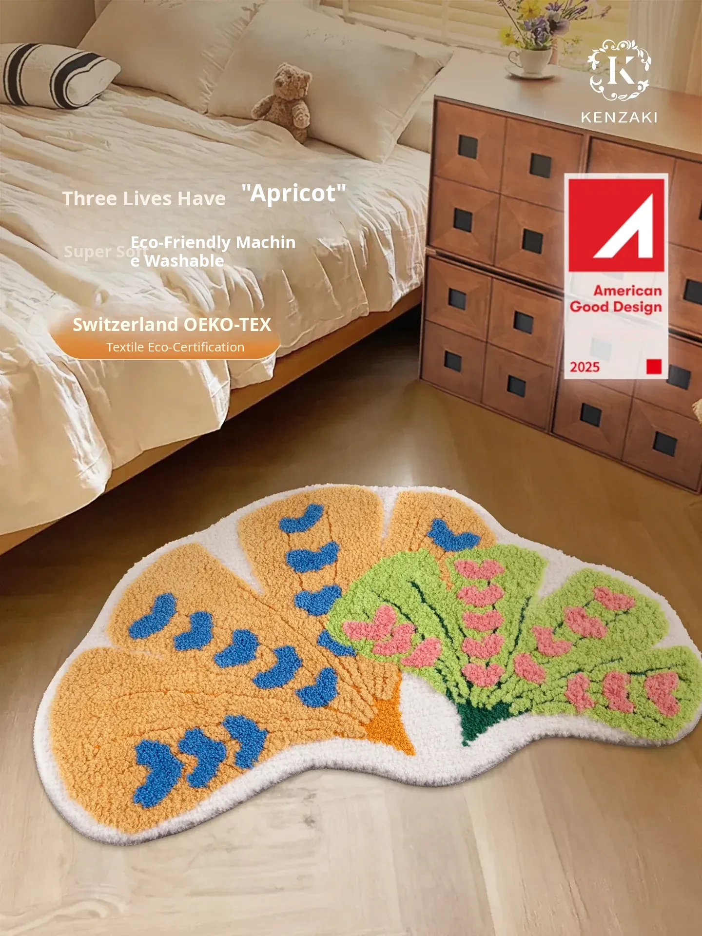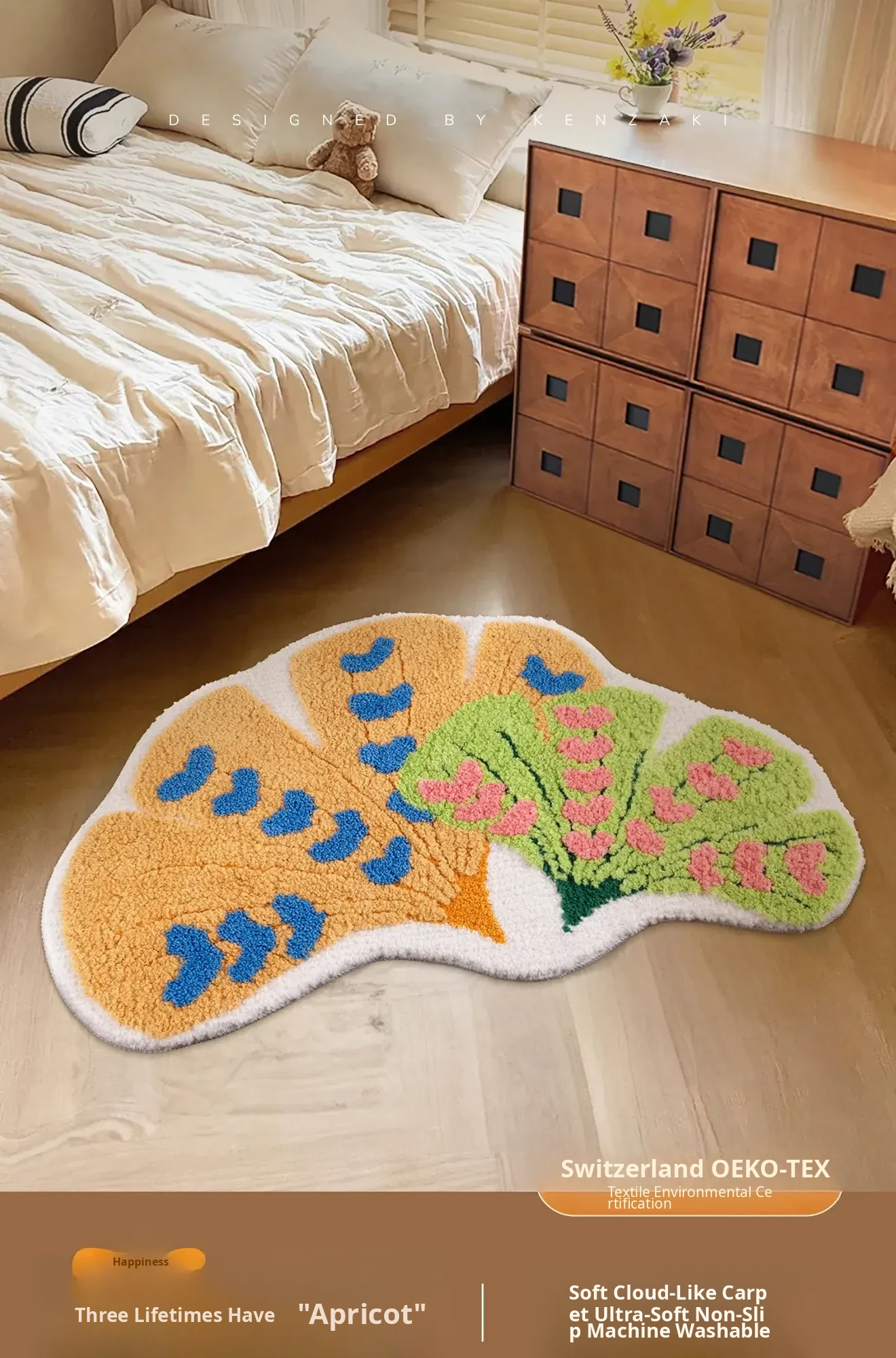 Dopamine-Inspired Ginkgo Leaf Area Rug for Bedroom - Machine Washable, Unique Shape, Perfect for Kids' Rooms, Boys & Girls - Stylish Ins-Style Bedside Carpet