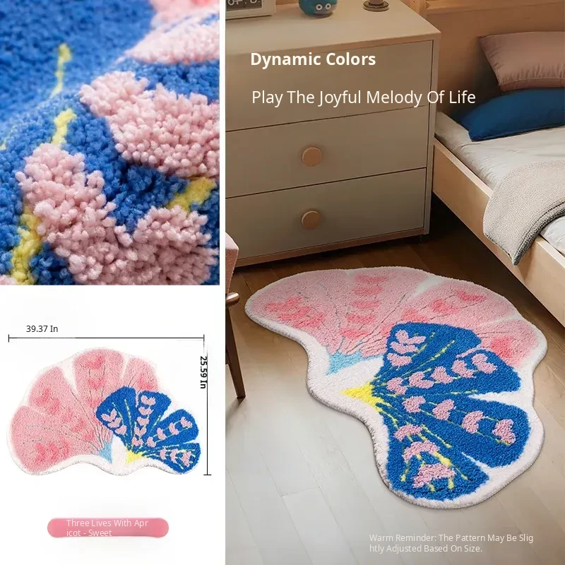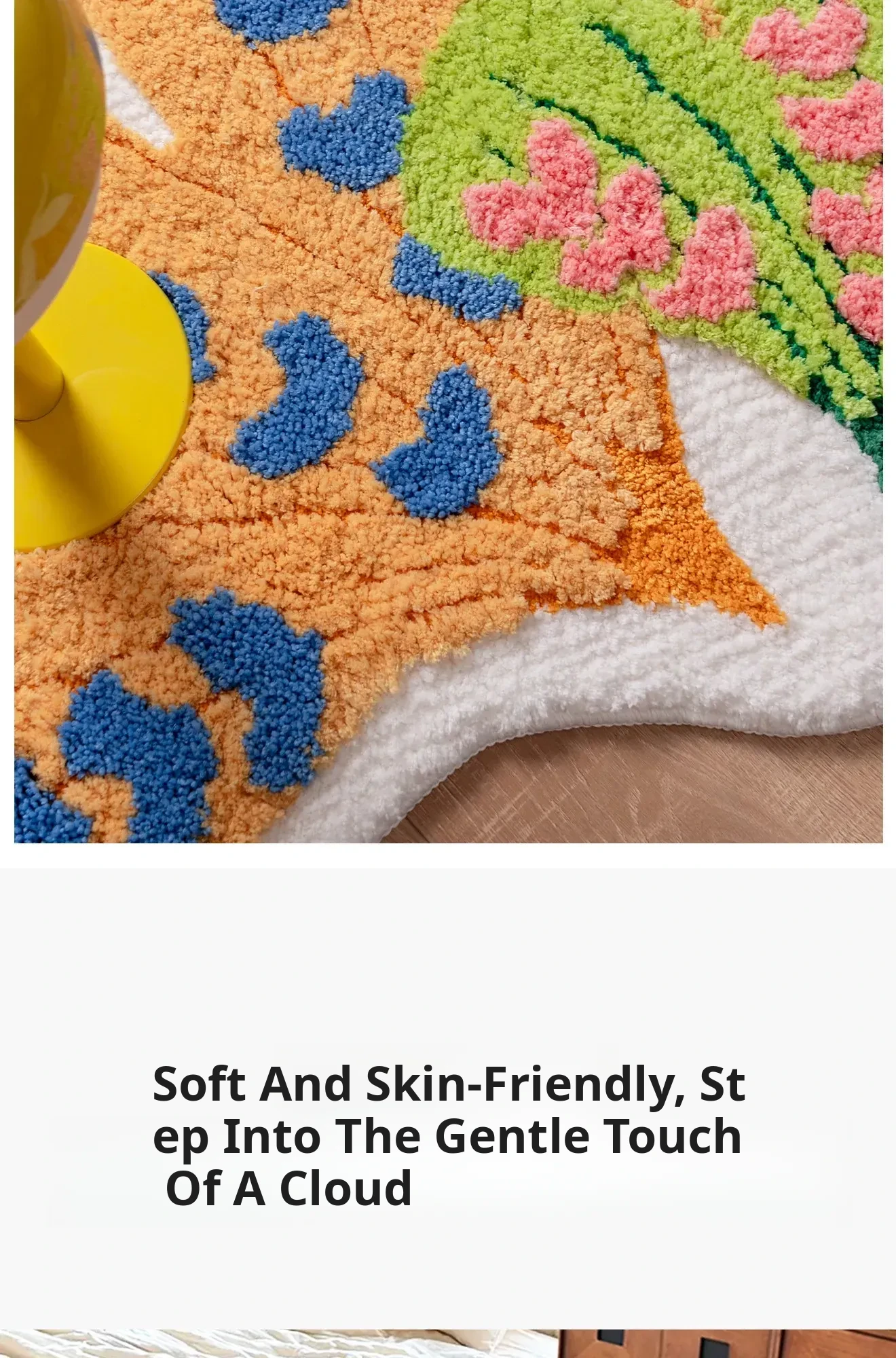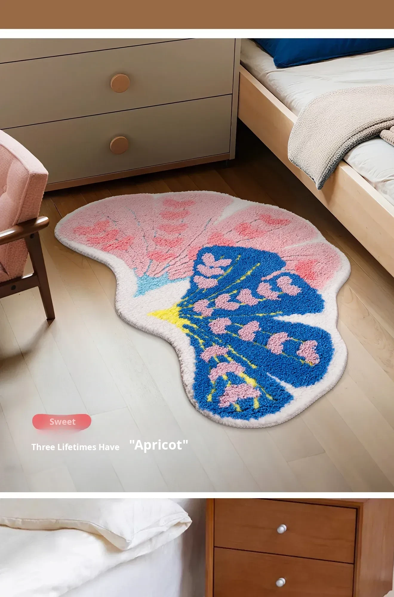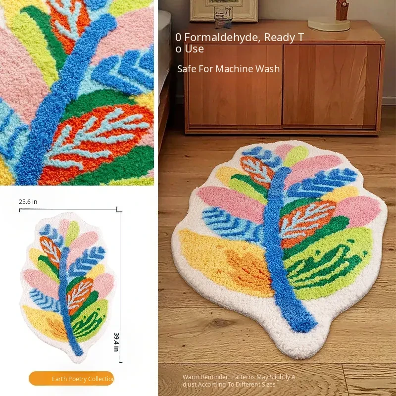 Dopamine-Inspired Ginkgo Leaf Area Rug for Bedroom - Machine Washable, Unique Shape, Perfect for Kids' Rooms, Boys & Girls - Stylish Ins-Style Bedside Carpet
