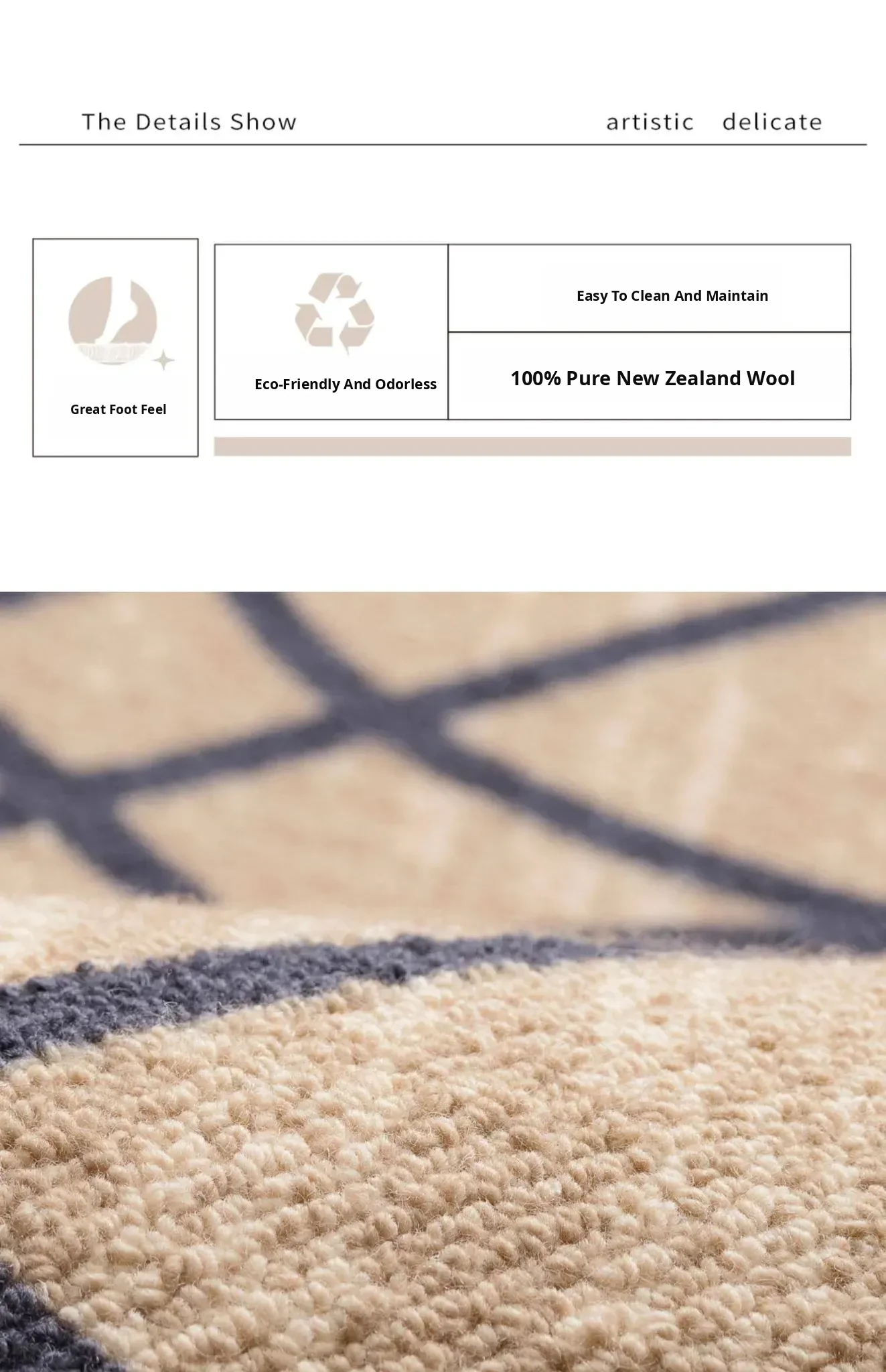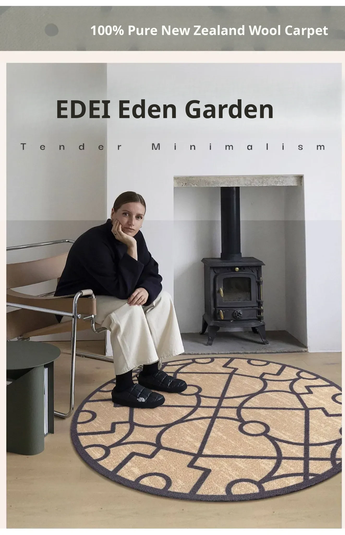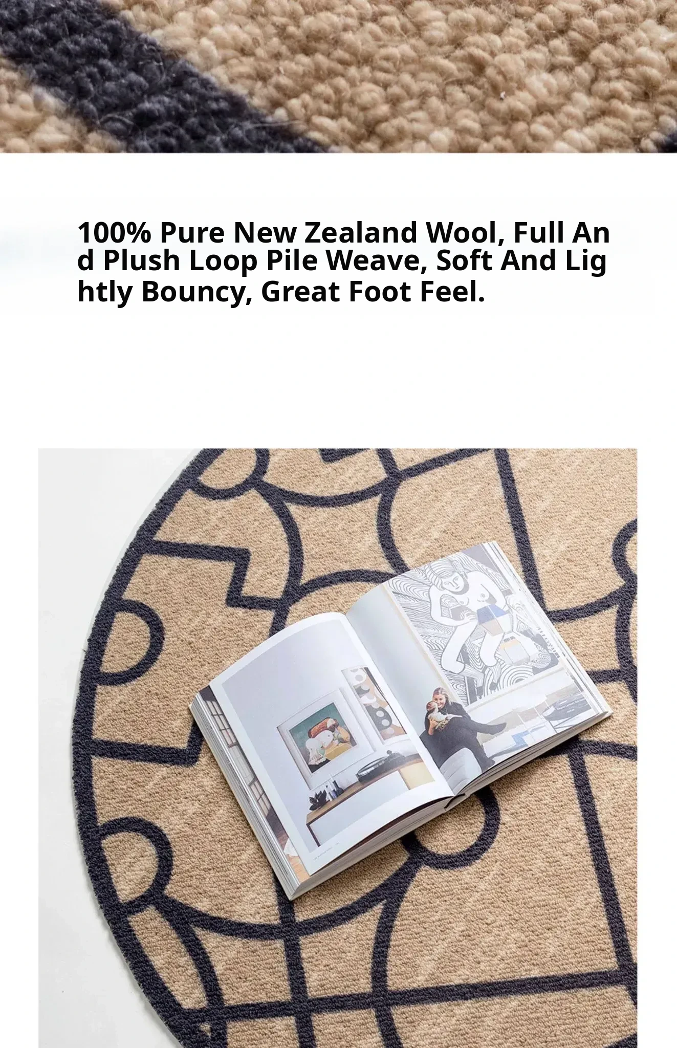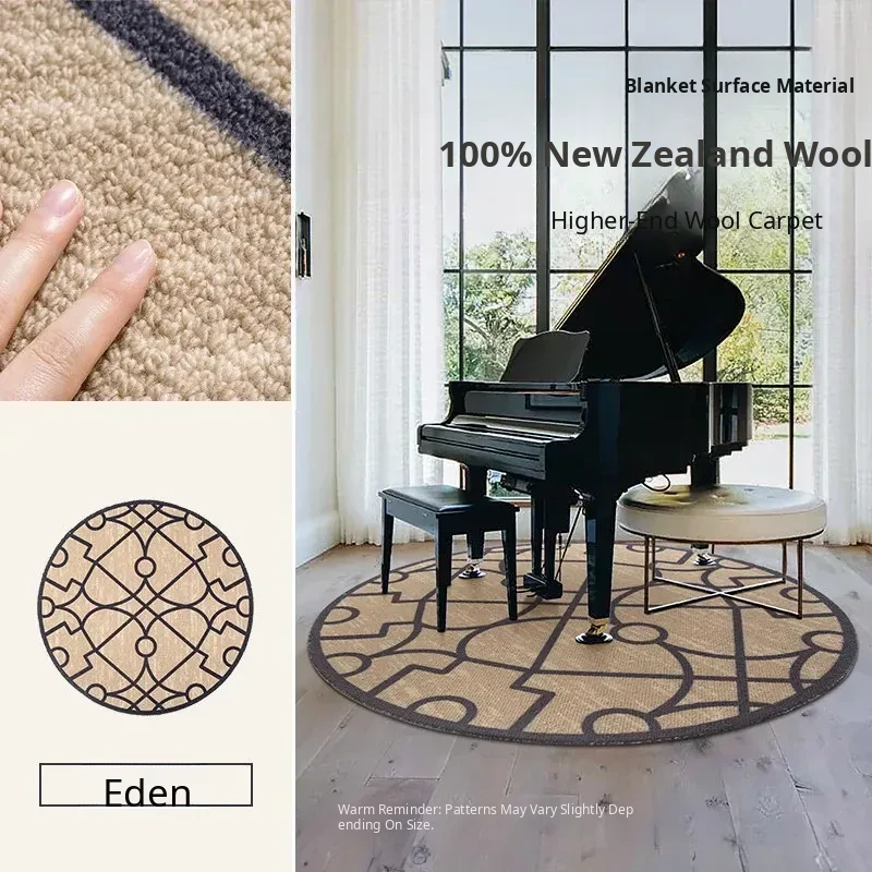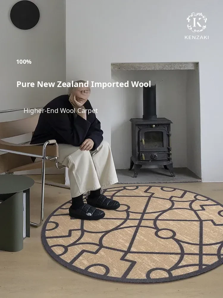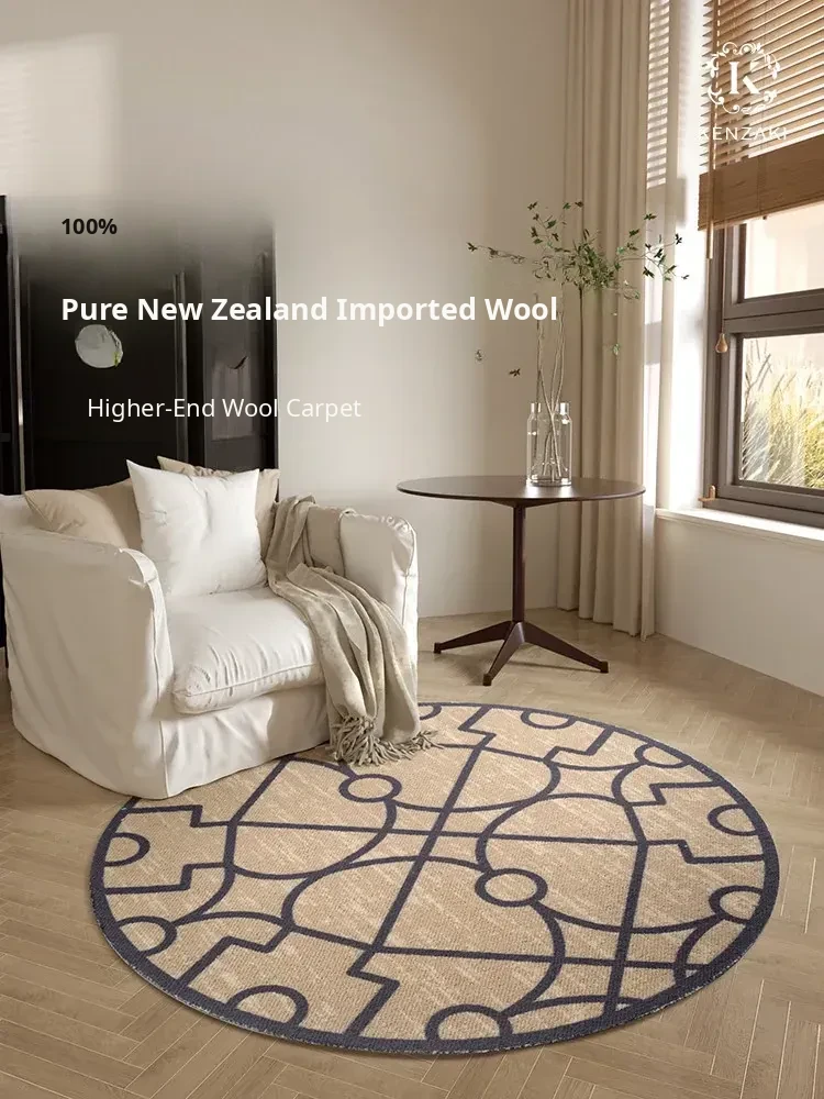 KENZAKI 100% Pure New Zealand Wool Round Area Rug - Luxurious and Elegant Carpets for Bedroom and Living Room, Perfect for Bedside Use