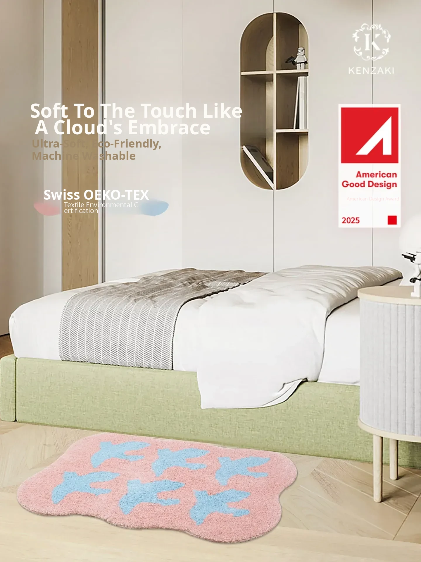 KENZAKI Machine-Washable Ultra-Soft Kids Room Carpet - Trendy Dopamine Colors, Anti-Slip Bedroom Rug, Perfect for Stylish Spaces!