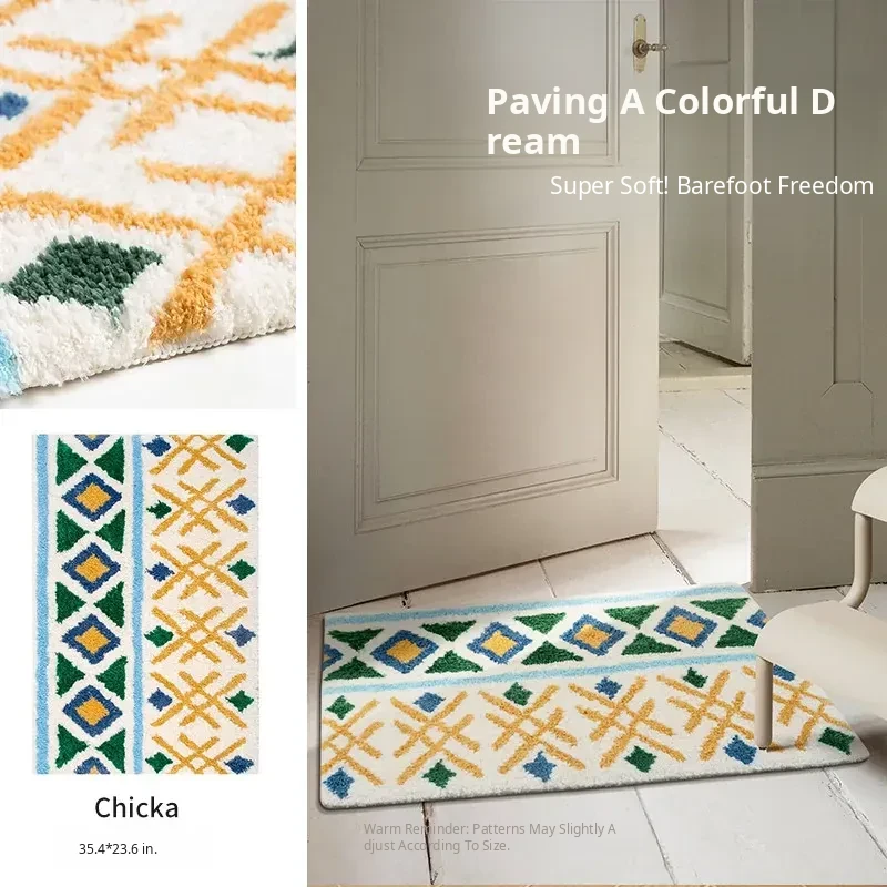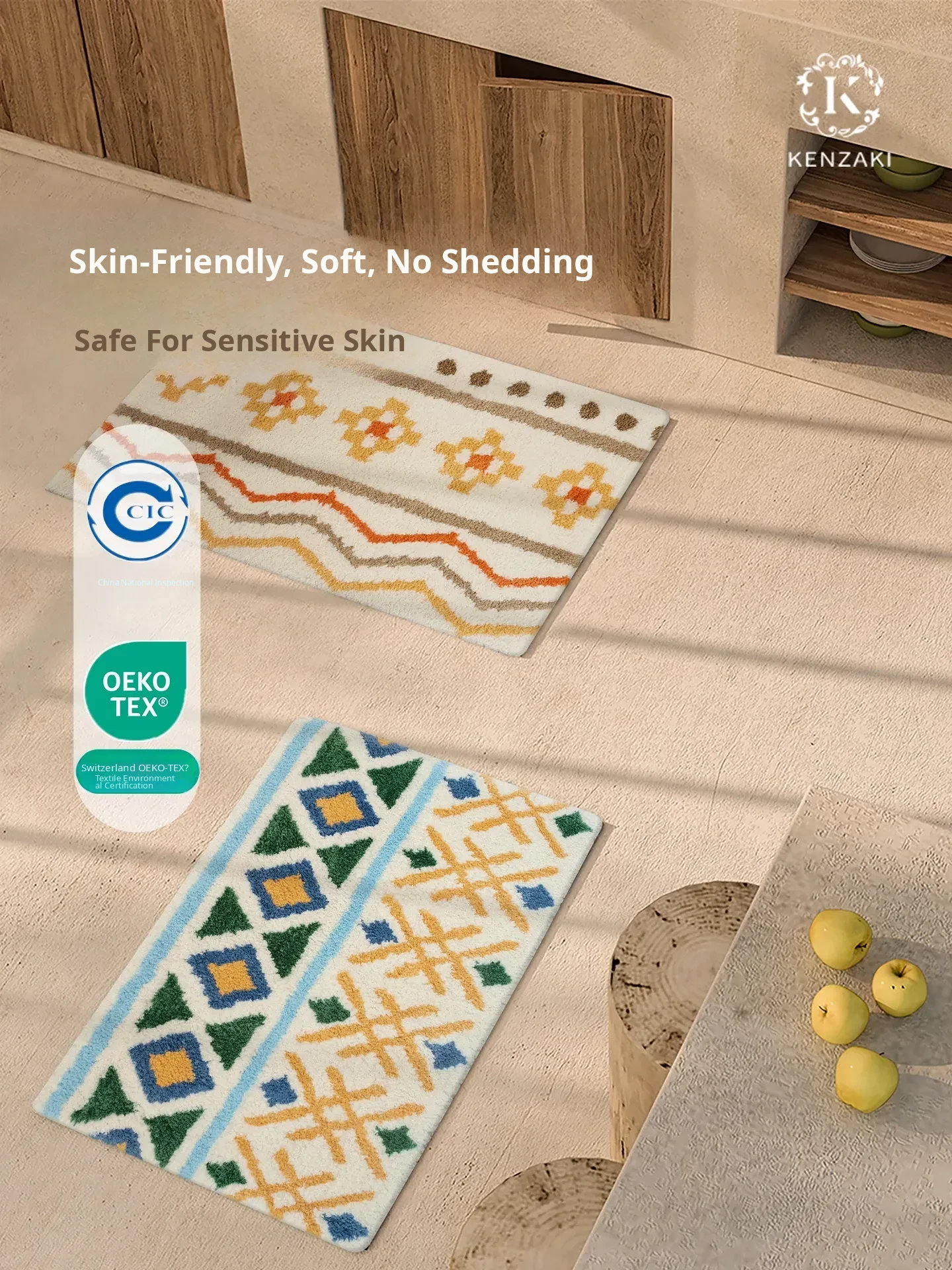 KENZAKI Machine-Washable Ultra-Soft Moroccan Style Rug - Non-Slip Bath Mat for Your Stylish Bathroom and Cozy Bedroom, Perfect for Hallways and Dressing Areas