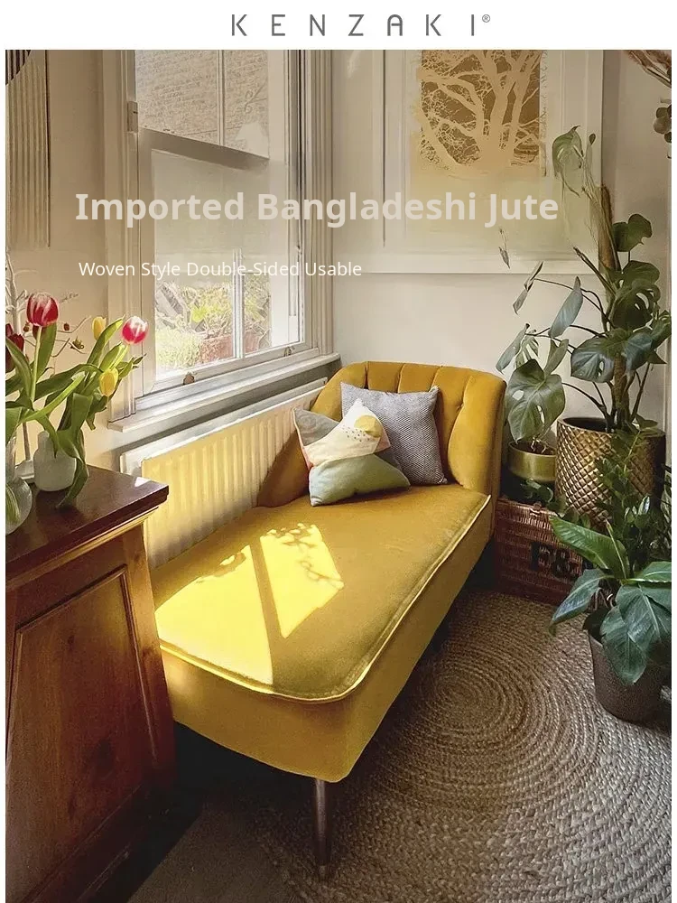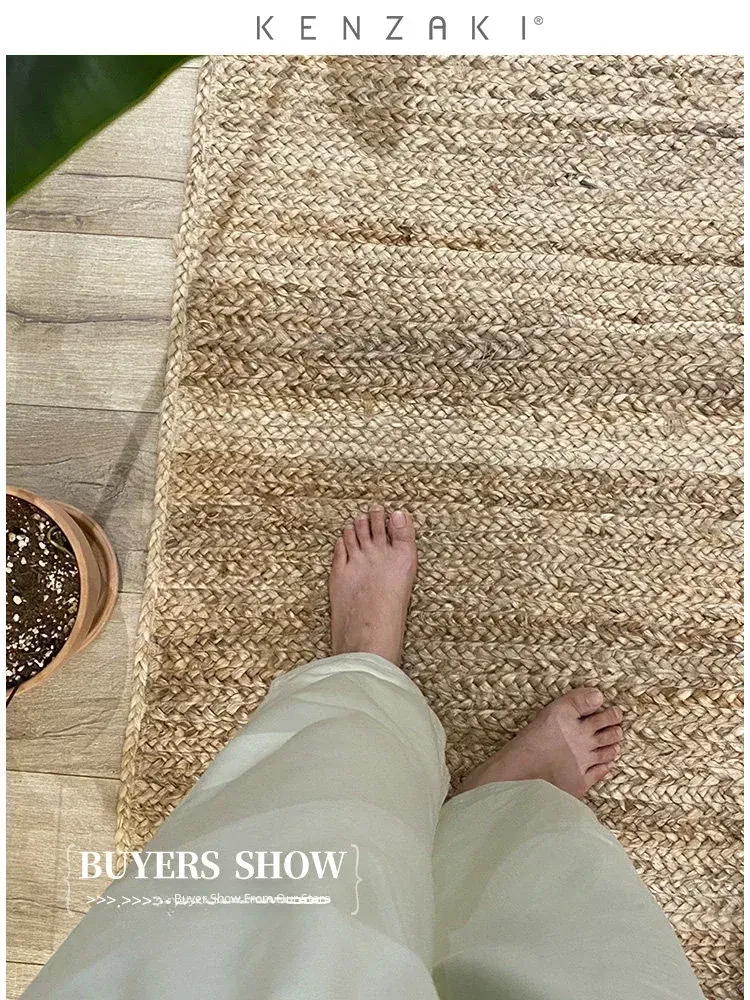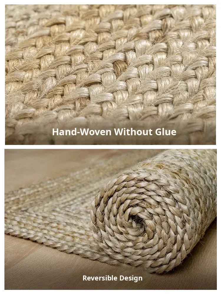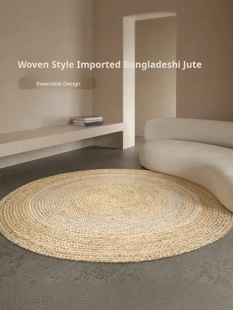 KENZAKI Natural Handmade Wabi-Sabi Style Round Double-Sided Jute Carpet - Glue-Free, Perfect for Bedroom and Living Room Decor