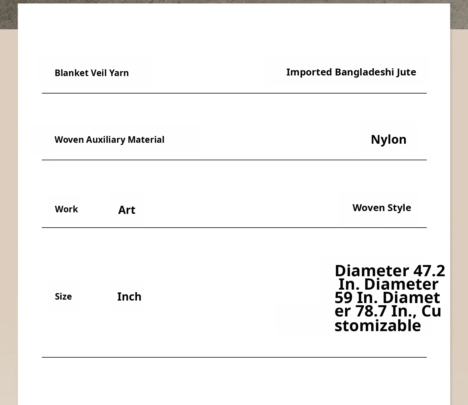 Round 47.24in Diameter