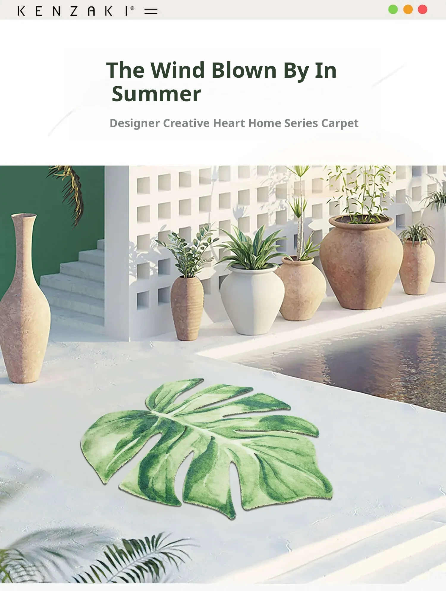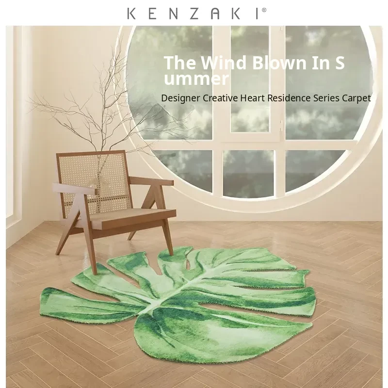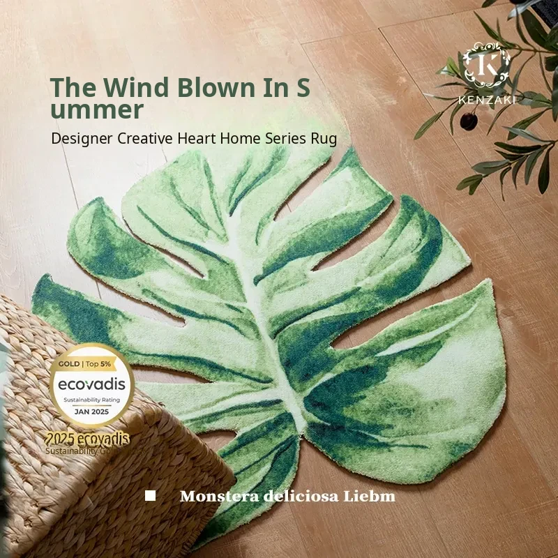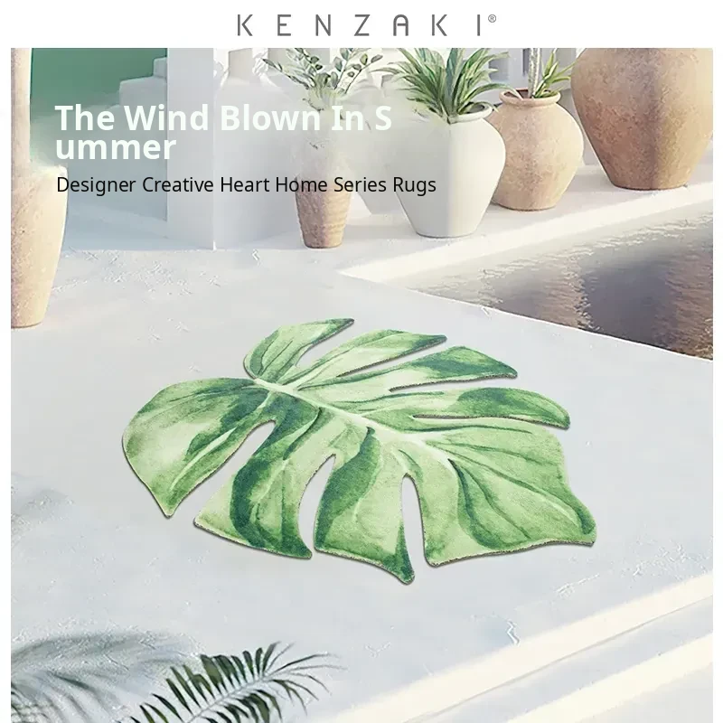 KENZAKI Original Green Monstera Leaf Area Rug - Perfect for Your Balcony, Bedroom, or Living Room. Stylish and Unique Design to Enhance Your Space!