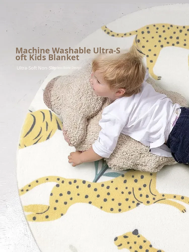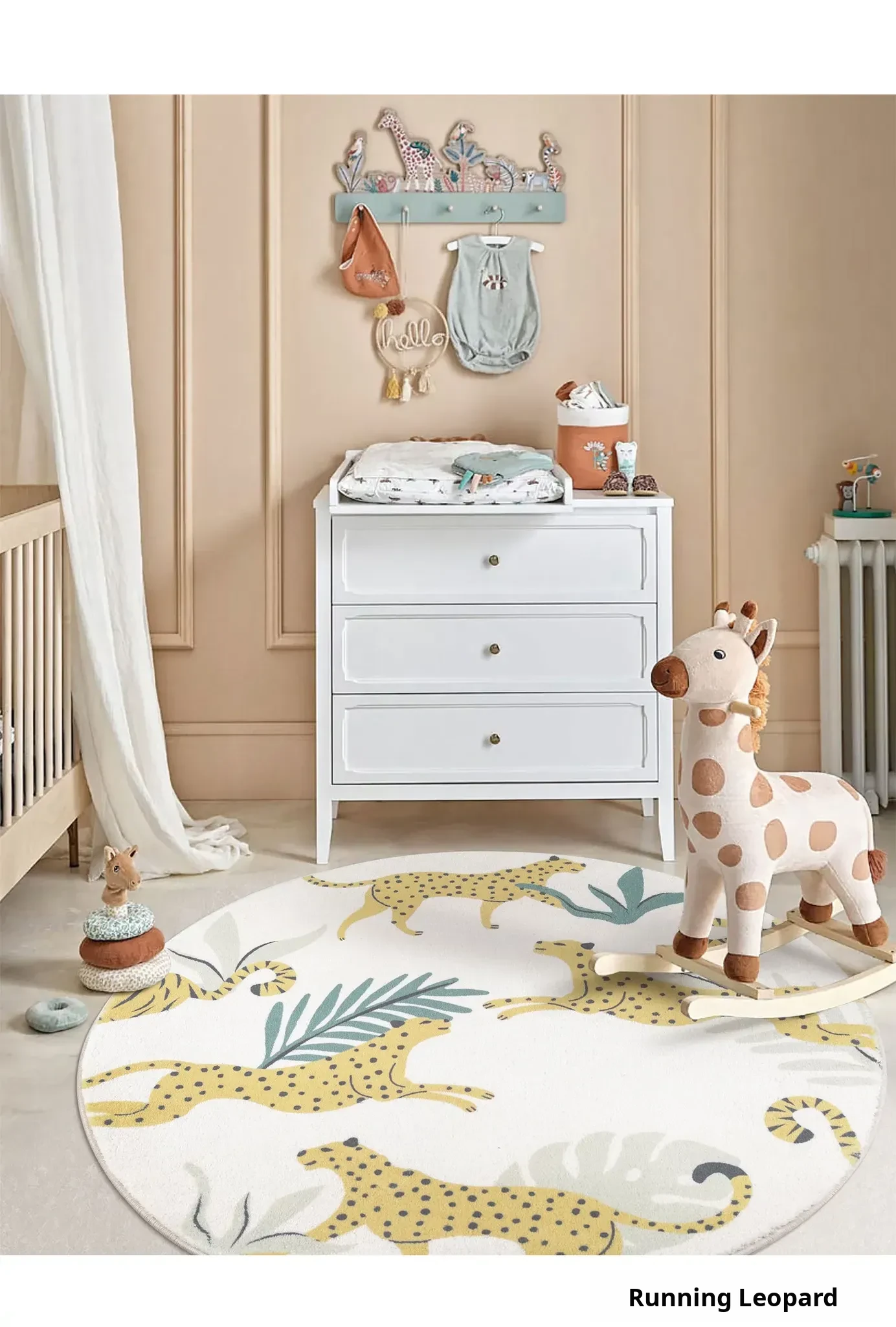 KENZAKI Ultra-Soft Eco-Friendly Round Carpet for Kids' Rooms - Adorable French Style Bedside Mat for Girls' Bedrooms, Perfect for Milestone Celebrations