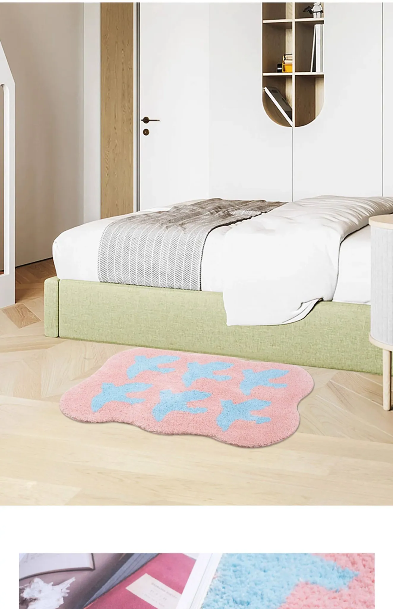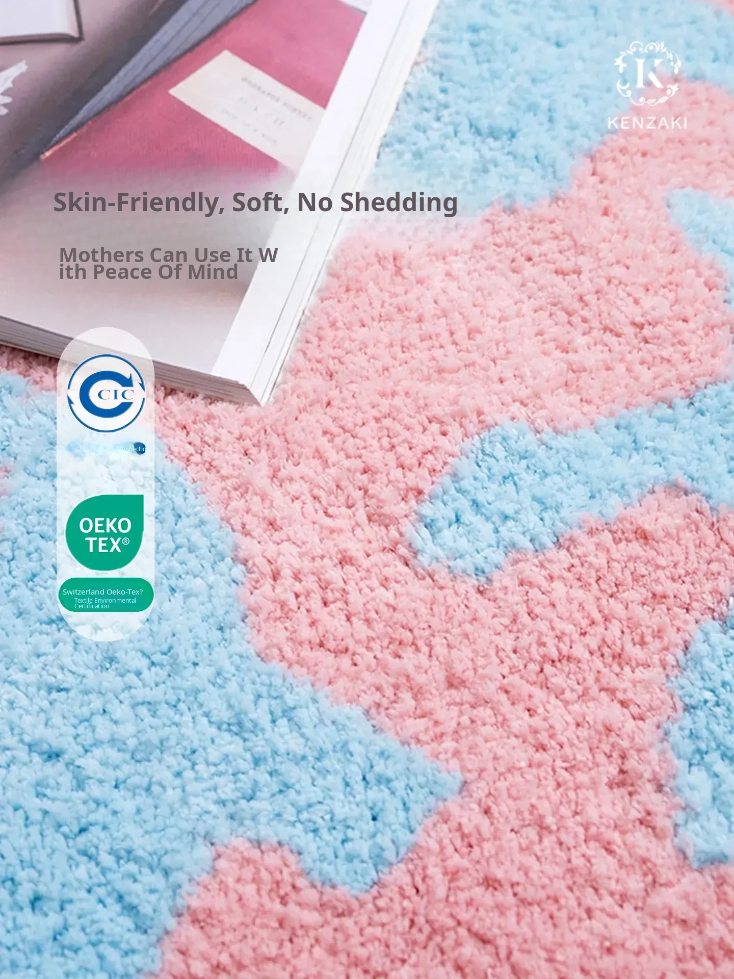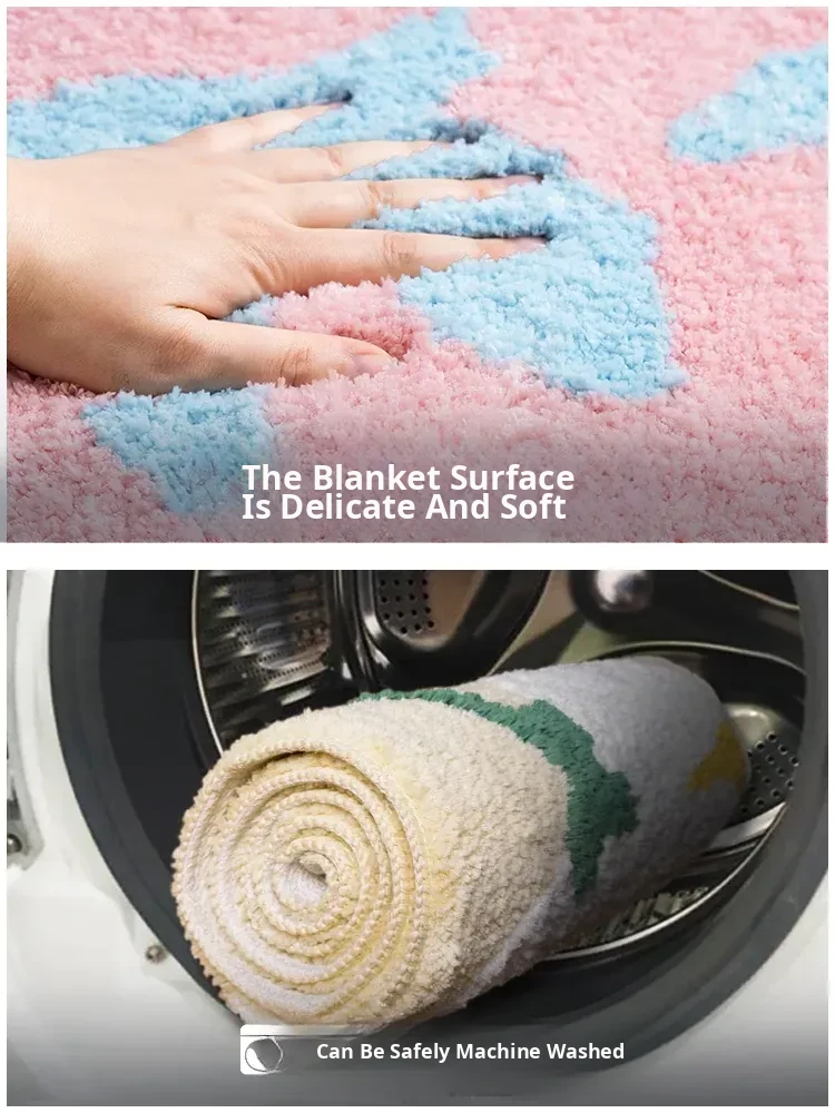 KENZAKI Ultra-Soft Machine Washable Carpet for Kids - Pink Non-Slip Area Rug for Girls' Bedroom and Nursery, Perfect for Bedside Use