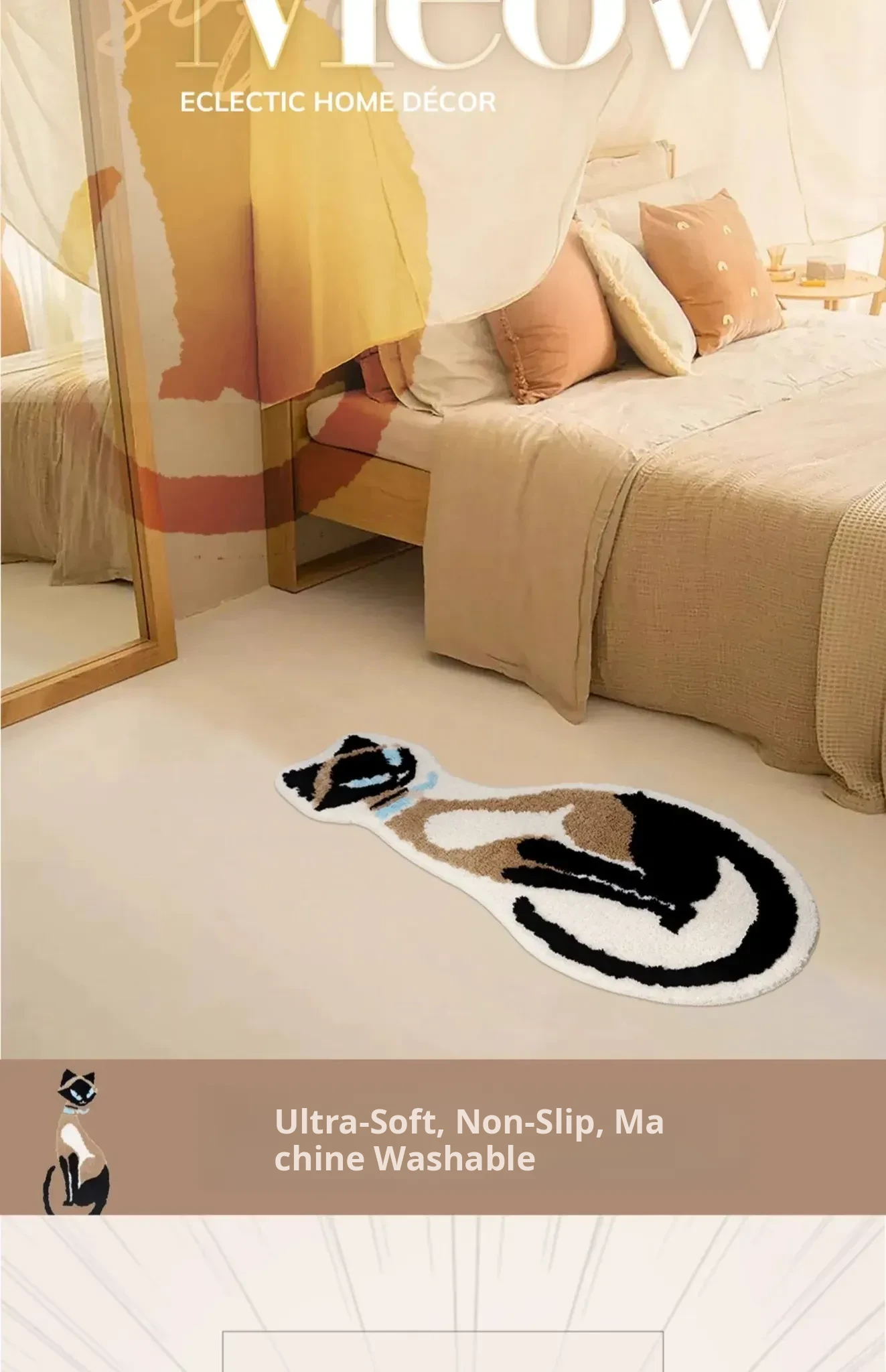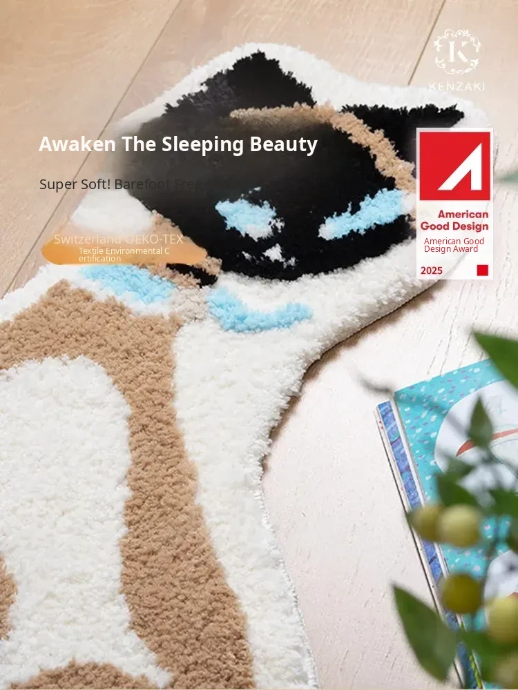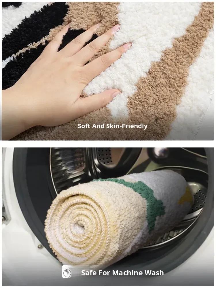 KENZAKI Washable Bedside Rug - Noise-Reducing, Non-Slip Area Carpet for Bedrooms and Kids' Rooms, Perfect for Bathrooms and Unique Living Spaces