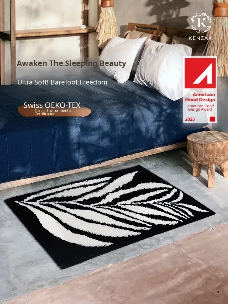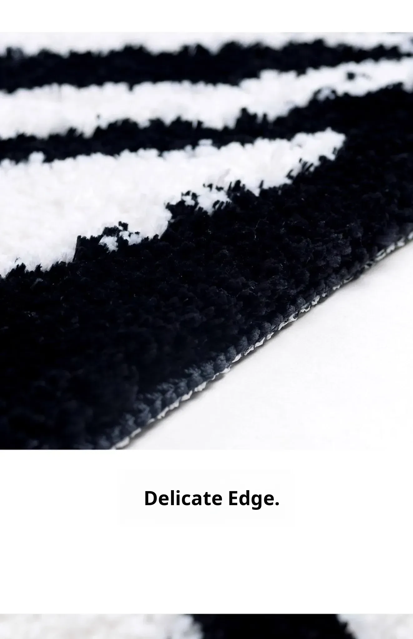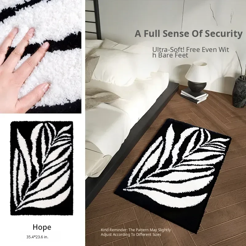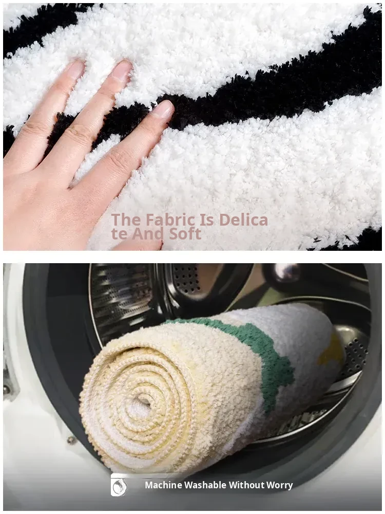 KENZAKI Washable Black and White Bedside Rug – Ultra Soft Non-Slip Carpet for Bedroom, Closet, Vanity, and Living Room Sofa – Perfect for Cozy Home Decor