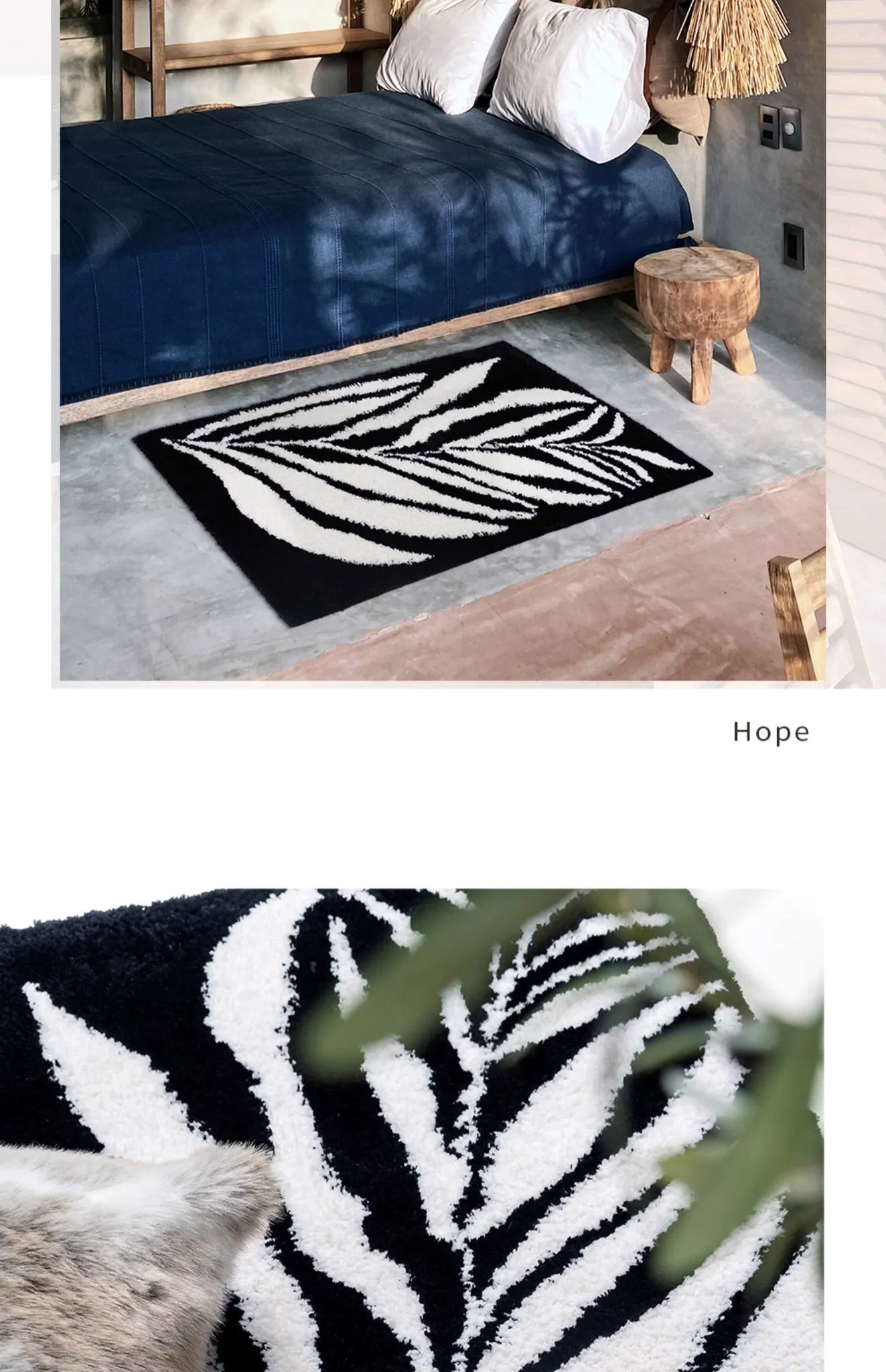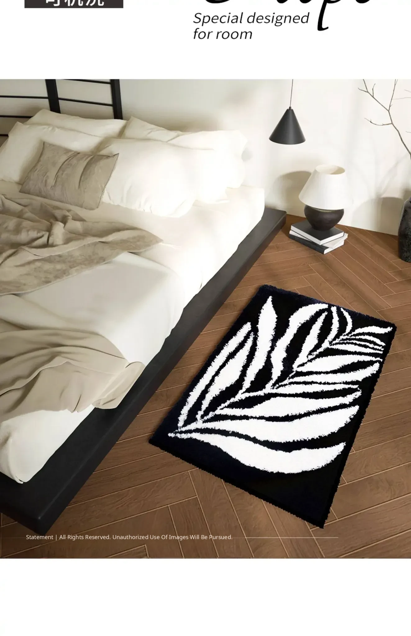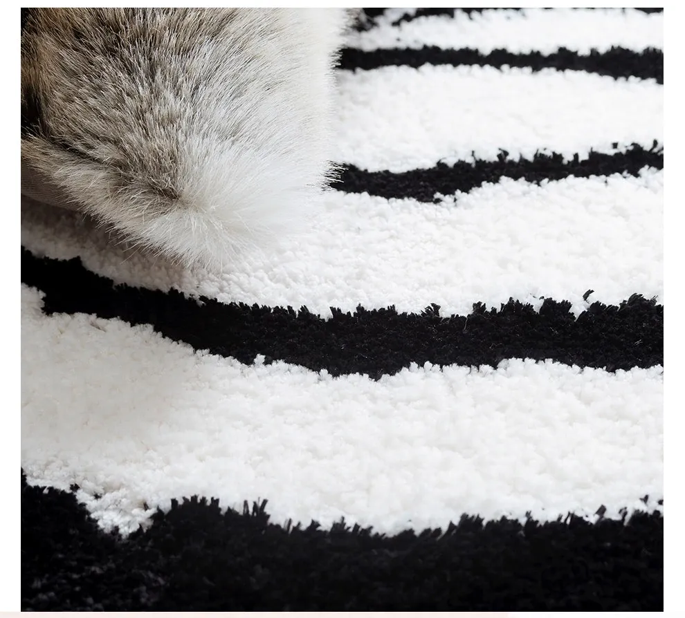 KENZAKI Washable Black and White Bedside Rug – Ultra Soft Non-Slip Carpet for Bedroom, Closet, Vanity, and Living Room Sofa – Perfect for Cozy Home Decor