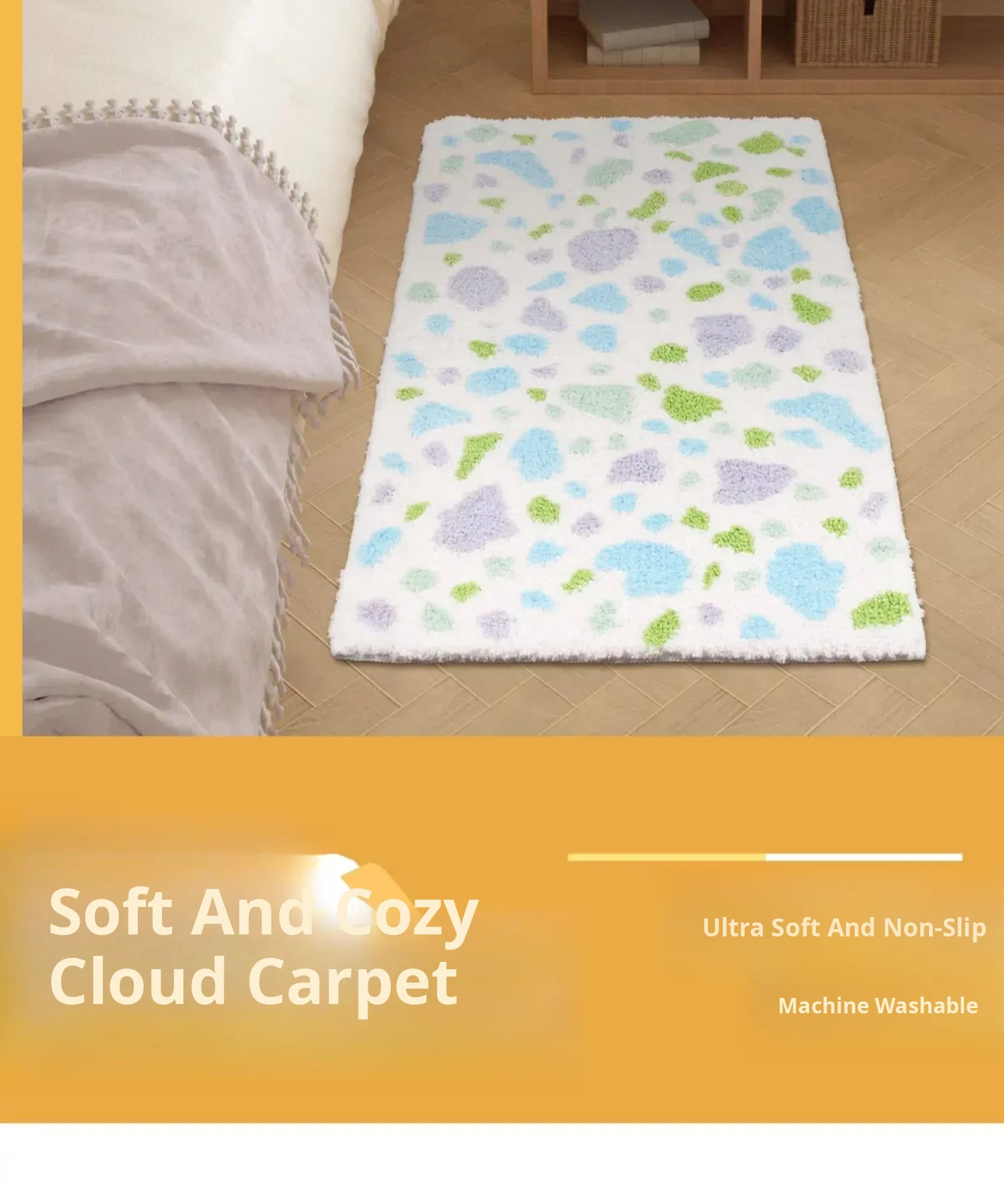 KENZAKI Washable Carpet - Soft and Stylish Area Rug for Bedroom, Living Room, and Kids' Reading Nook - Noise-Reducing Design Perfect for Cozy Spaces