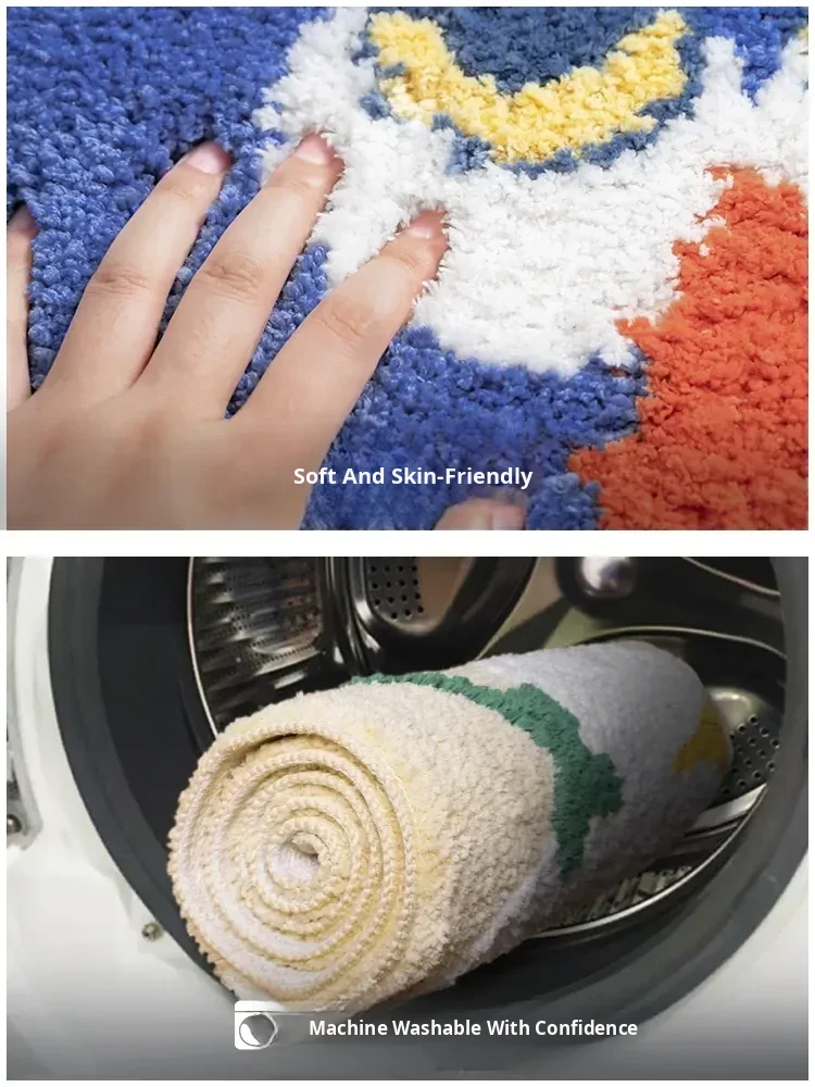 KENZAKI Washable Multi-Dopamine Area Rug - Non-Slip Carpet for Desk, Bedroom, Living Room, and Study - Perfect for Unique Spaces!