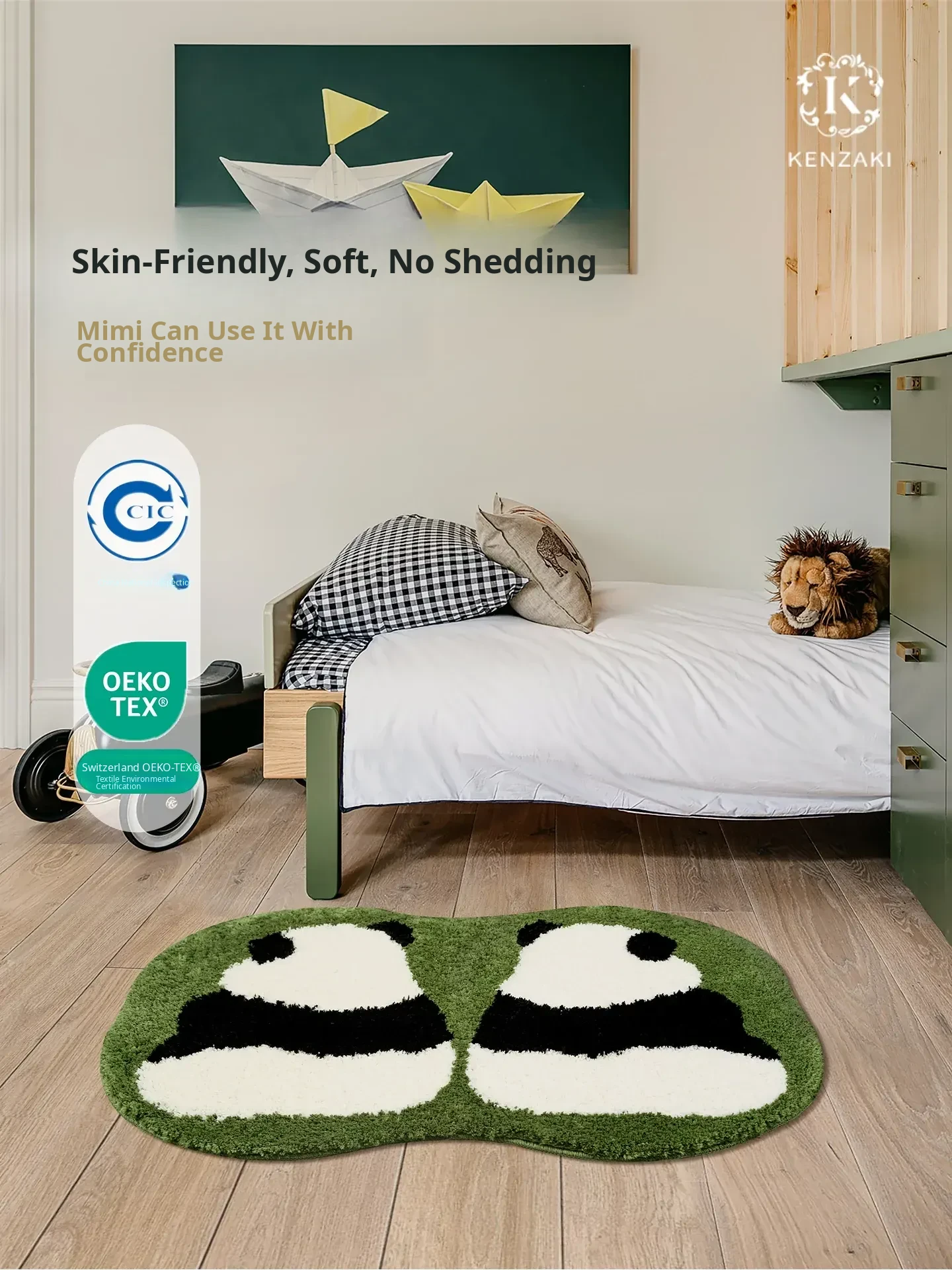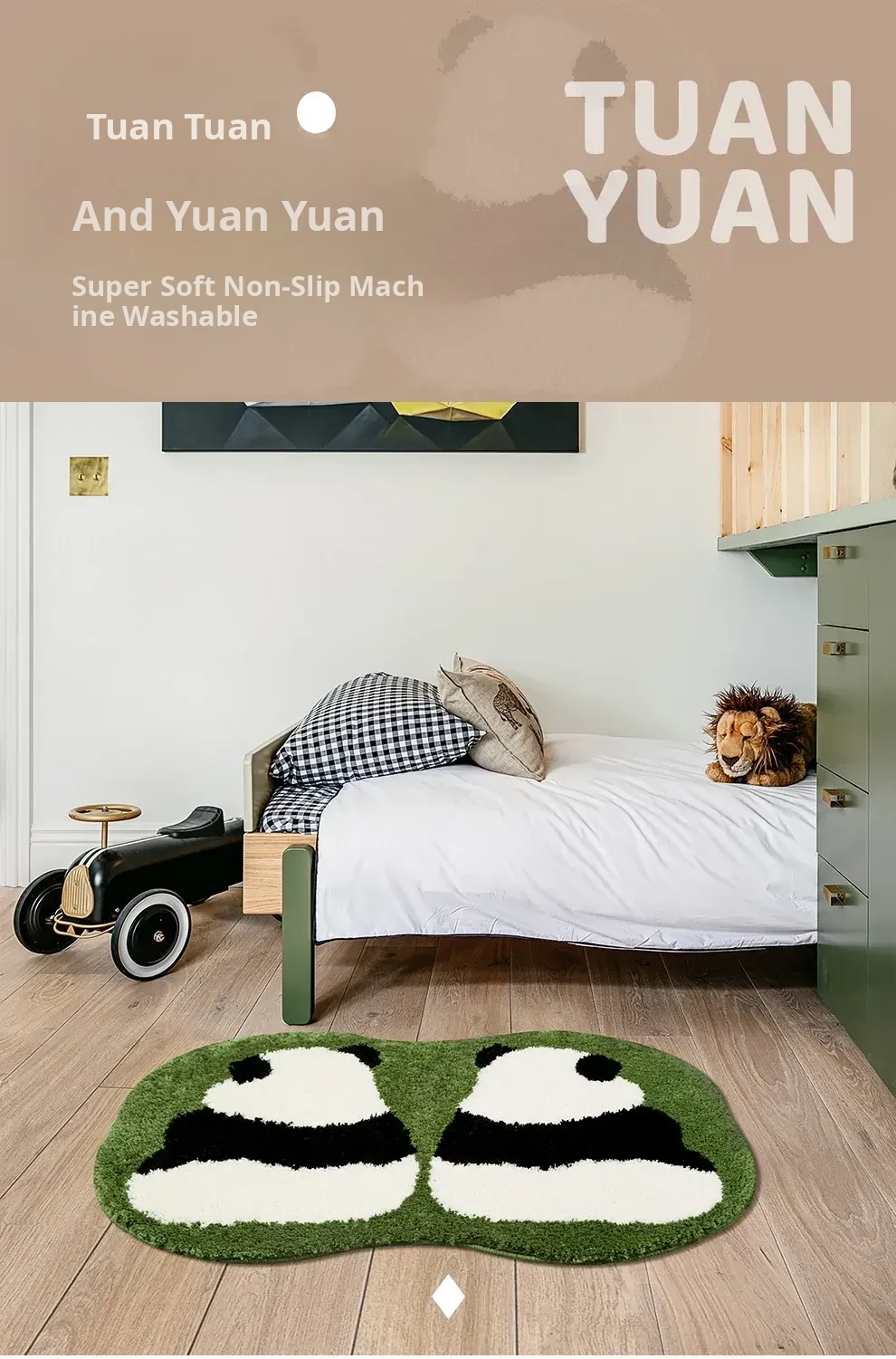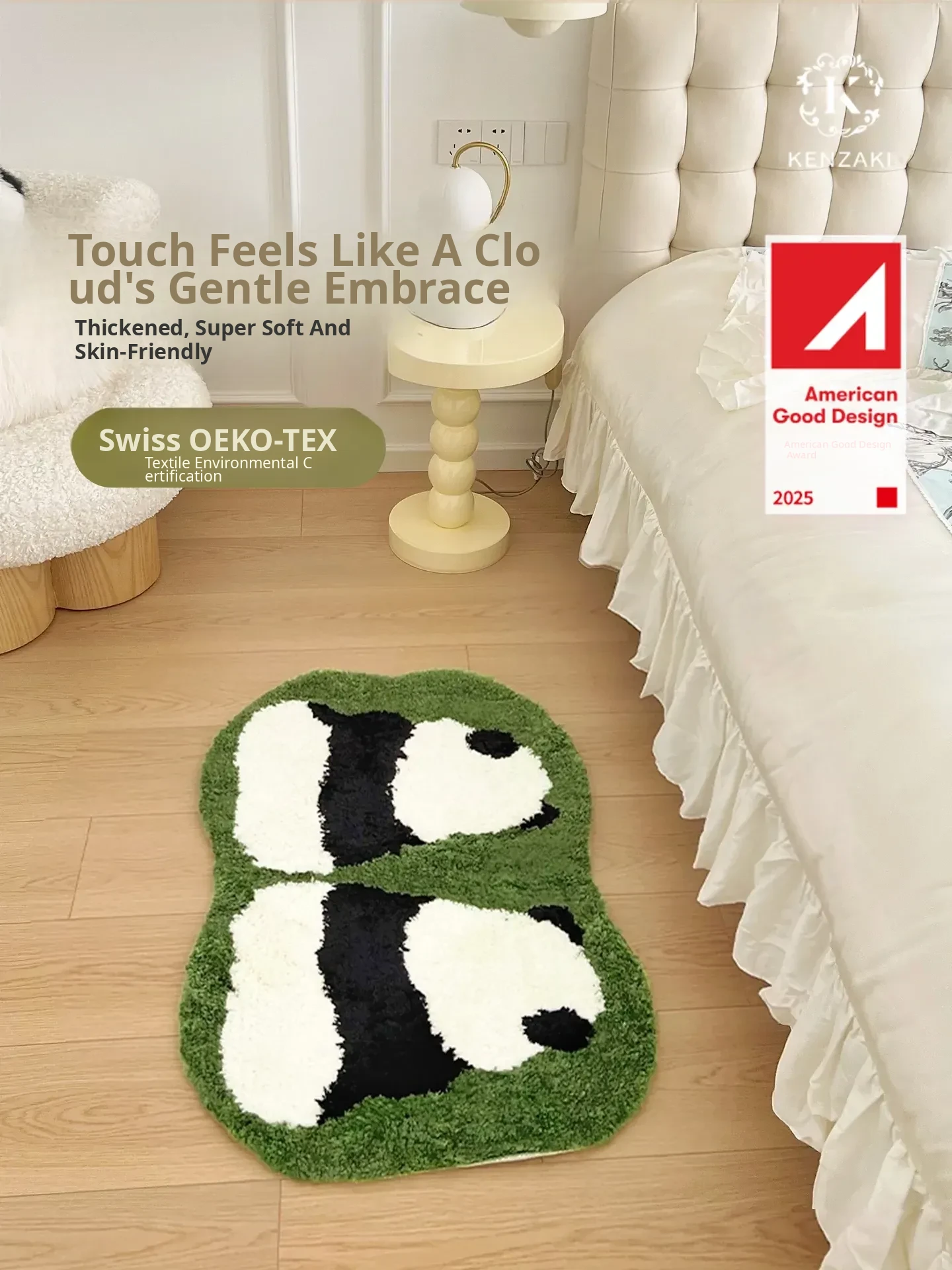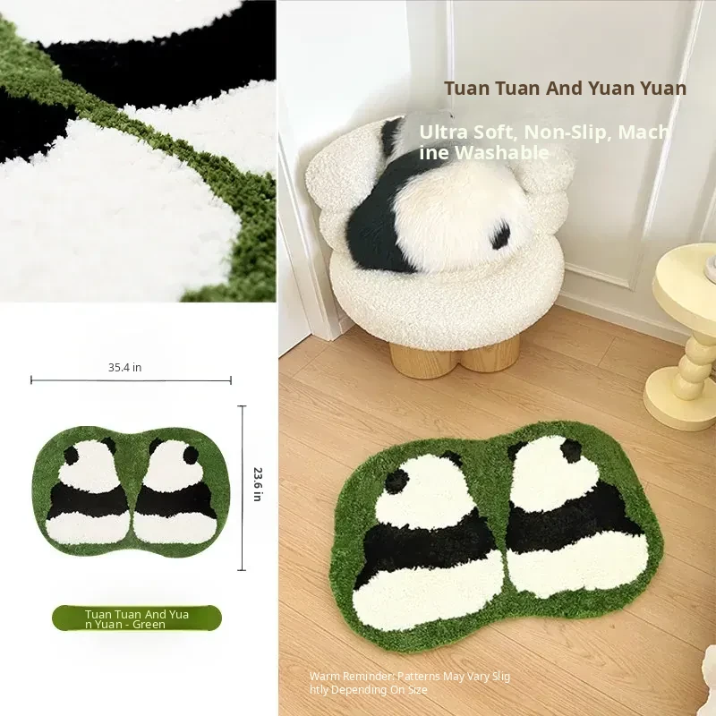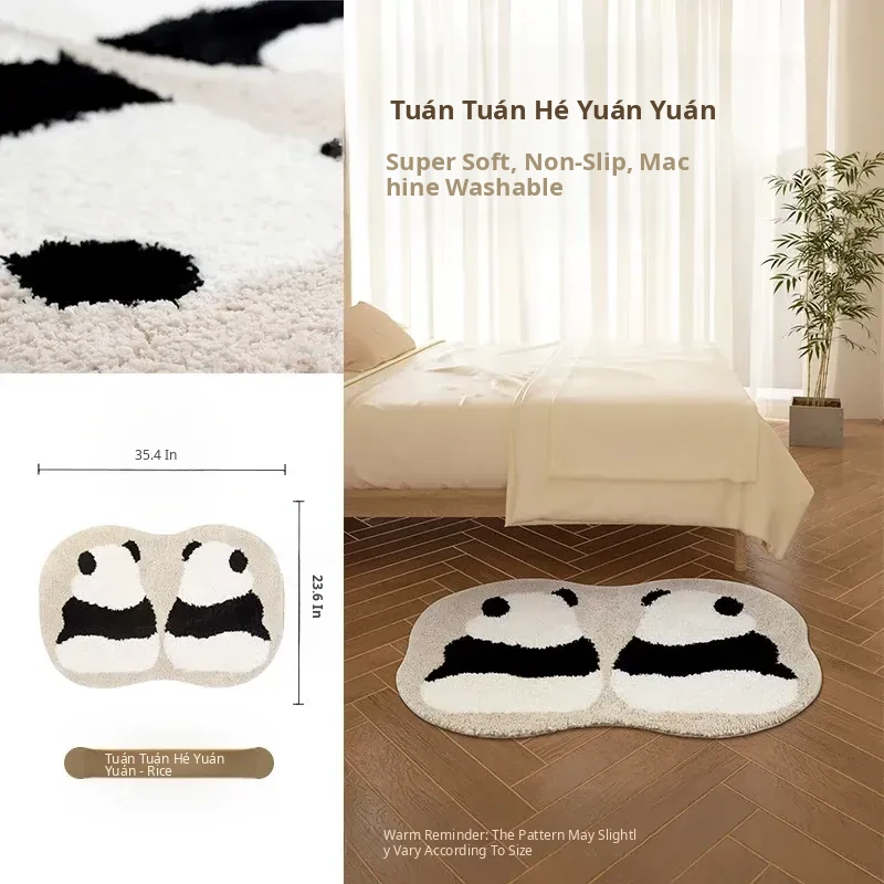 KENZAKI Washable Ultra-Soft Bedside Blanket - Original Ins Style Panda Non-Slip Area Rug for Kids' Room, Perfect for Cozy Bedrooms and Stylish Decor!