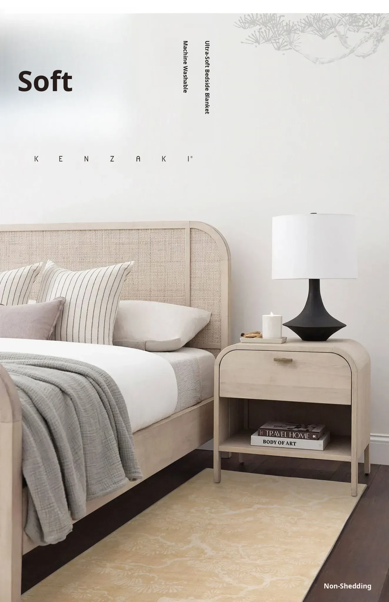 KENZAKI Washable Ultra-Soft Japanese-Style Modern Minimalist Foldable Non-Slip Bedroom Area Rug - Perfect for Cozy Comfort and Easy Maintenance!