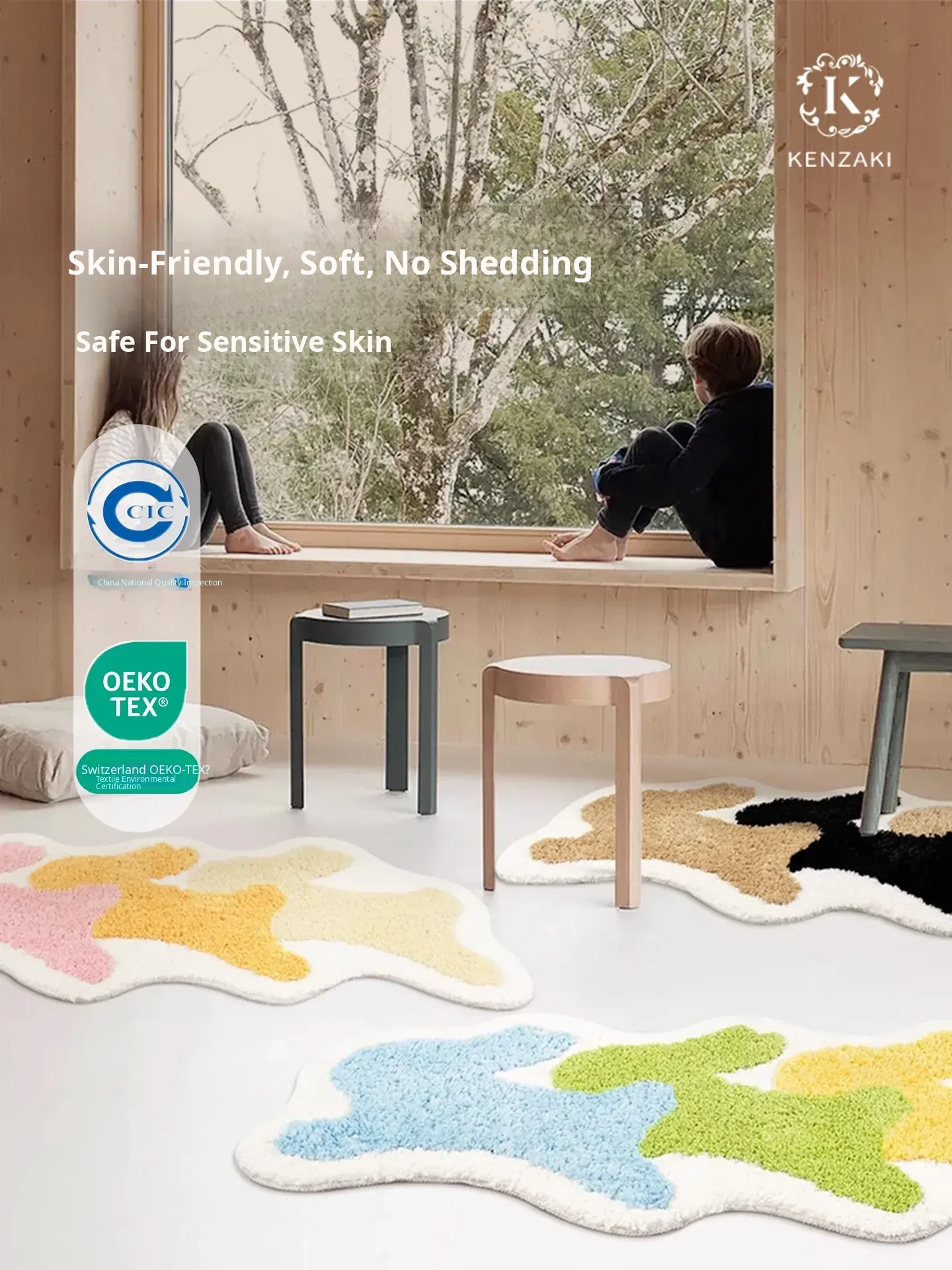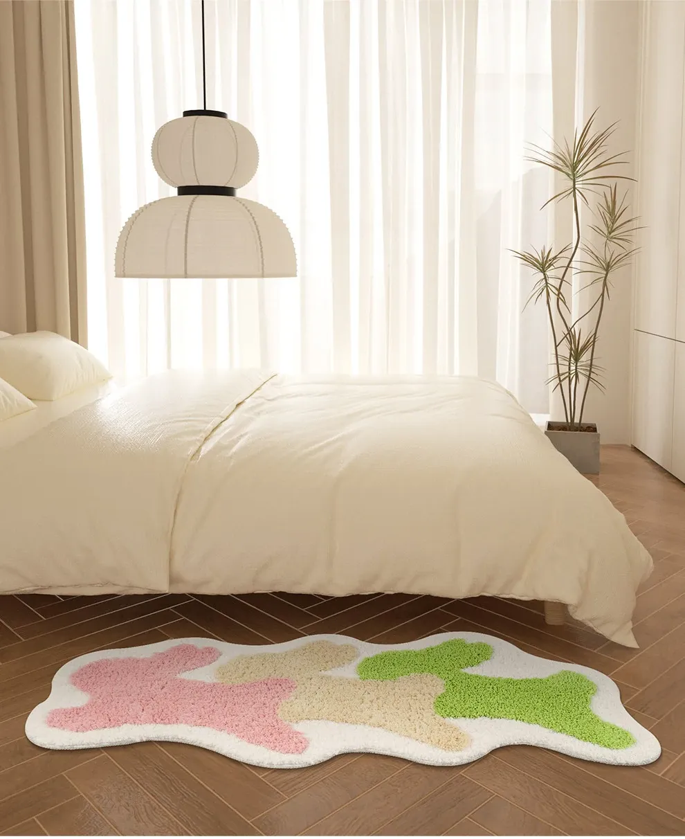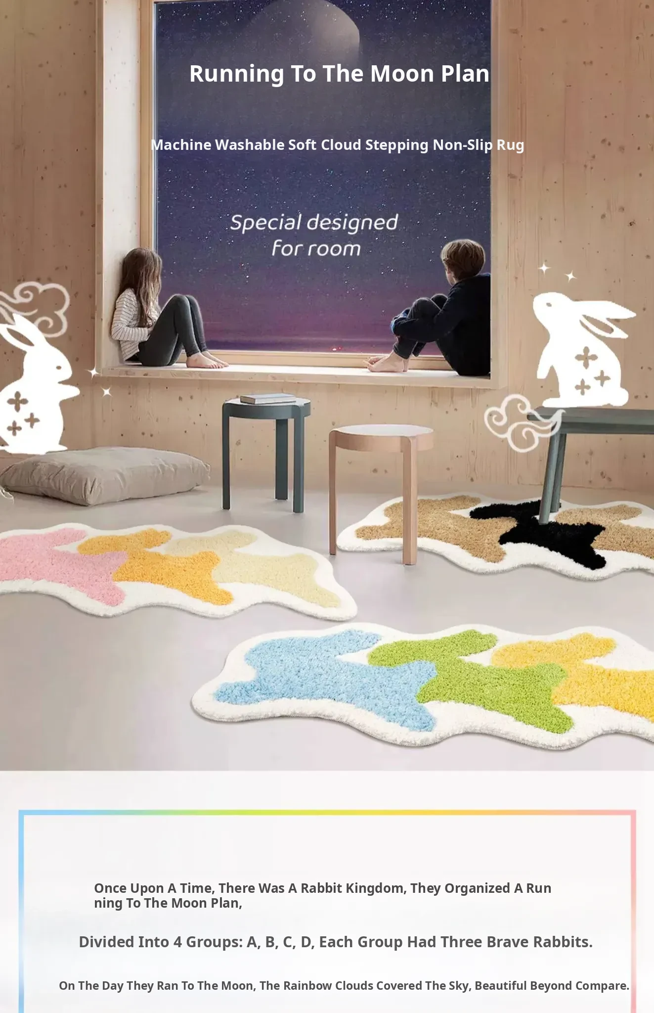 KENZAKI Washable Ultra-Soft Non-Slip Bunny Moon Carpet - Perfect for Kids' Rooms, Boys and Girls' Bedrooms, and Bedside Use