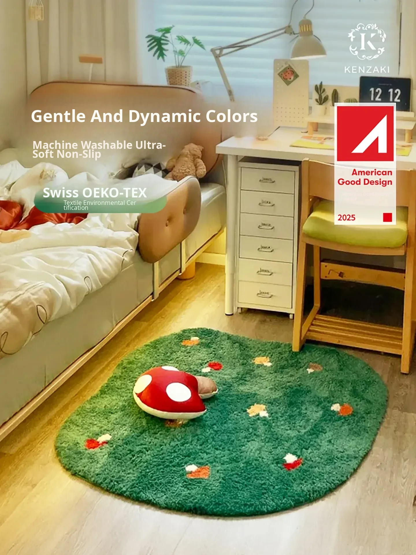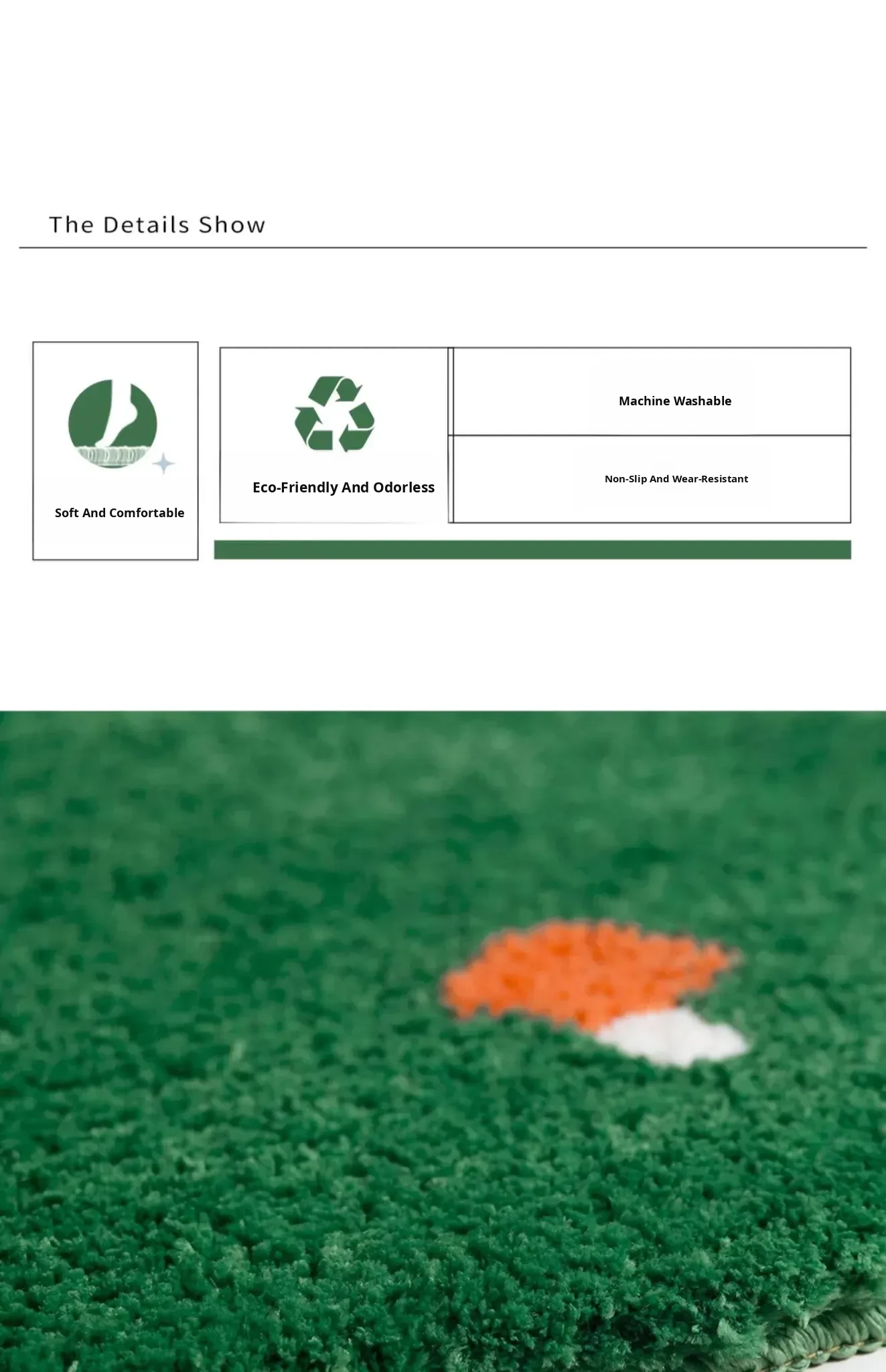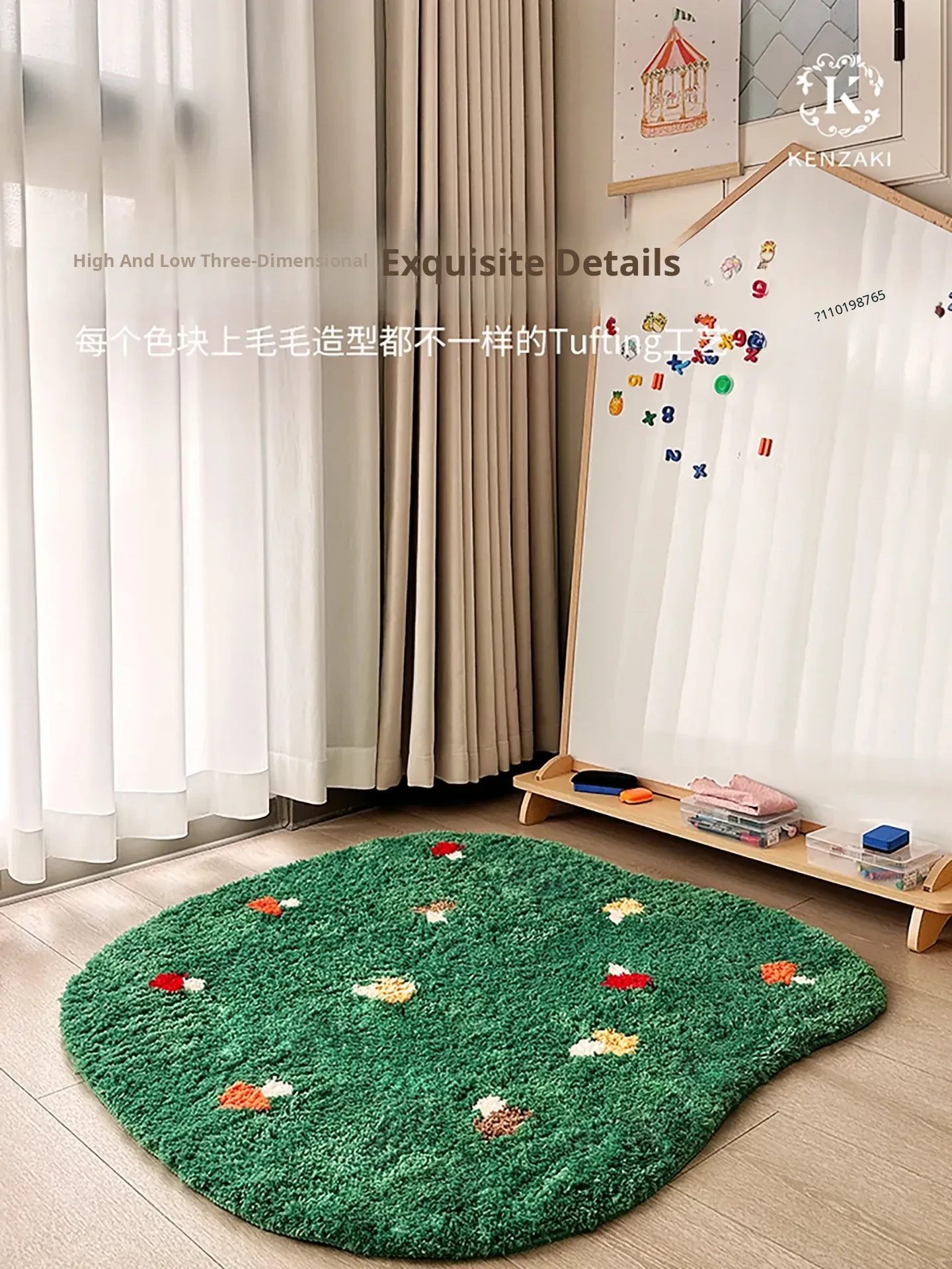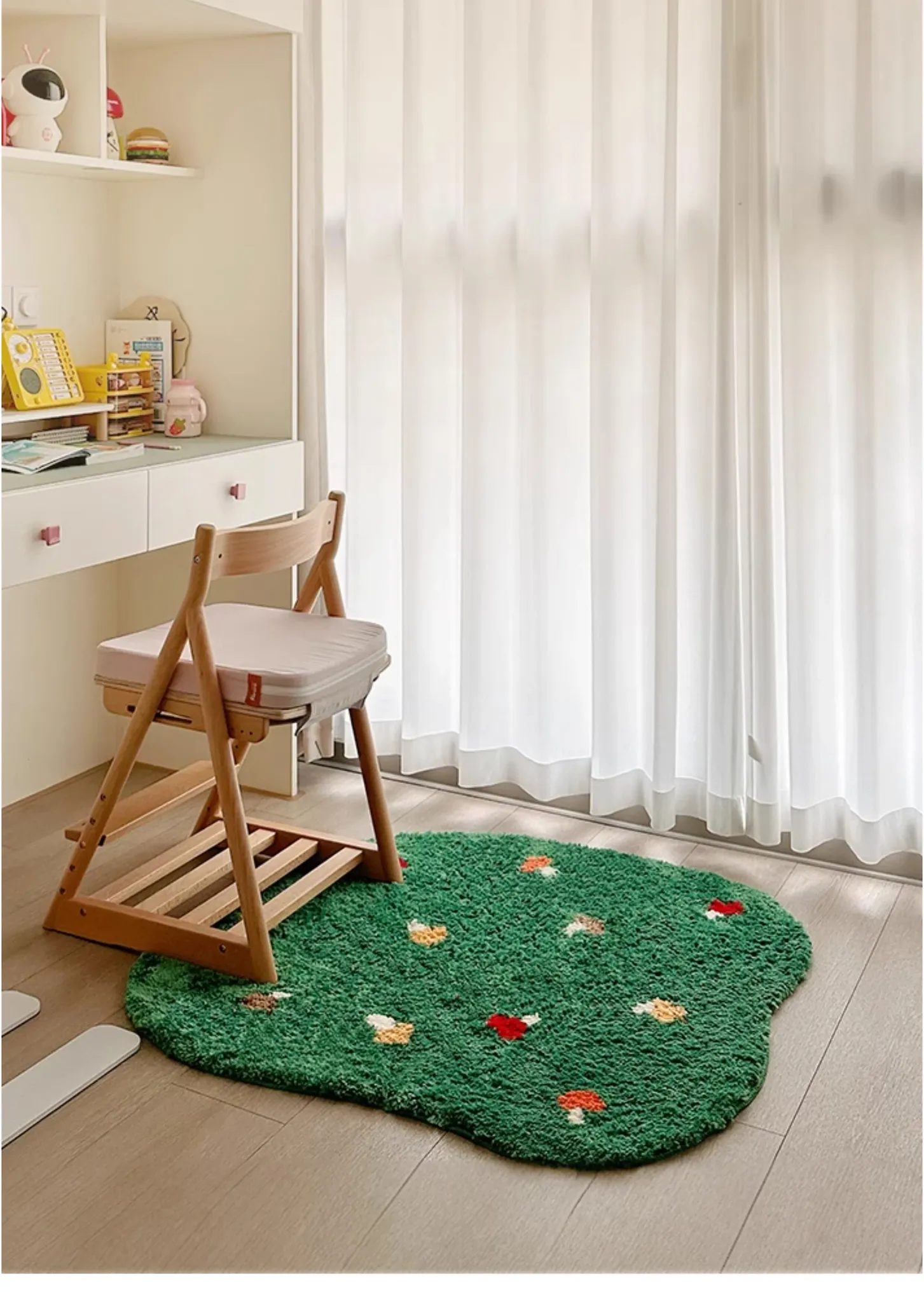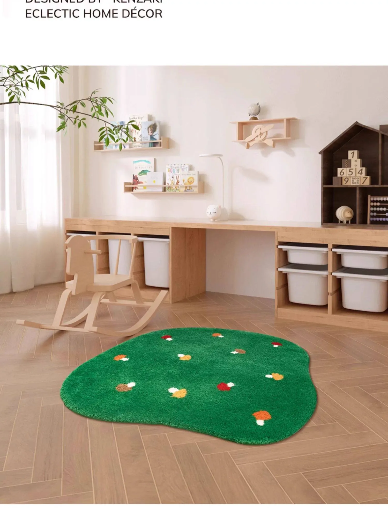 Kids' Bedroom Area Rug - Stylish Ins-Style Bedside Carpet for Boys and Girls, Perfect for Reading Nook, Green Non-Slip Unique Shape, Machine Washable