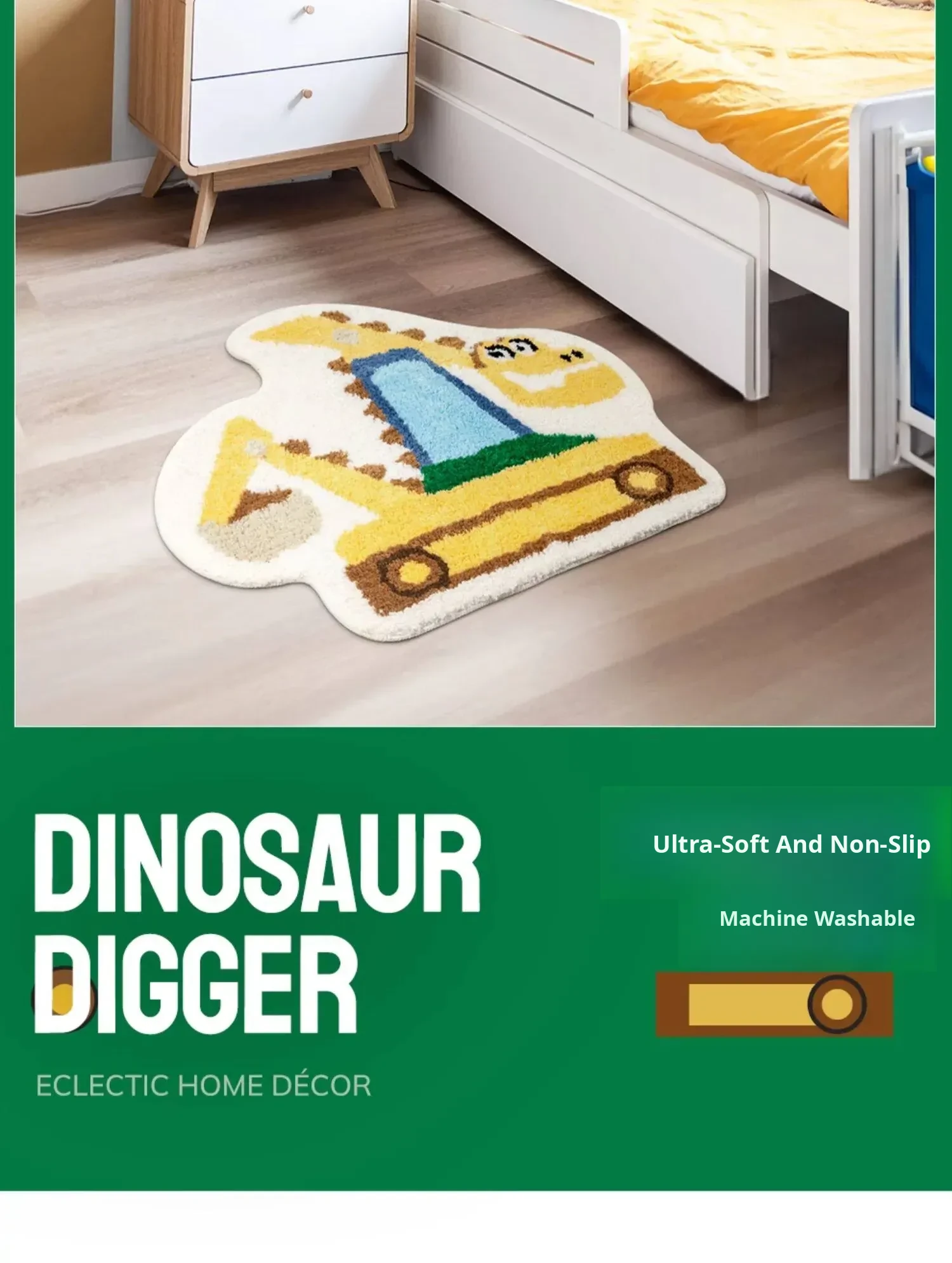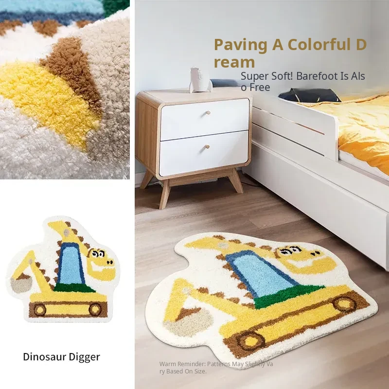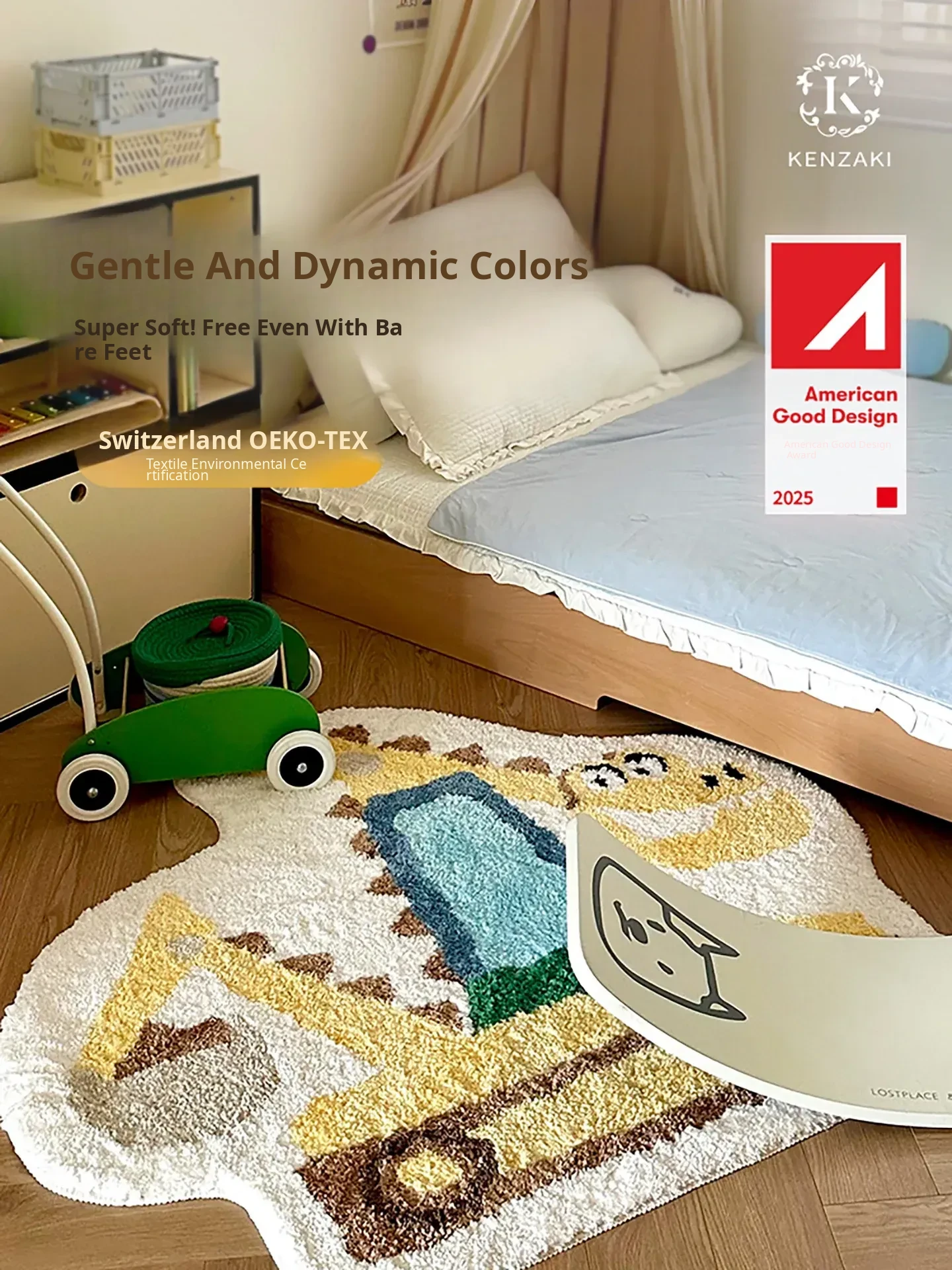 Kids' Bedroom Carpet - Excavator Area Rug for Boys' Reading Nook, Non-Standard Shape, Machine Washable, Perfect for Play and Learning!