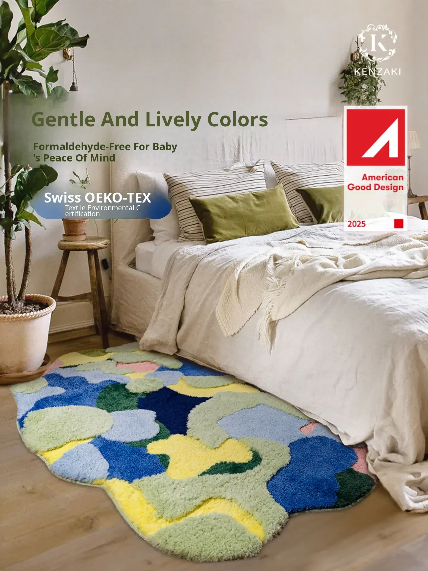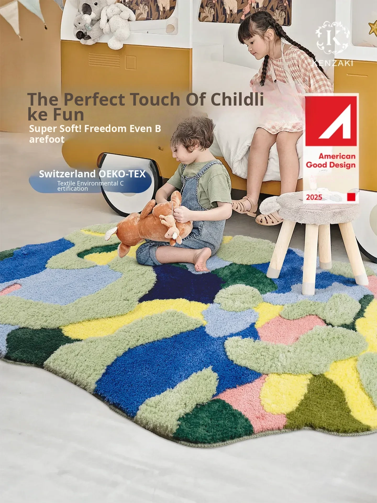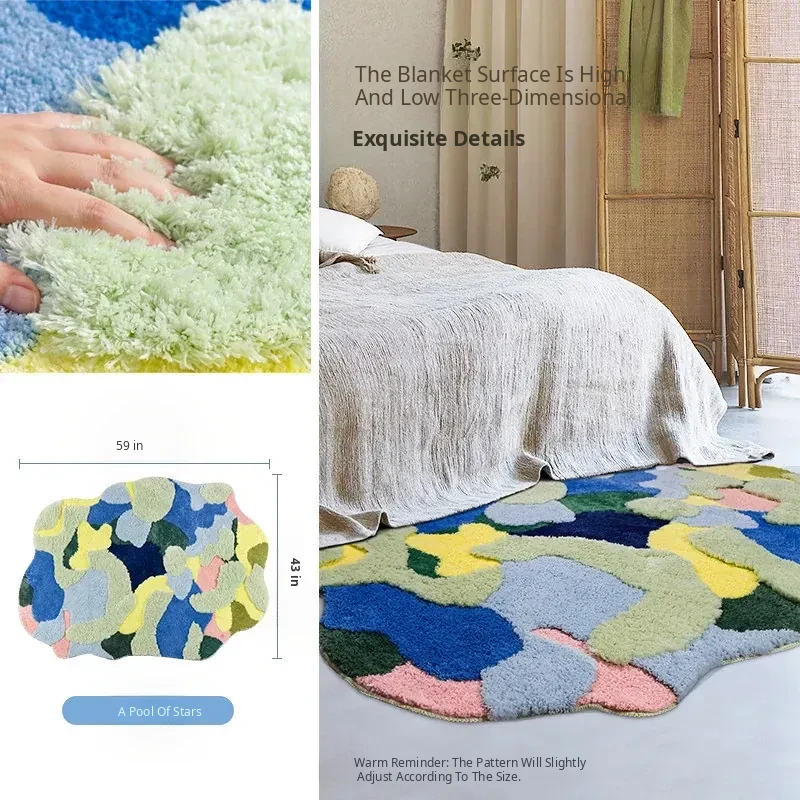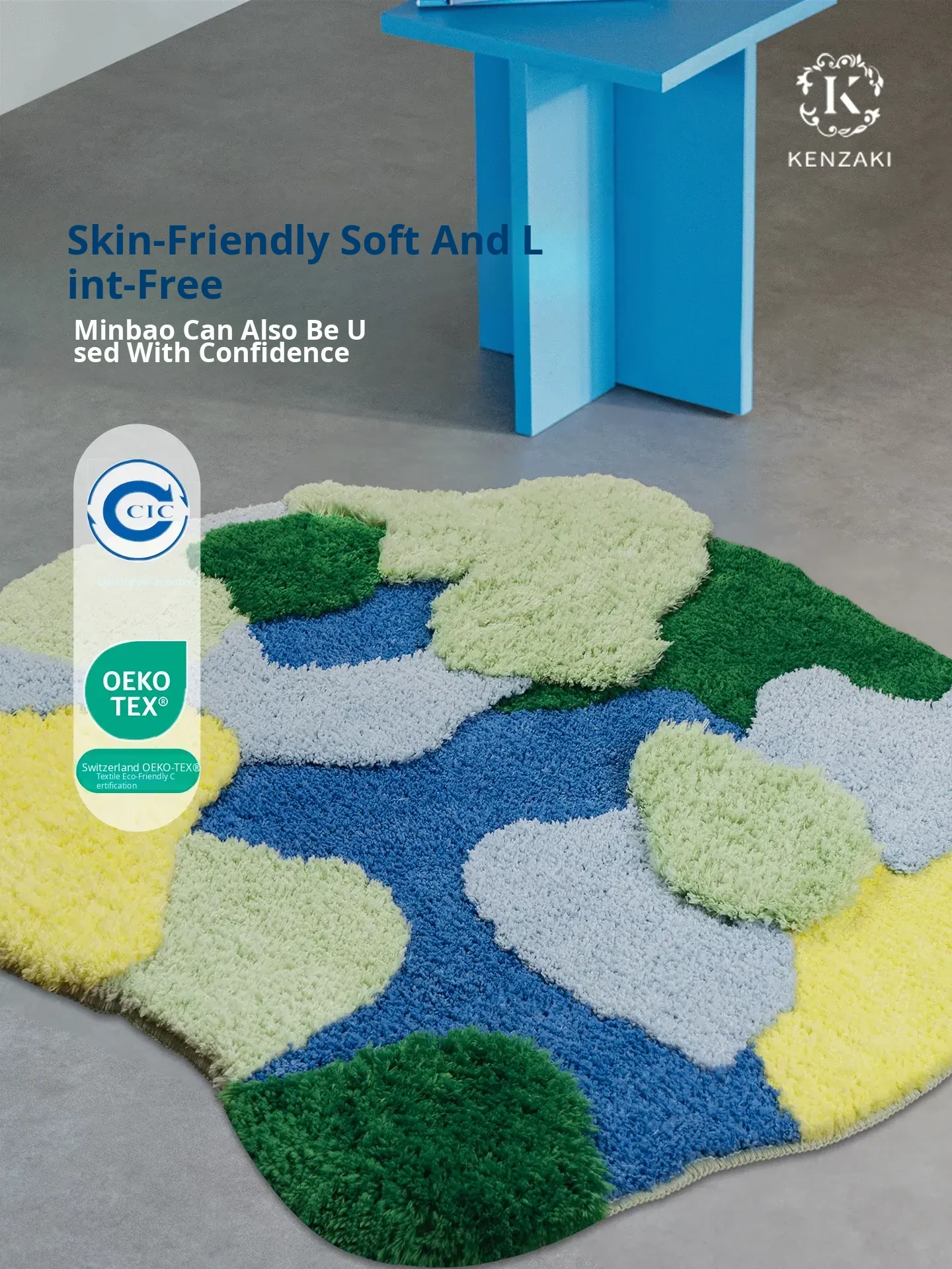 Luxury Washable Area Rug - Soft Blue Moss Design, Non-Slip Mat for Bedroom, Living Room, and Kids' Room, Perfect for Adding Elegance and Comfort to Your Home!