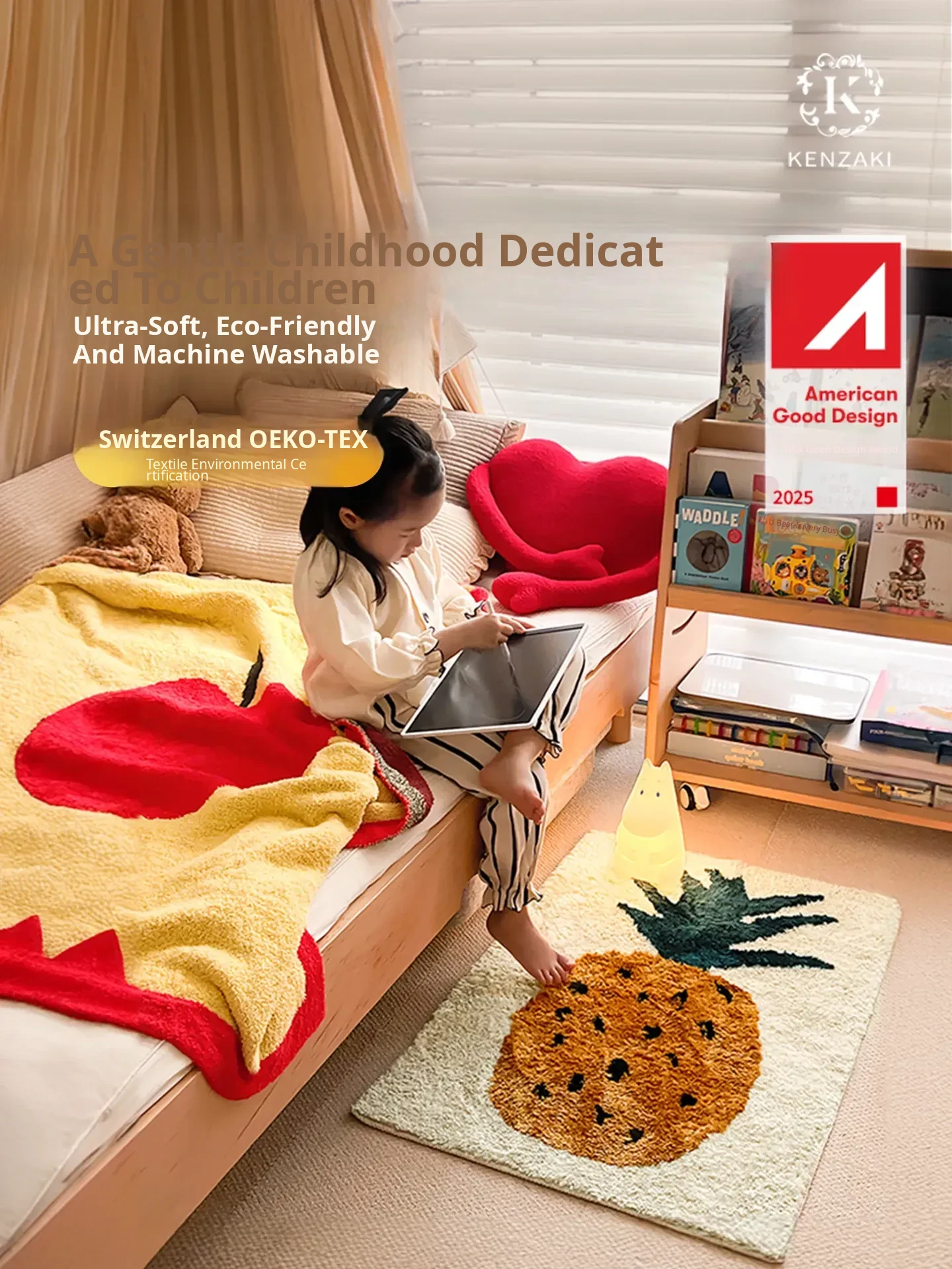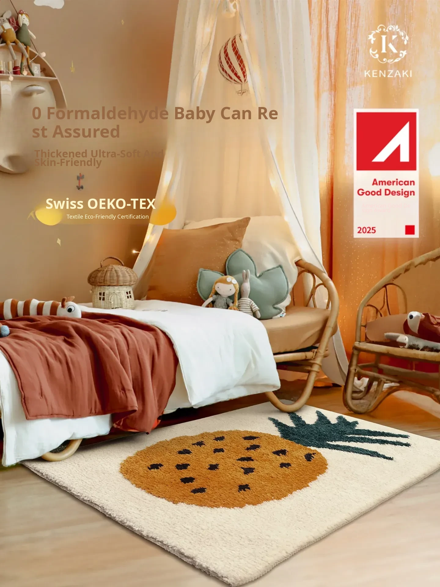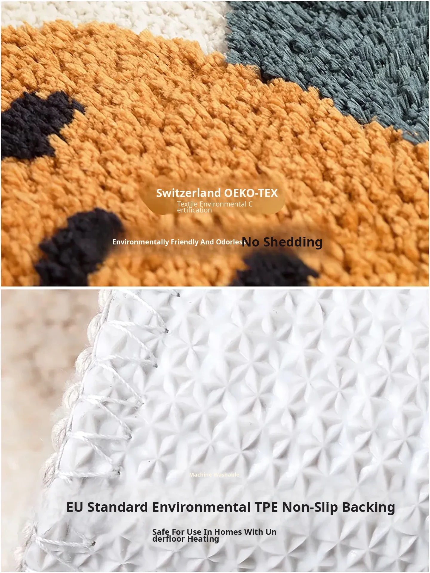 Machine Washable Plush Area Rug - Cute Non-Slip Carpet for Bedroom, Kids' Reading Nook, and Bedside - Thickened Design for Extra Comfort and Safety
