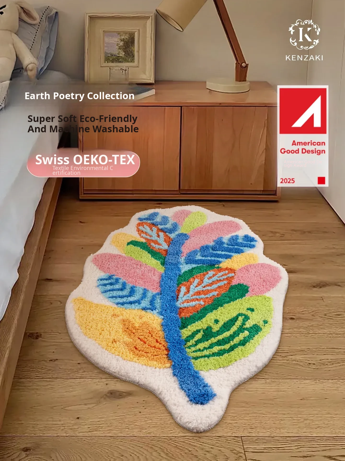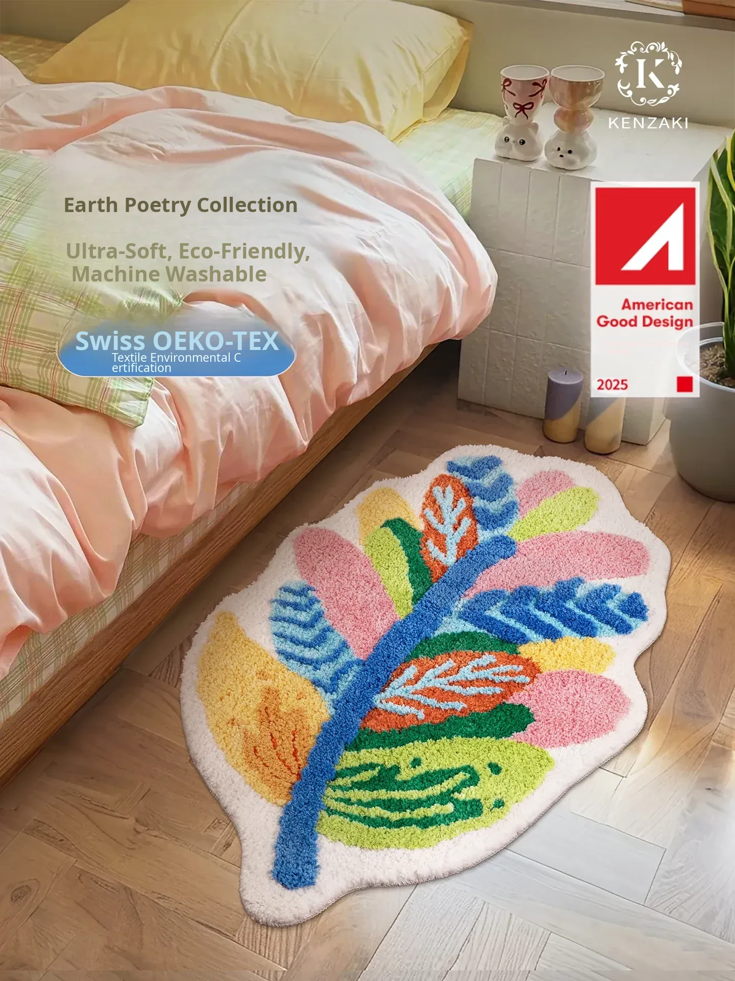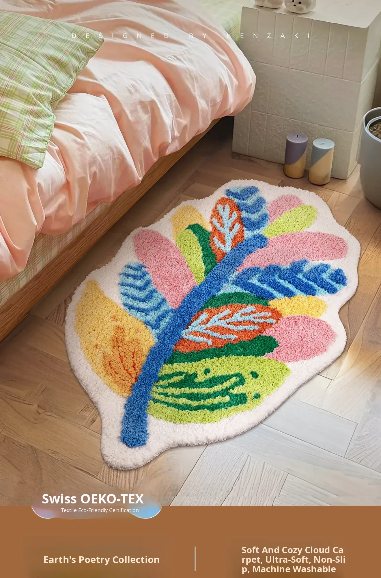 New Irregular Dopamine Leaf Area Rug - Kids Bedroom Carpet, Washable Bedside Mat for Boys and Girls, Perfect for Playrooms and nurseries!
