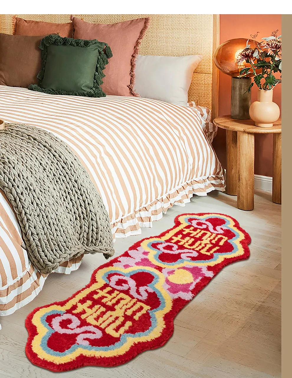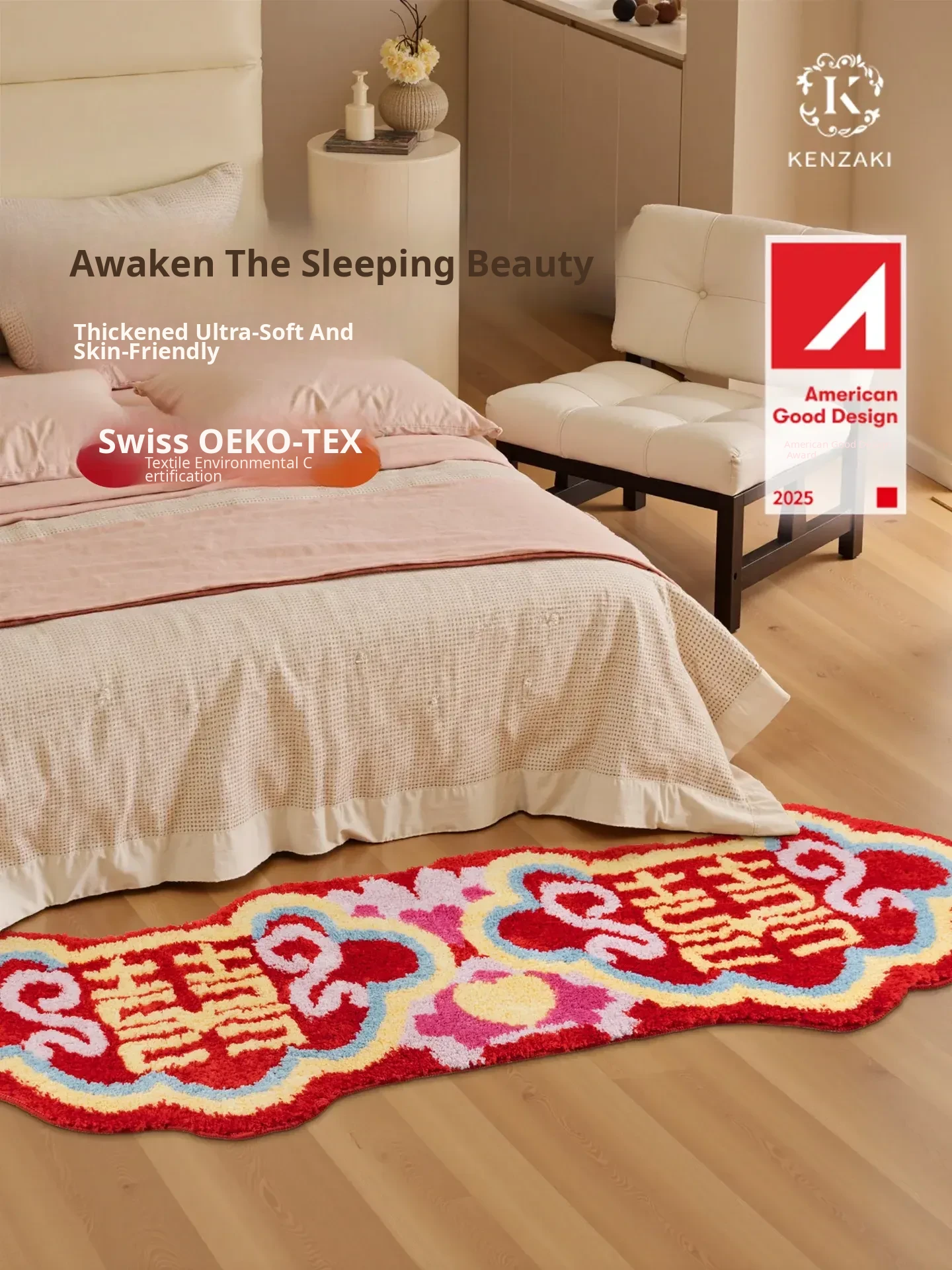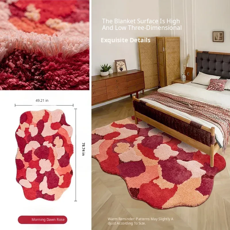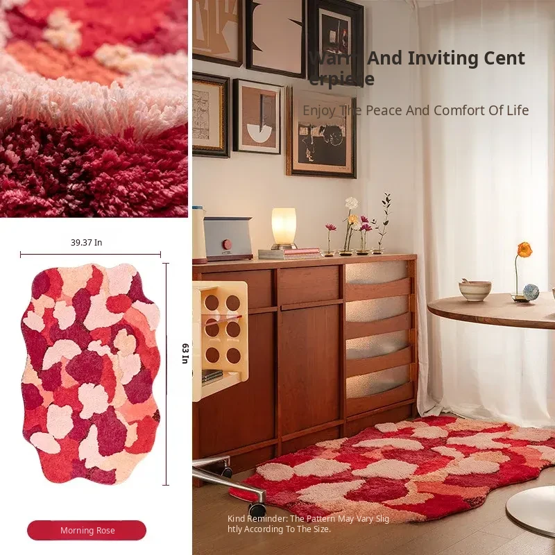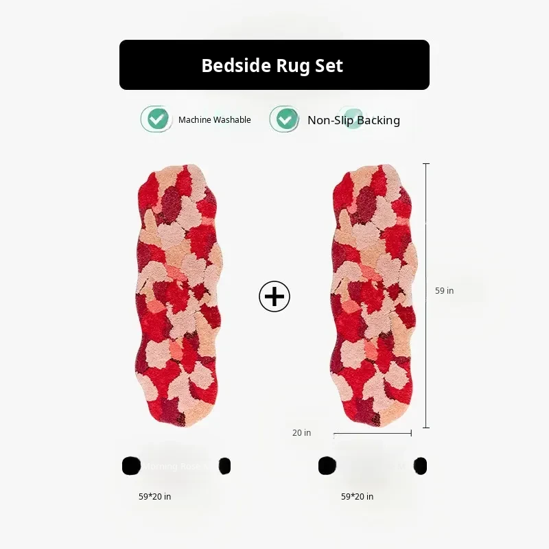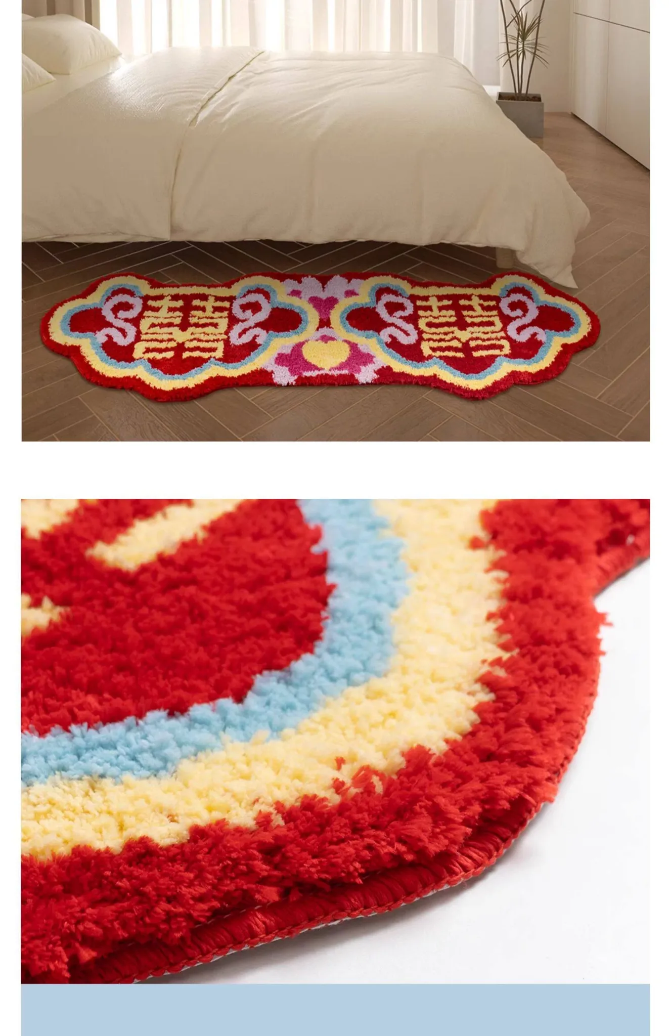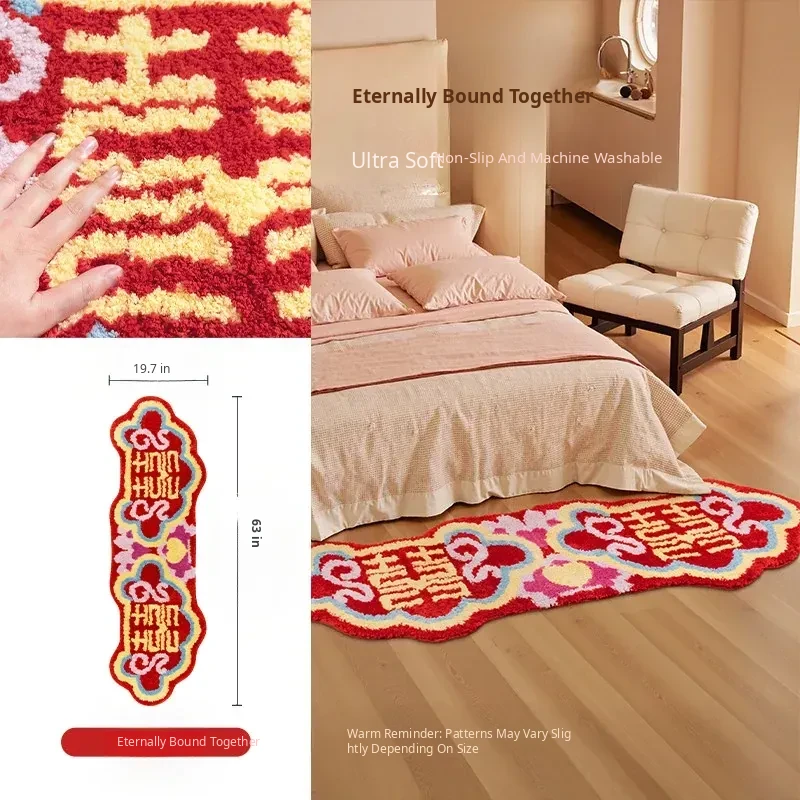 Red Wedding Carpet - Non-Slip Machine Washable Bedroom Rug with Double Happiness Design for Marriage Room, Perfect for Living Room and Bedside Décor, Unique Shape, Ideal for Celebrating Love