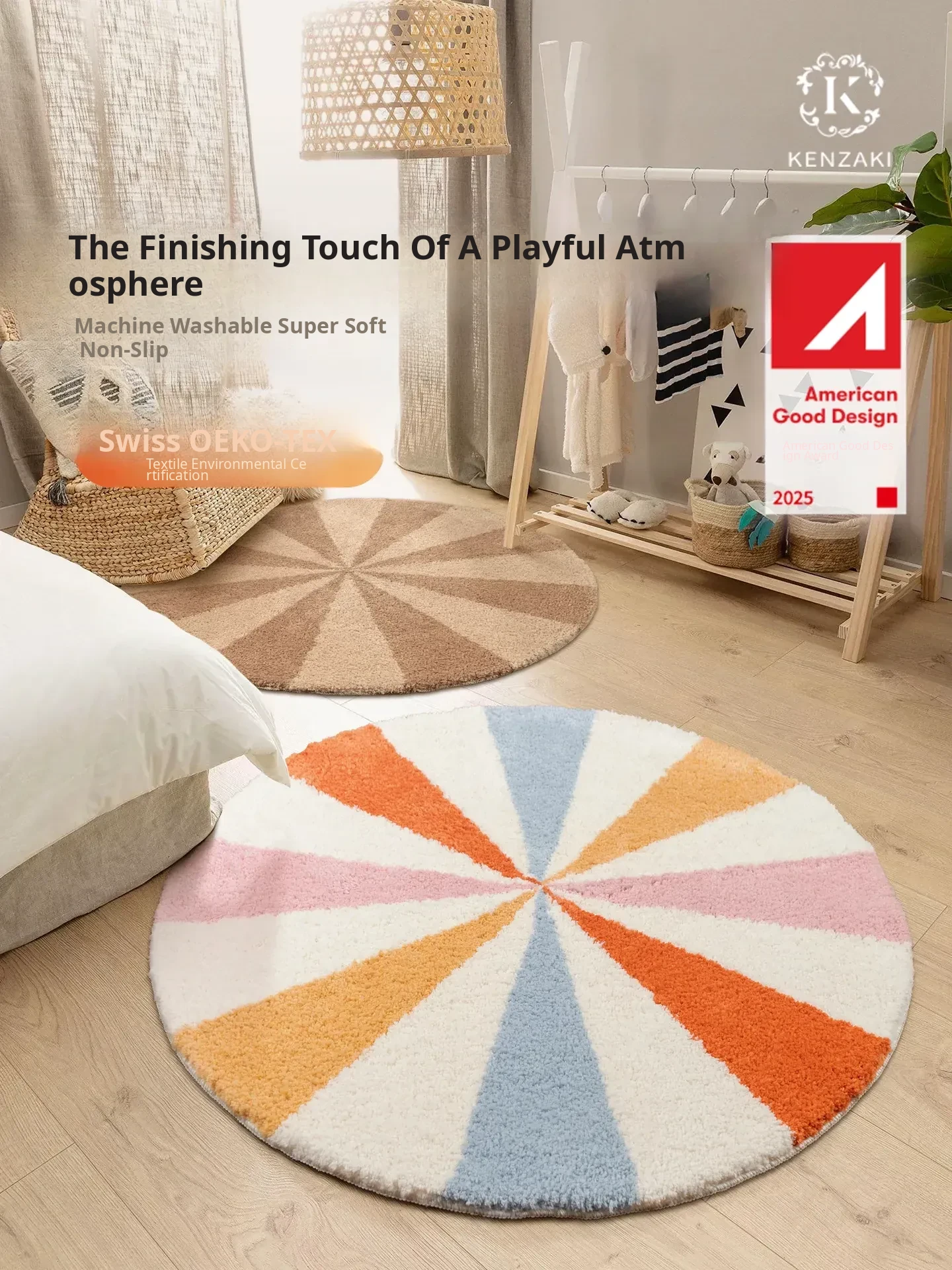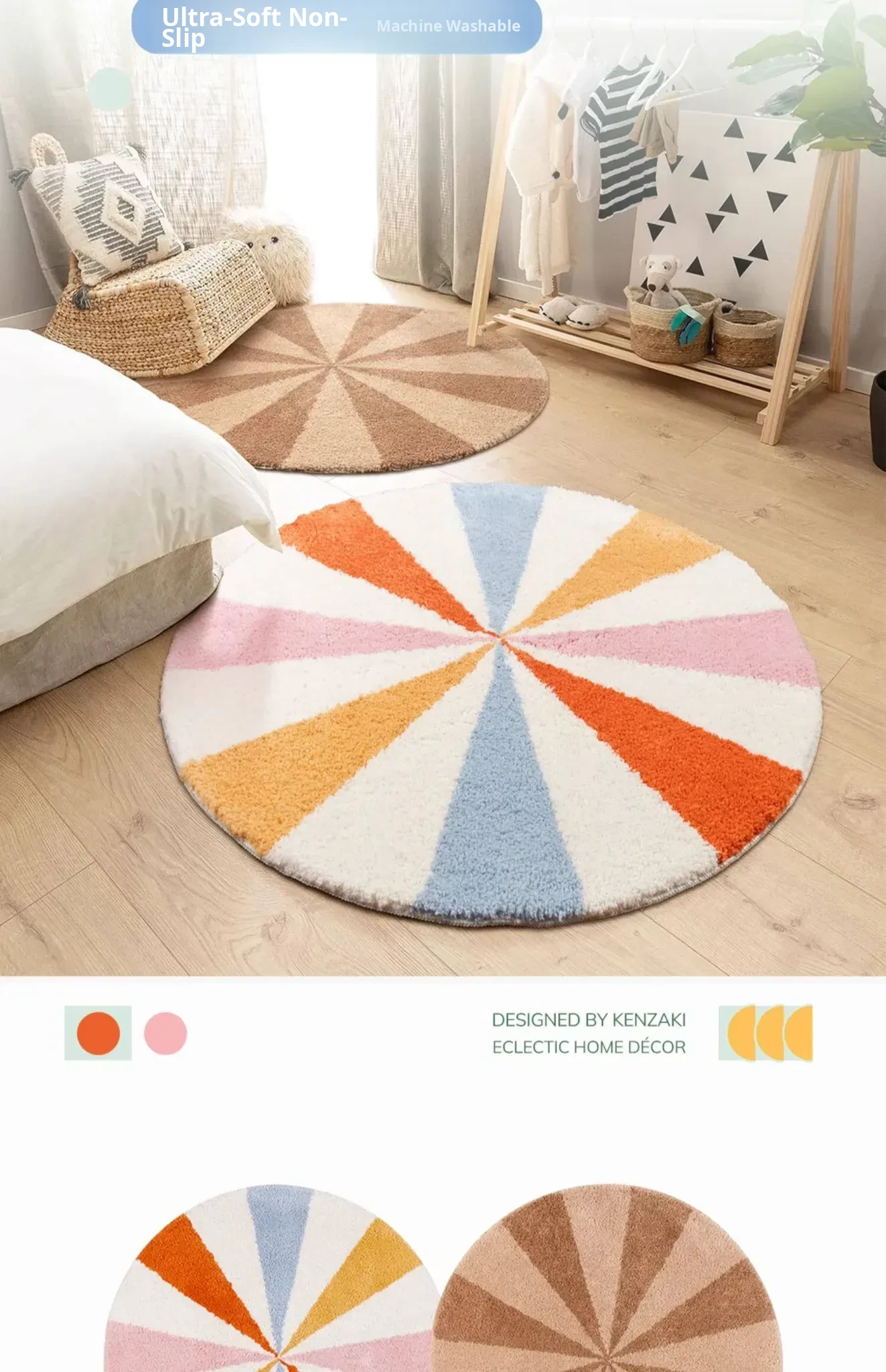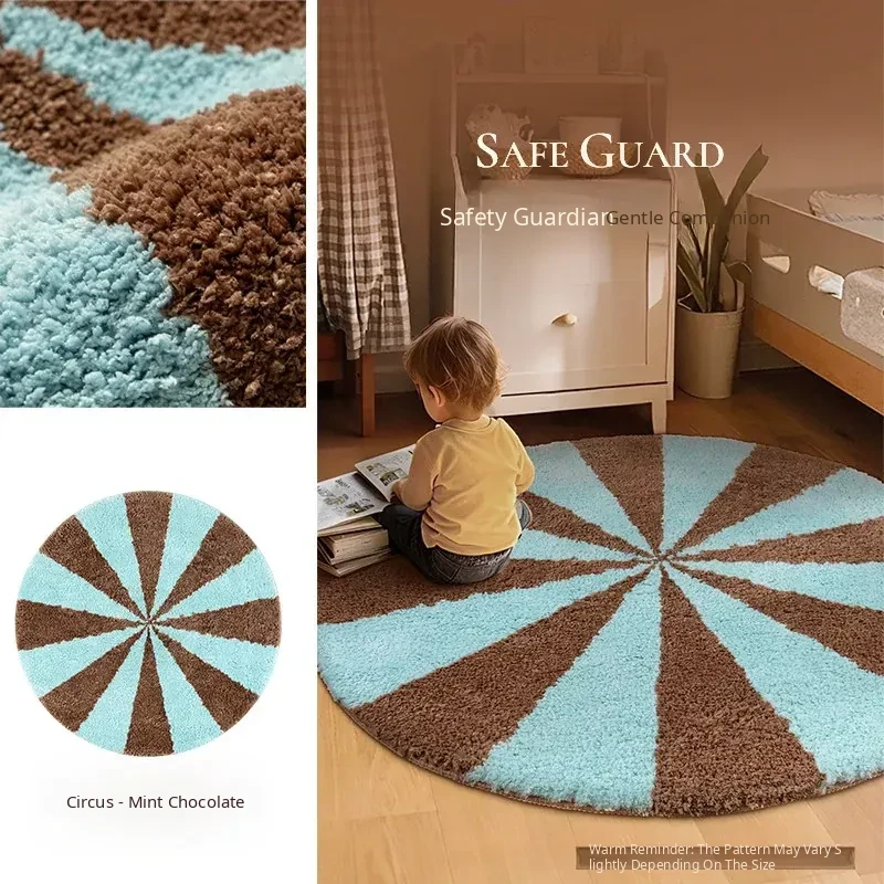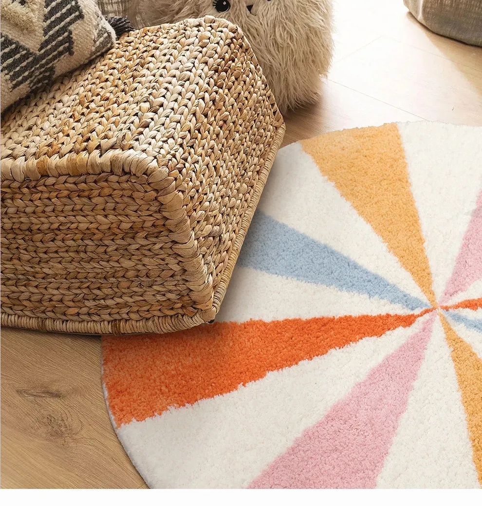 Soft Washable Rainbow Round Area Rug for Kids' Room - Perfect for Girls' Bedrooms and Living Rooms, Enhancing Decor with a Touch of Korean Style and Dopamine Vibes!