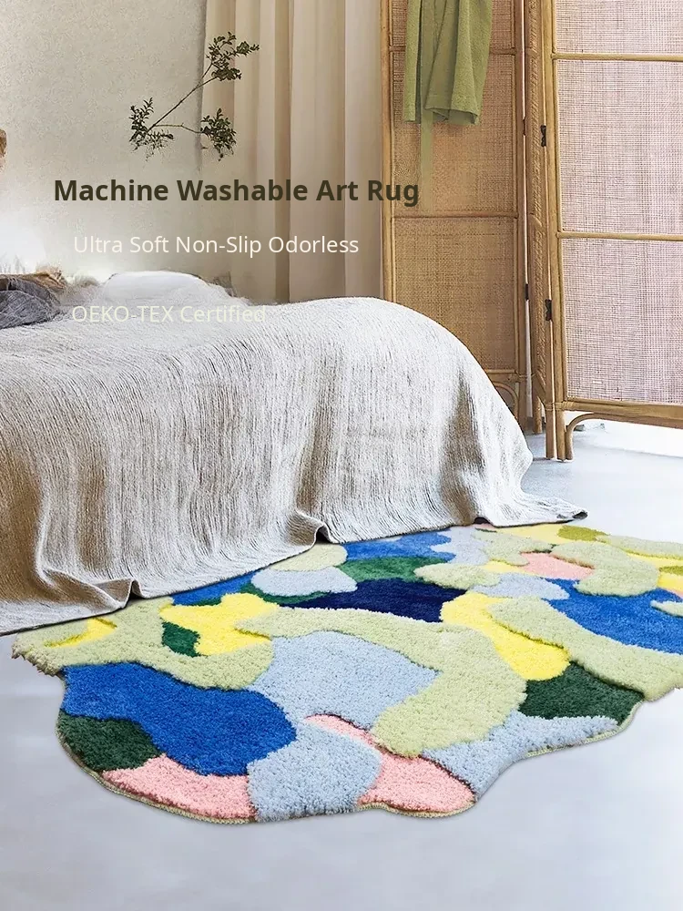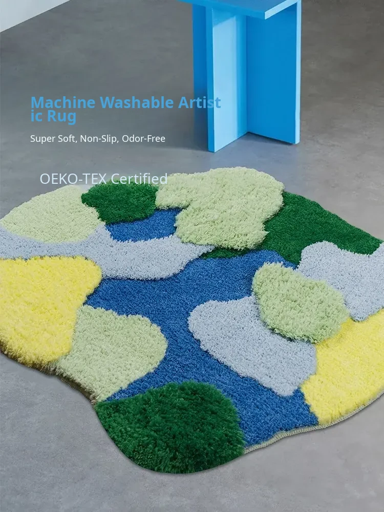 Stylish Blue Shaped Area Rug for Kids' Rooms - Soft, Washable Carpet for Boys and Girls, Perfect for Bedroom or Living Room, Elevate Your Space with Luxurious Comfort