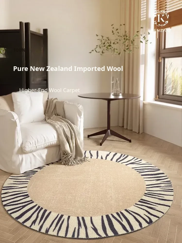 KENZAKI 100% Pure New Zealand Wool Round Rug - Luxurious and Stylish Carpet for Living Room and Bedroom, Perfect for Bedside Decor
