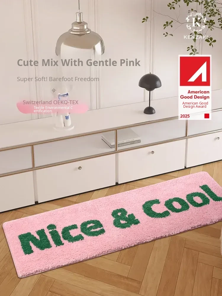 Dopamine Pink Long Stripe Rug for Girls' Bedroom - Nice & Cool Bedside Carpet, Kids' Play Mat, Machine Washable, Perfect for Cozy Window Nooks