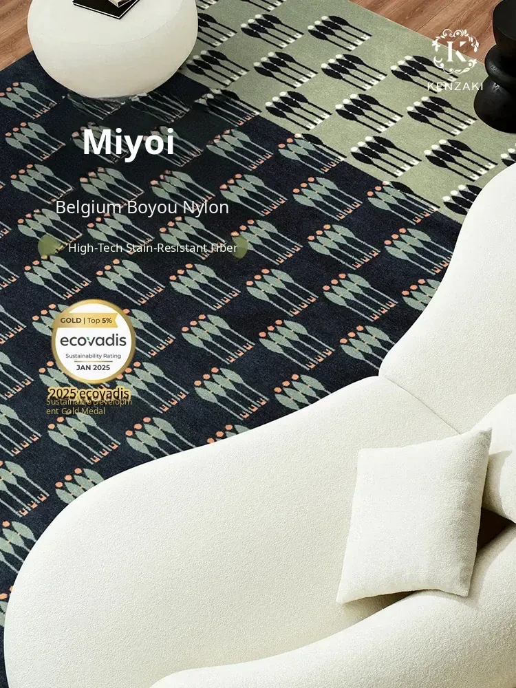KENZAKI Luxury Retro French-Style Carpet - Soft Soundproof Area Rug for Living Room and Bedroom, Elegant Green Design Perfect for Sofa and Bedside