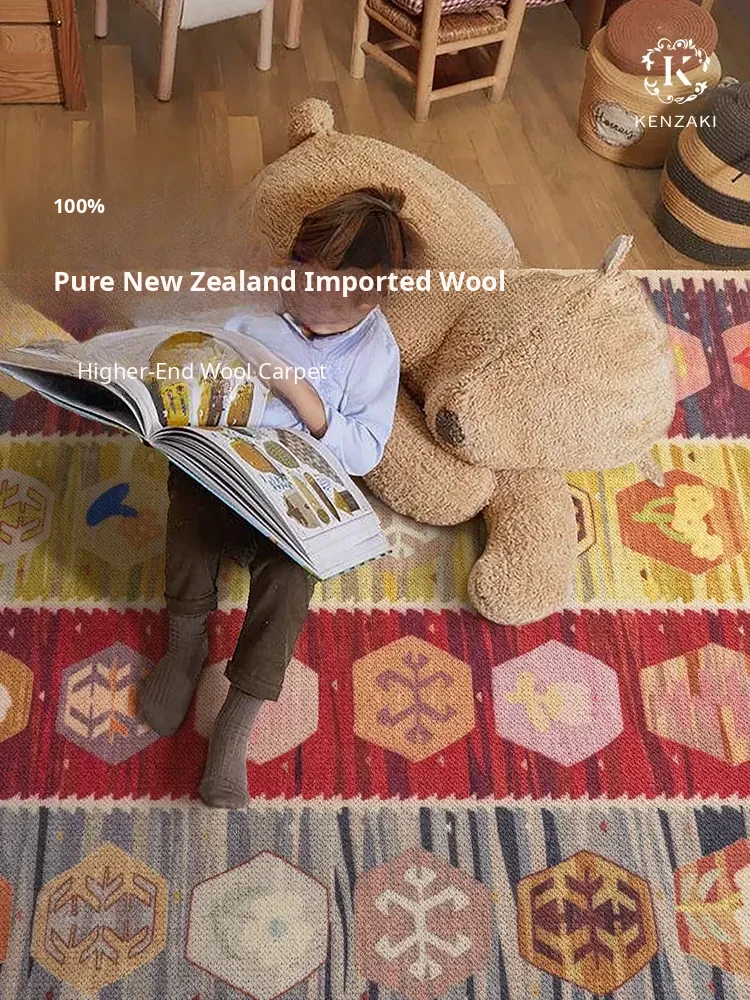 100% Pure New Zealand Wool Rug - Luxurious Vintage Colorful Kids Play Mat for Living Room & French Bedroom - Perfect for Bedside Elegance